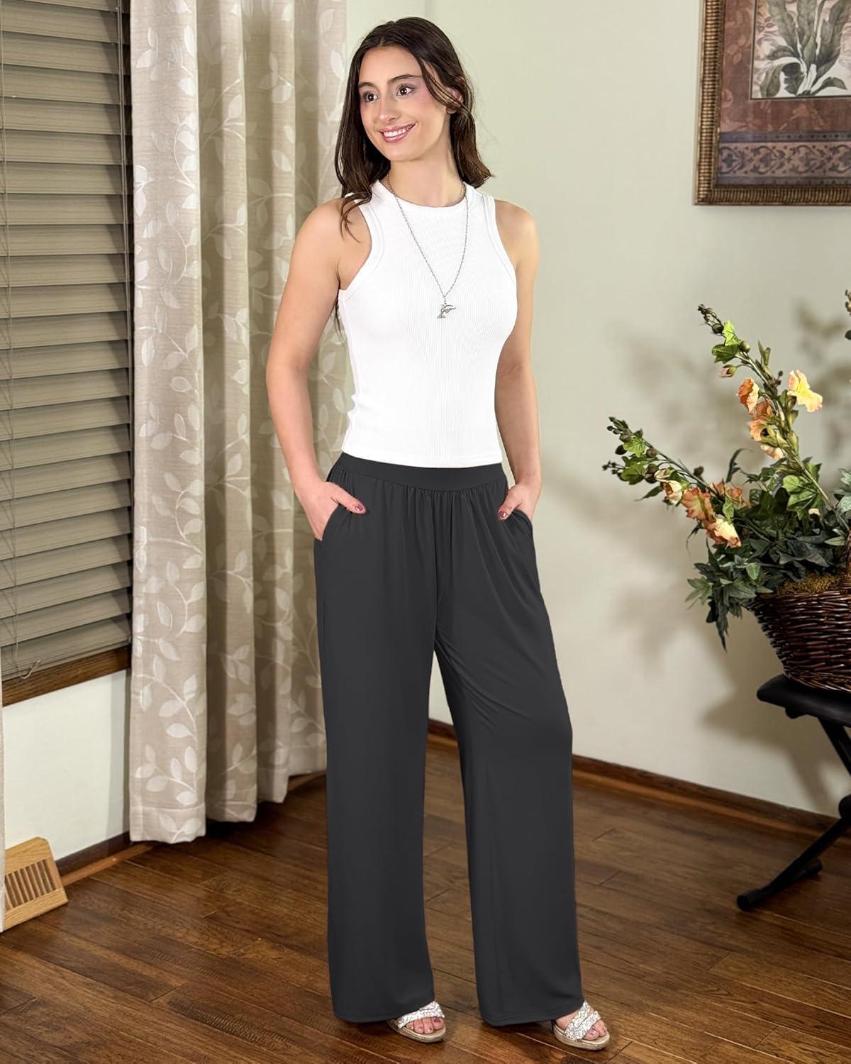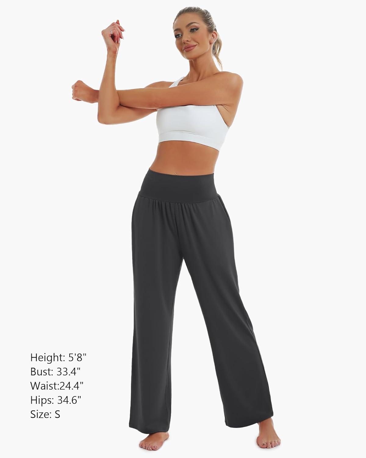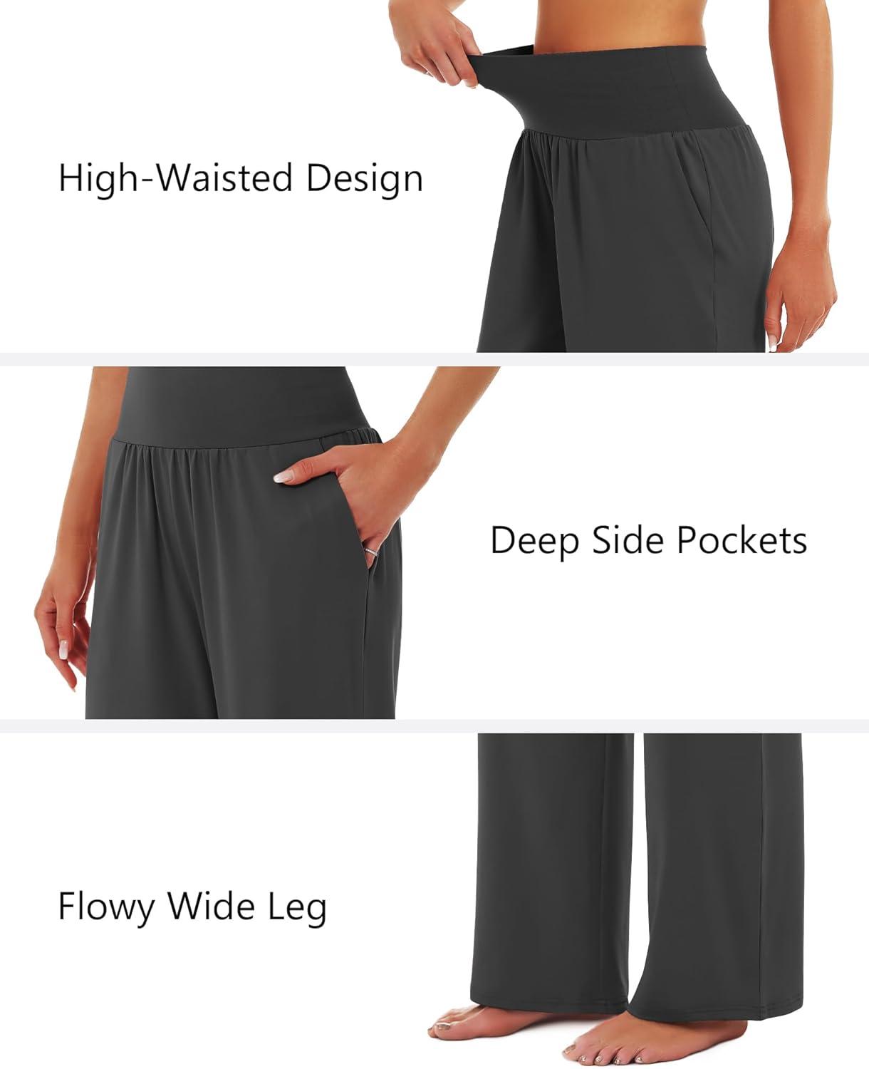 Stelle 28” Wide Leg Yoga Pants Womens High Waisted Cozy Sweatpants Flowy Sports Athletic Lounge Pants with Pockets(Charcoal)