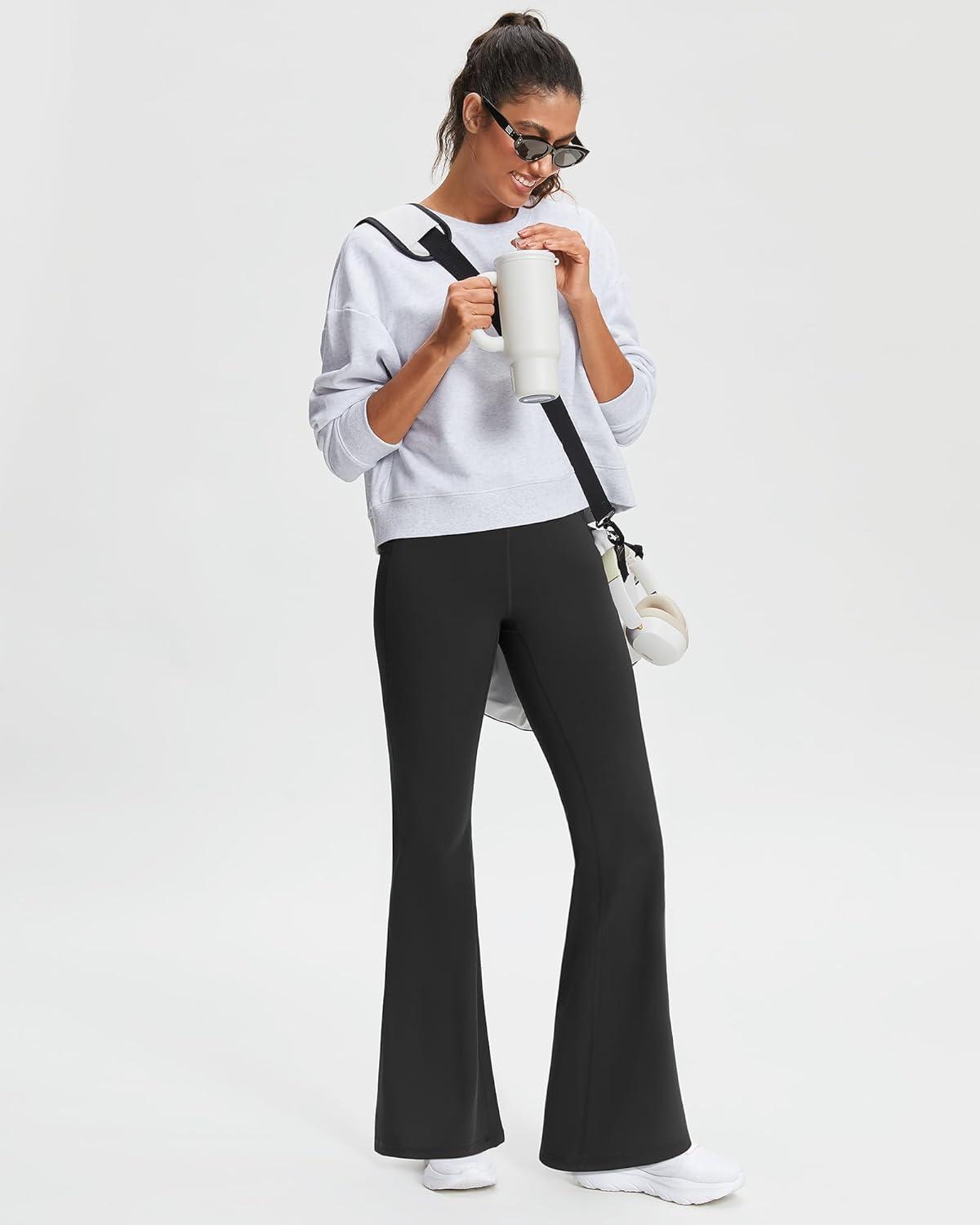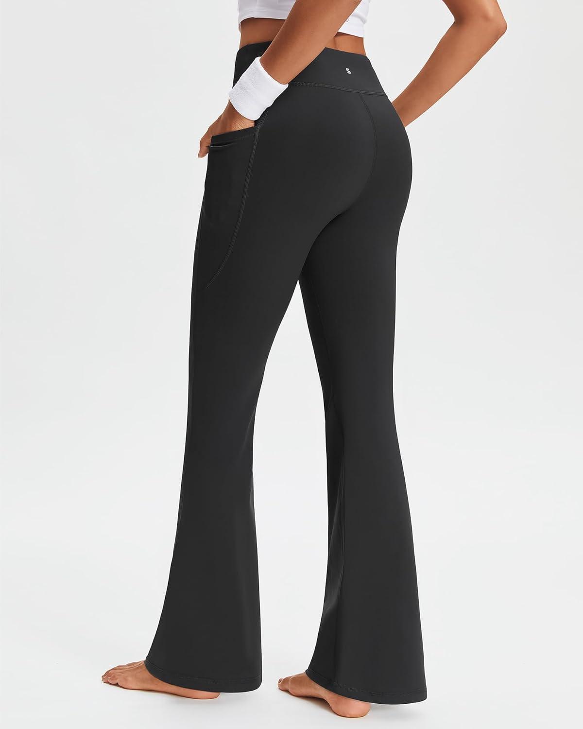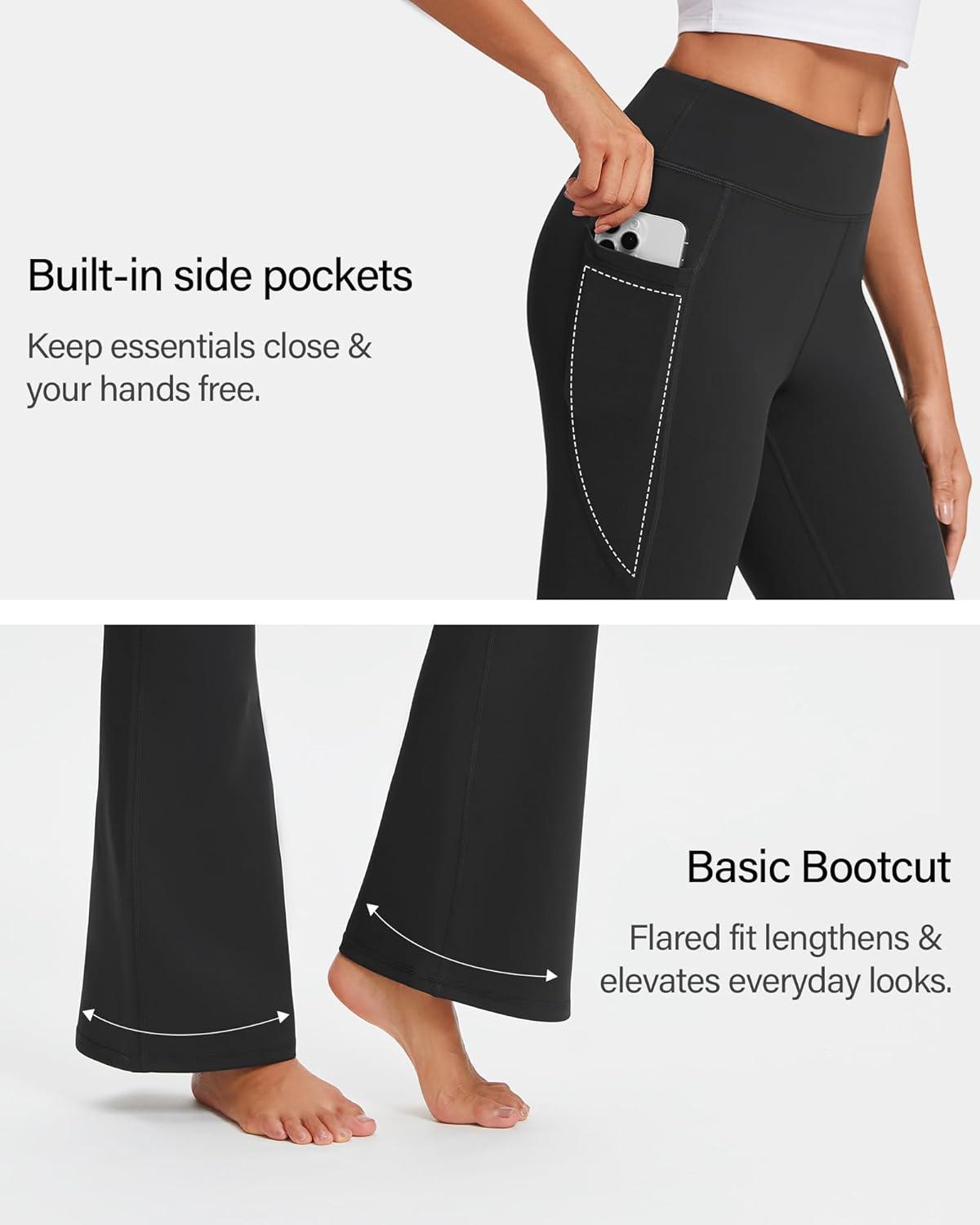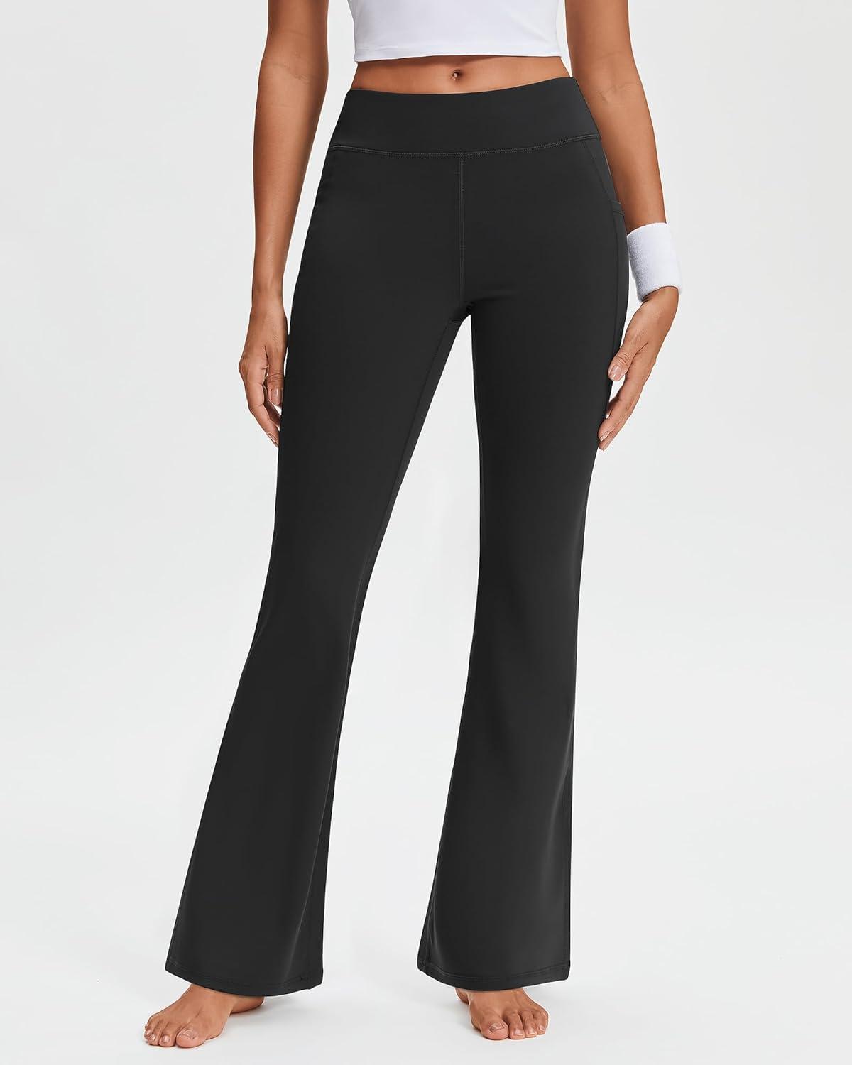 Stelle 29″ 31″ 33″ Fleece Lined Leggings for Women Thermal Bootcut Yoga Pants High-Waisted Winter Leggings with Pockets(Black)