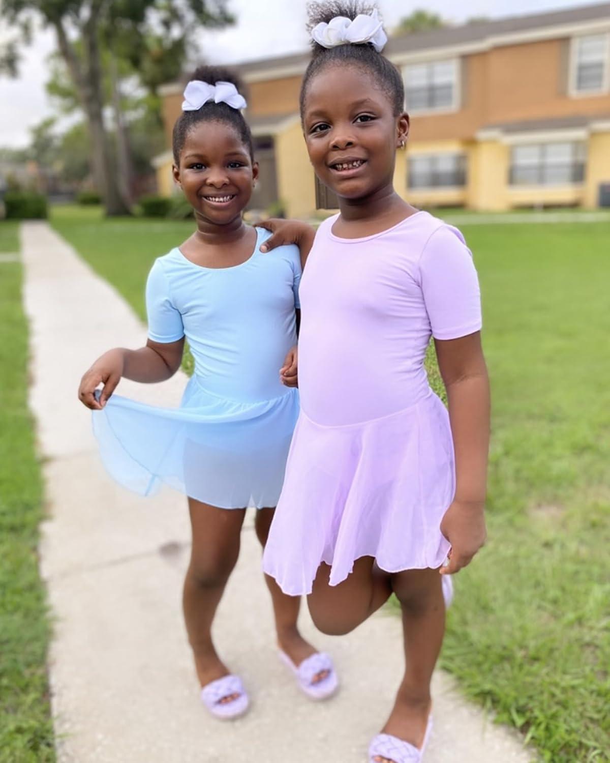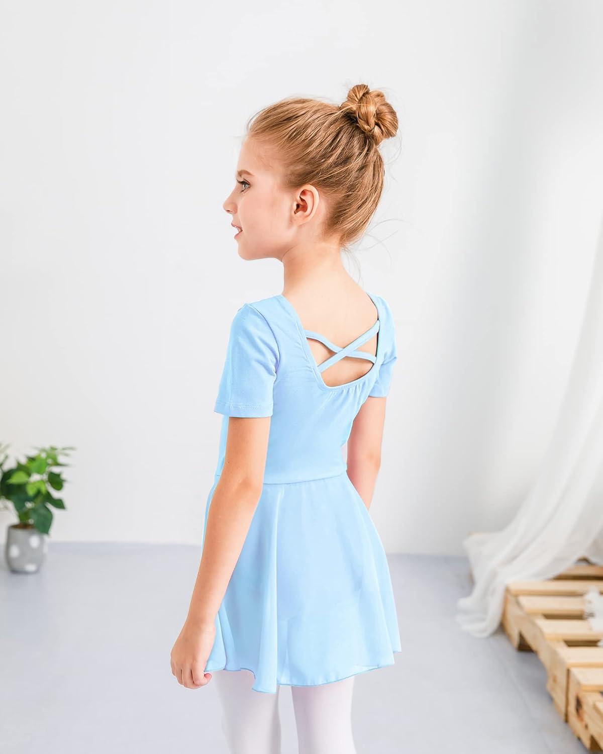 Stelle Ballet Leotards for Girls Dance Leotard with Skirt Toddler Ballet Outfit Criss-Cross Bow Back (Little/Big Kid)(Style 1-blue(cross Back))