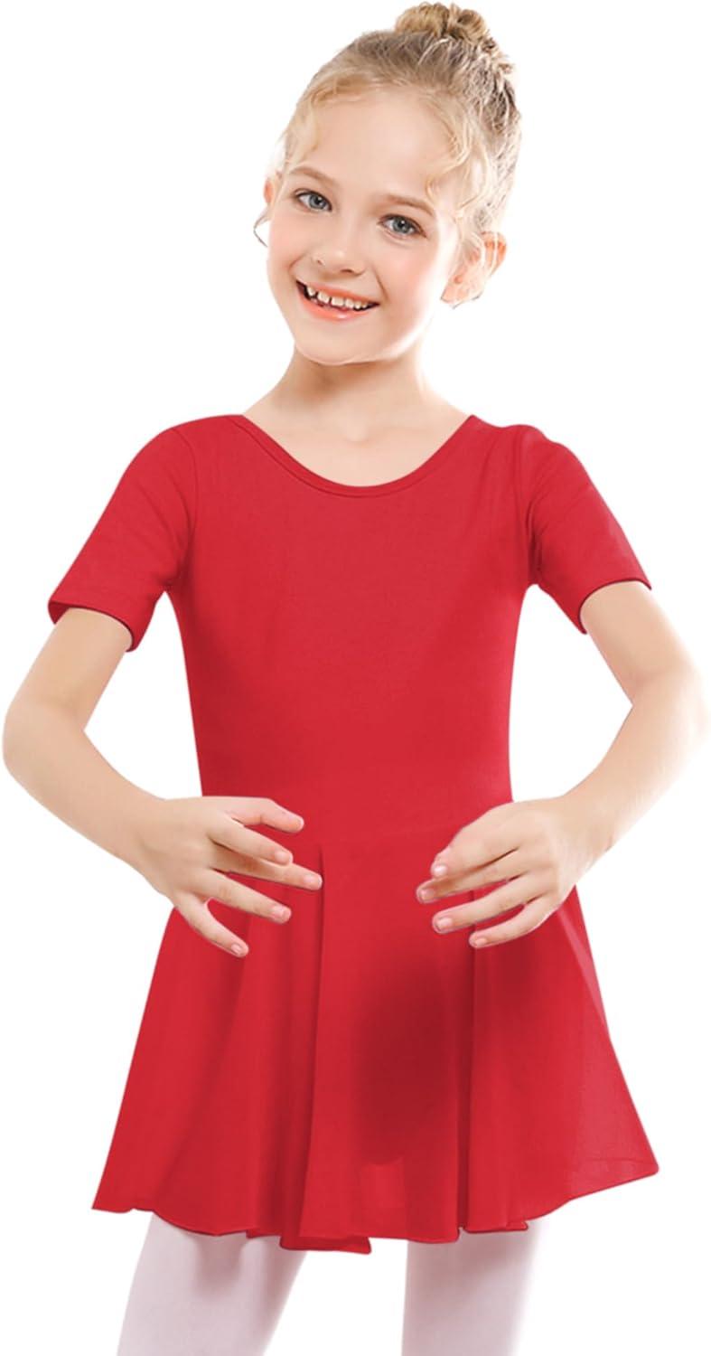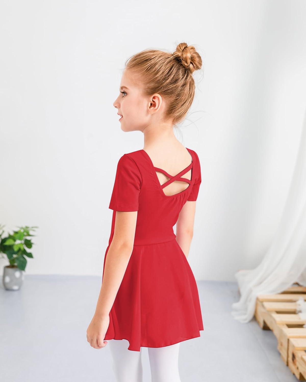 Stelle Ballet Leotards for Girls Dance Leotard with Skirt Toddler Ballet Outfit Criss-Cross Bow Back (Little/Big Kid)(Style 1-red(cross Back))