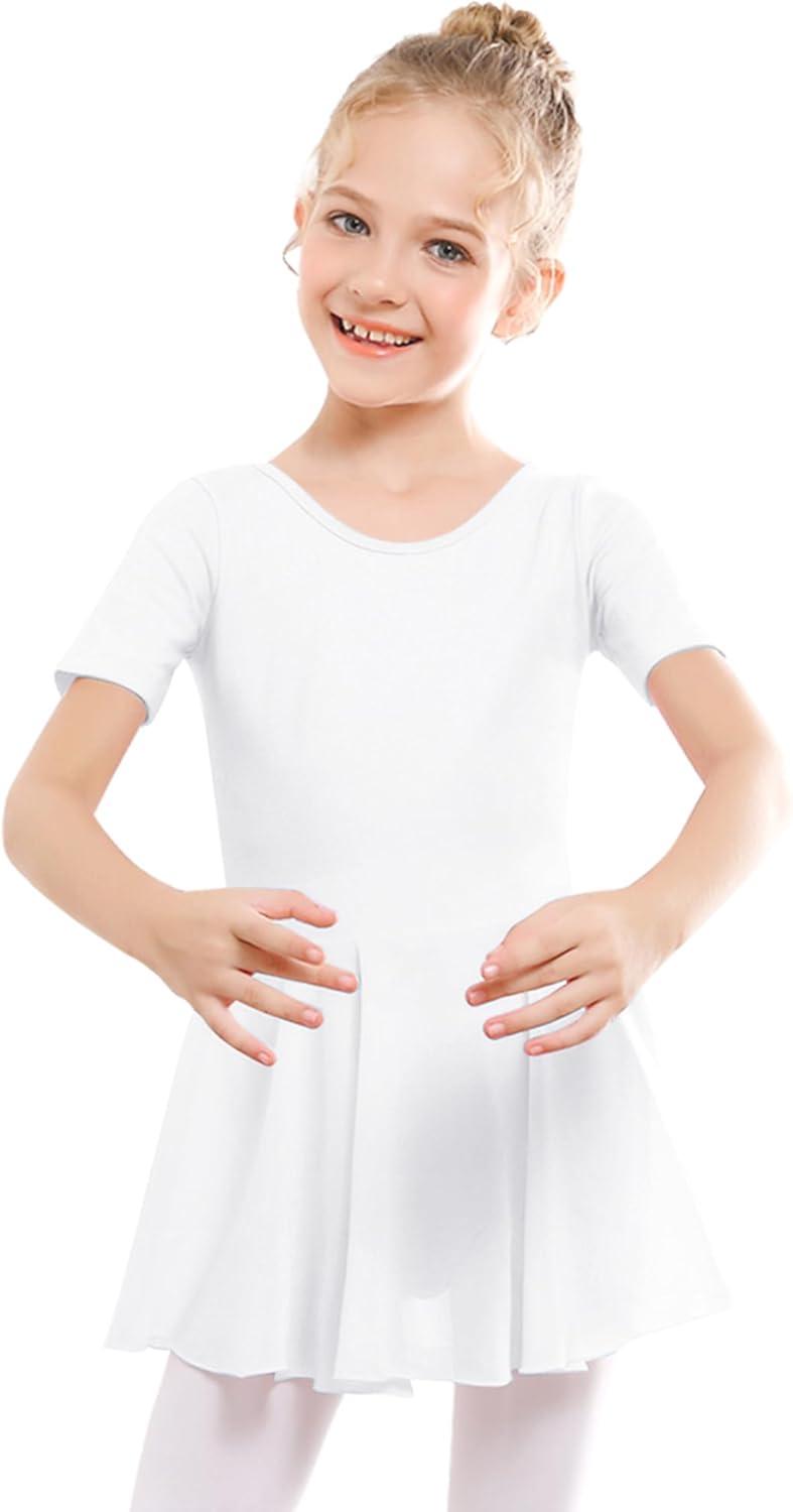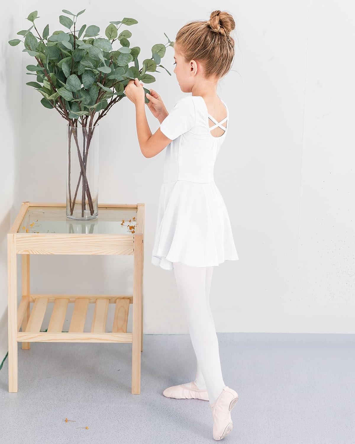 Stelle Ballet Leotards for Girls Dance Leotard with Skirt Toddler Ballet Outfit Criss-Cross Bow Back (Little/Big Kid)(Style 1-white(cross Back))