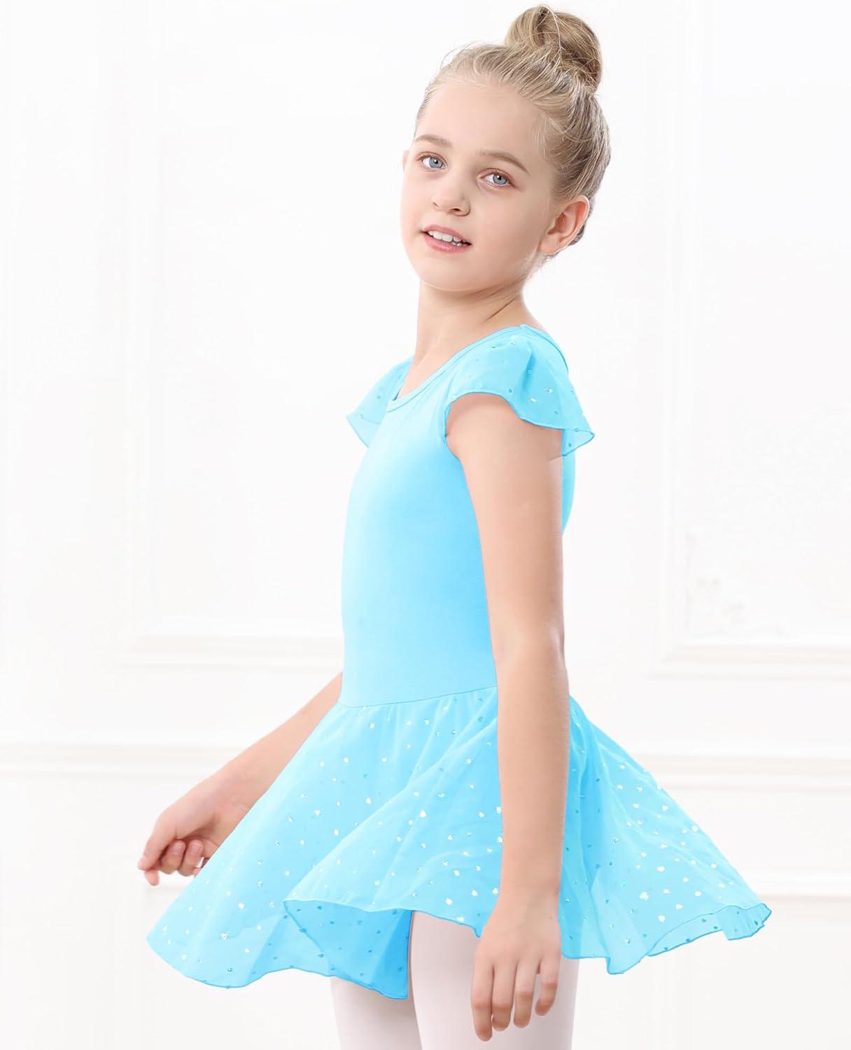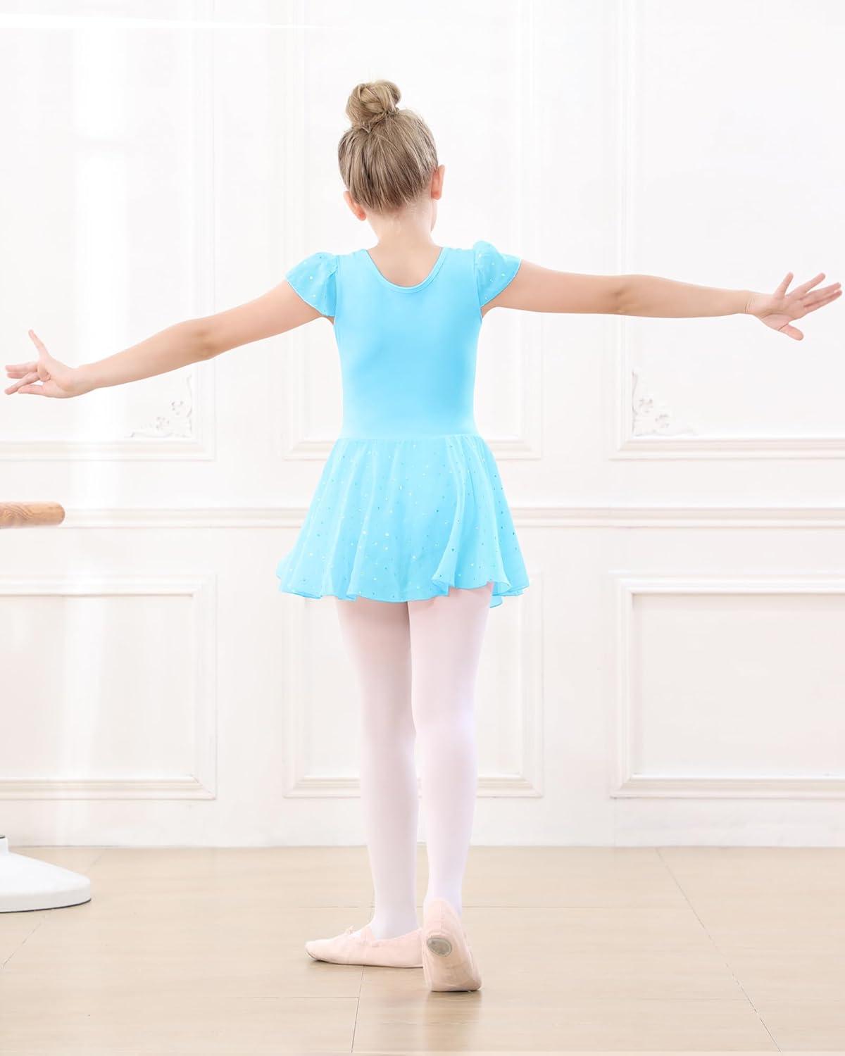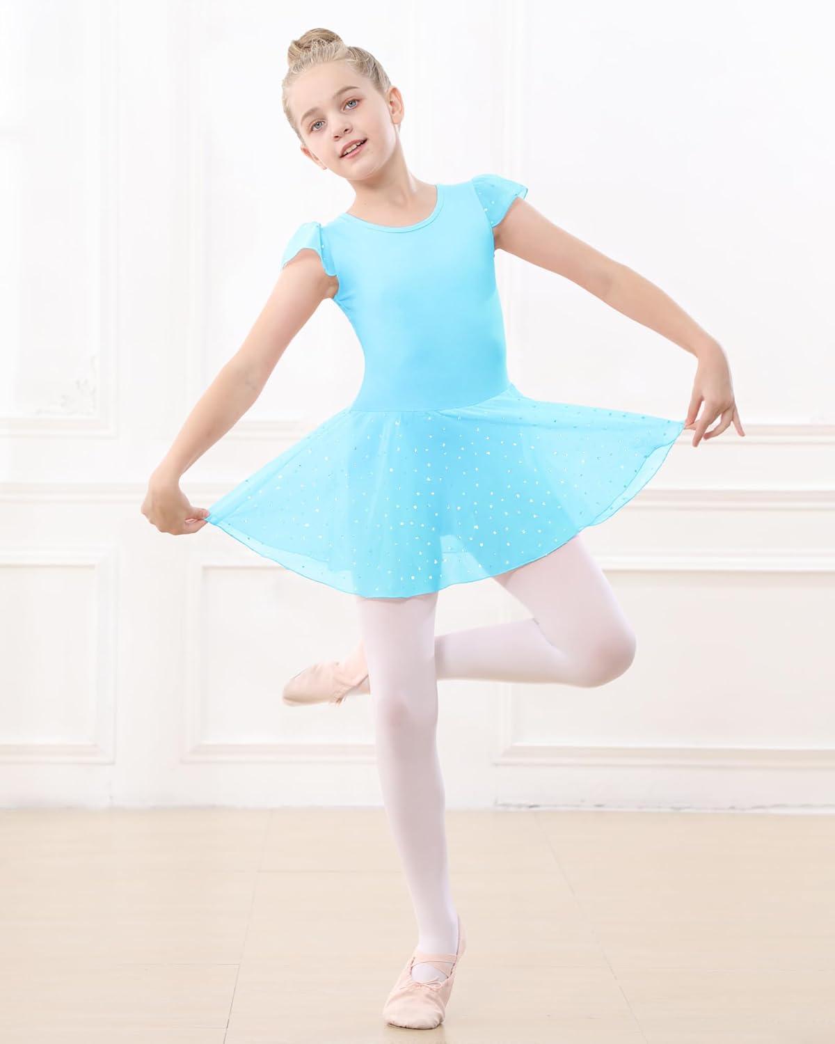 Stelle Ballet Leotards for Girls Dance Leotard with Skirt Toddler Pink Ballet Outfit Ruffle Sleeve Kids Dance Dress(1-pool Blue(shiny Skirt))