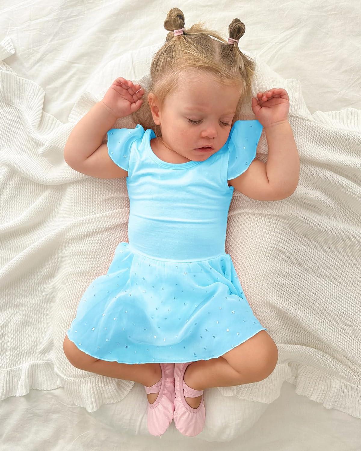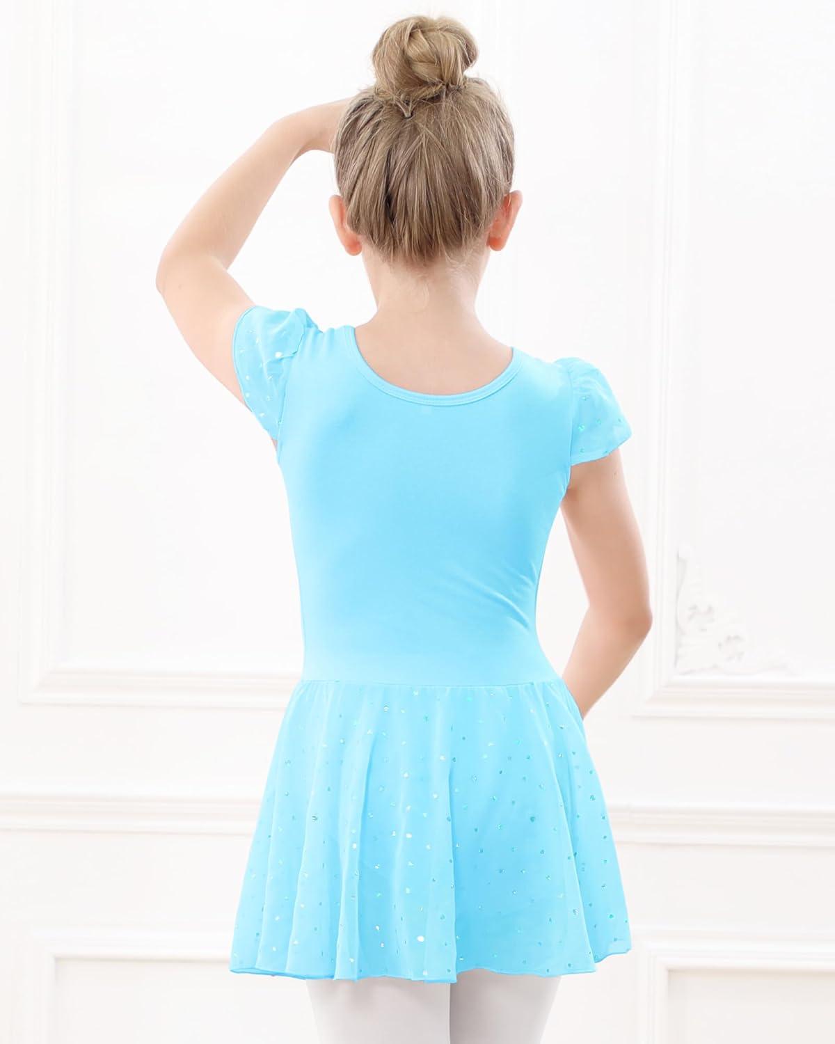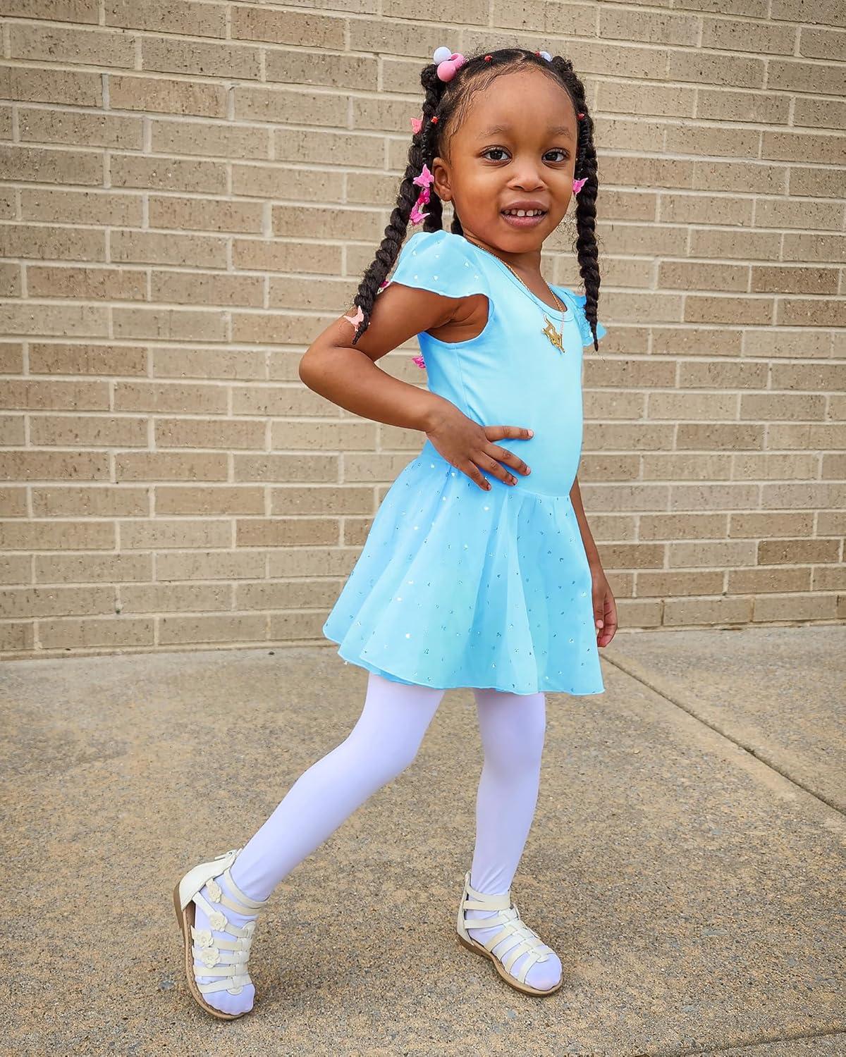 Stelle Ballet Leotards for Girls Dance Leotard with Skirt Toddler Pink Ballet Outfit Ruffle Sleeve Kids Dance Dress(1-pool Blue(shiny Skirt))