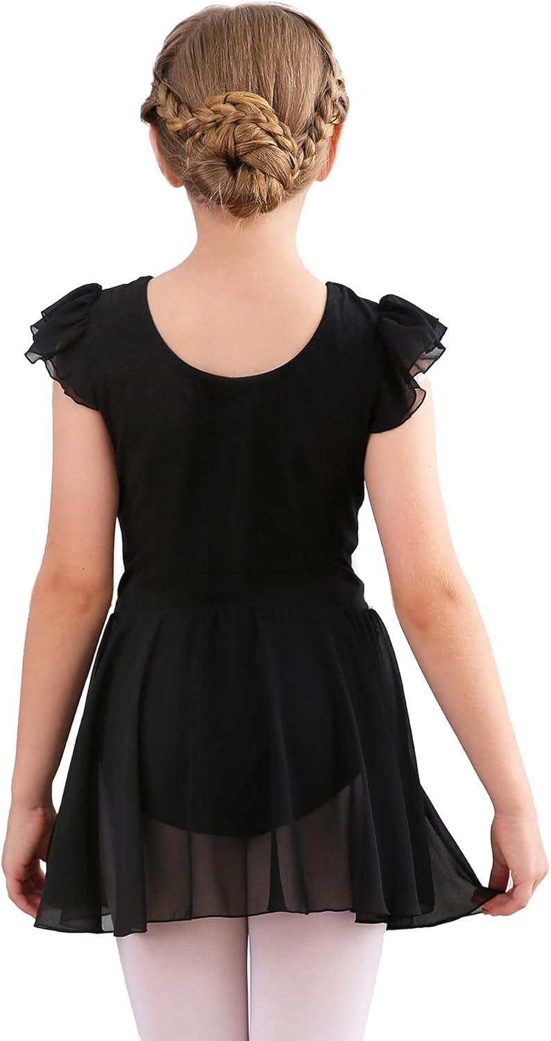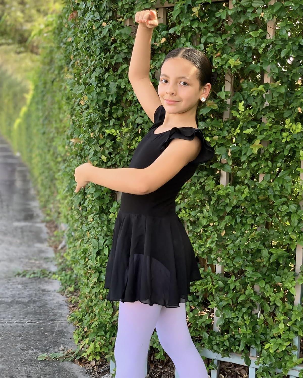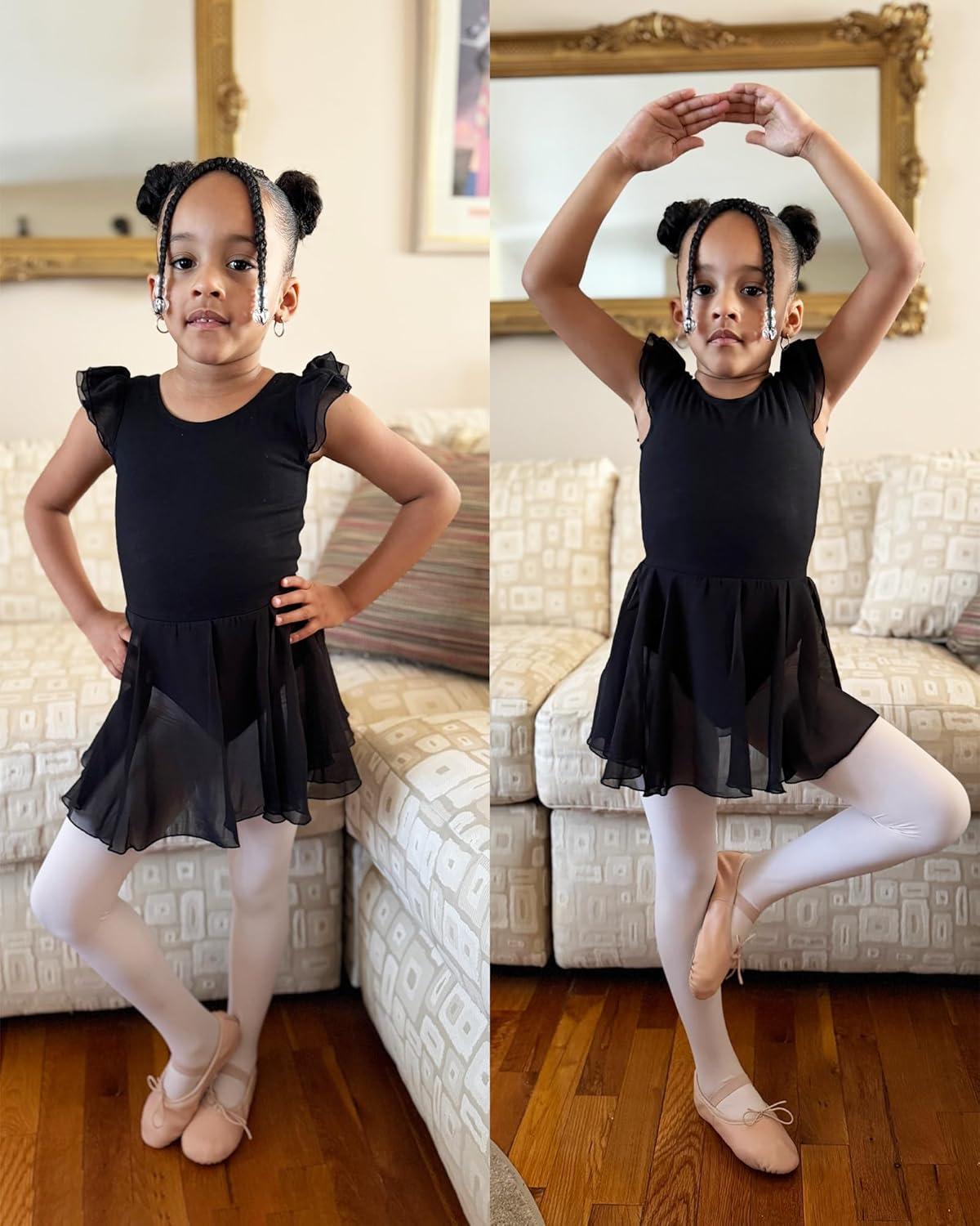 Stelle Ballet Leotards for Girls Dance Leotard with Skirt Toddler Pink Ballet Outfit Ruffle Sleeve Kids Dance Dress(2-black)