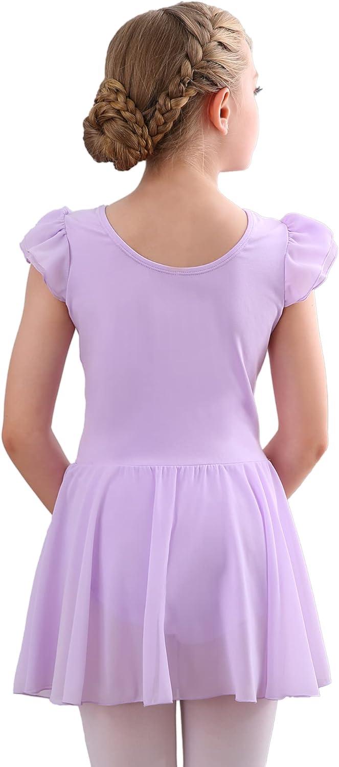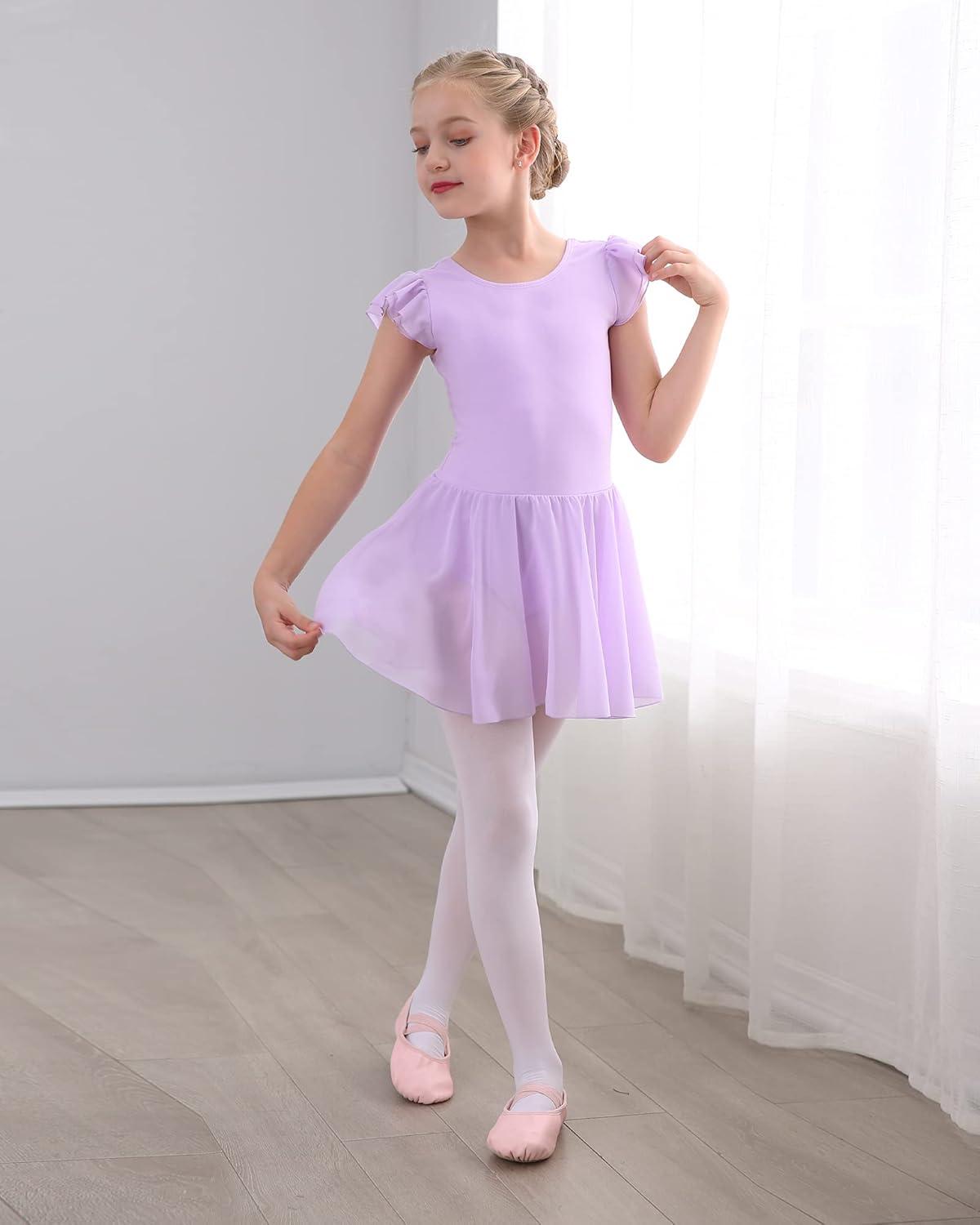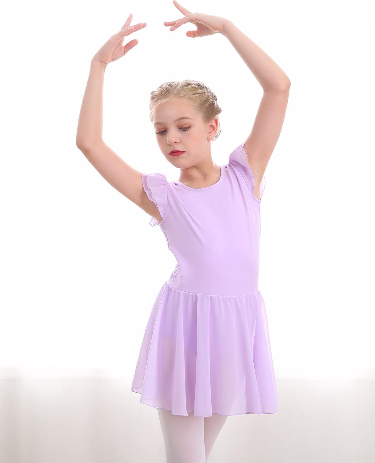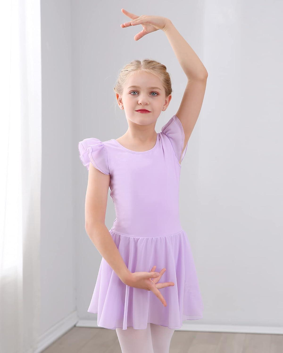 Stelle Ballet Leotards for Girls Dance Leotard with Skirt Toddler Pink Ballet Outfit Ruffle Sleeve Kids Dance Dress(2-light Purple)