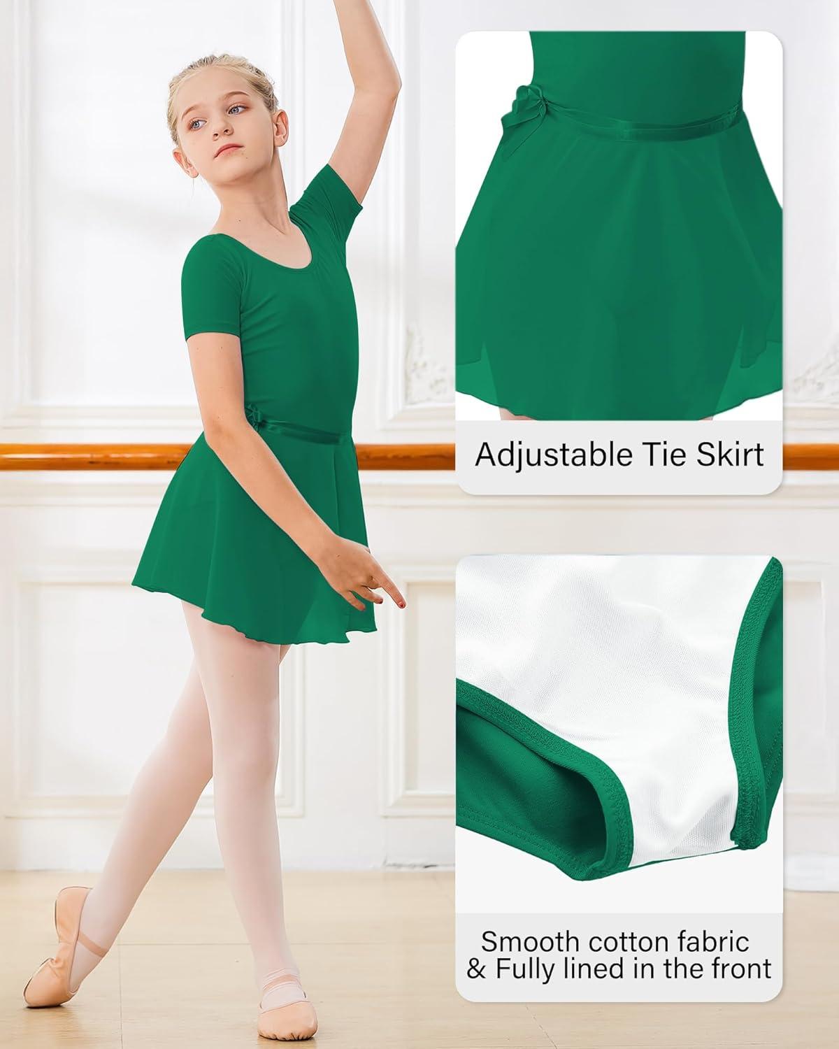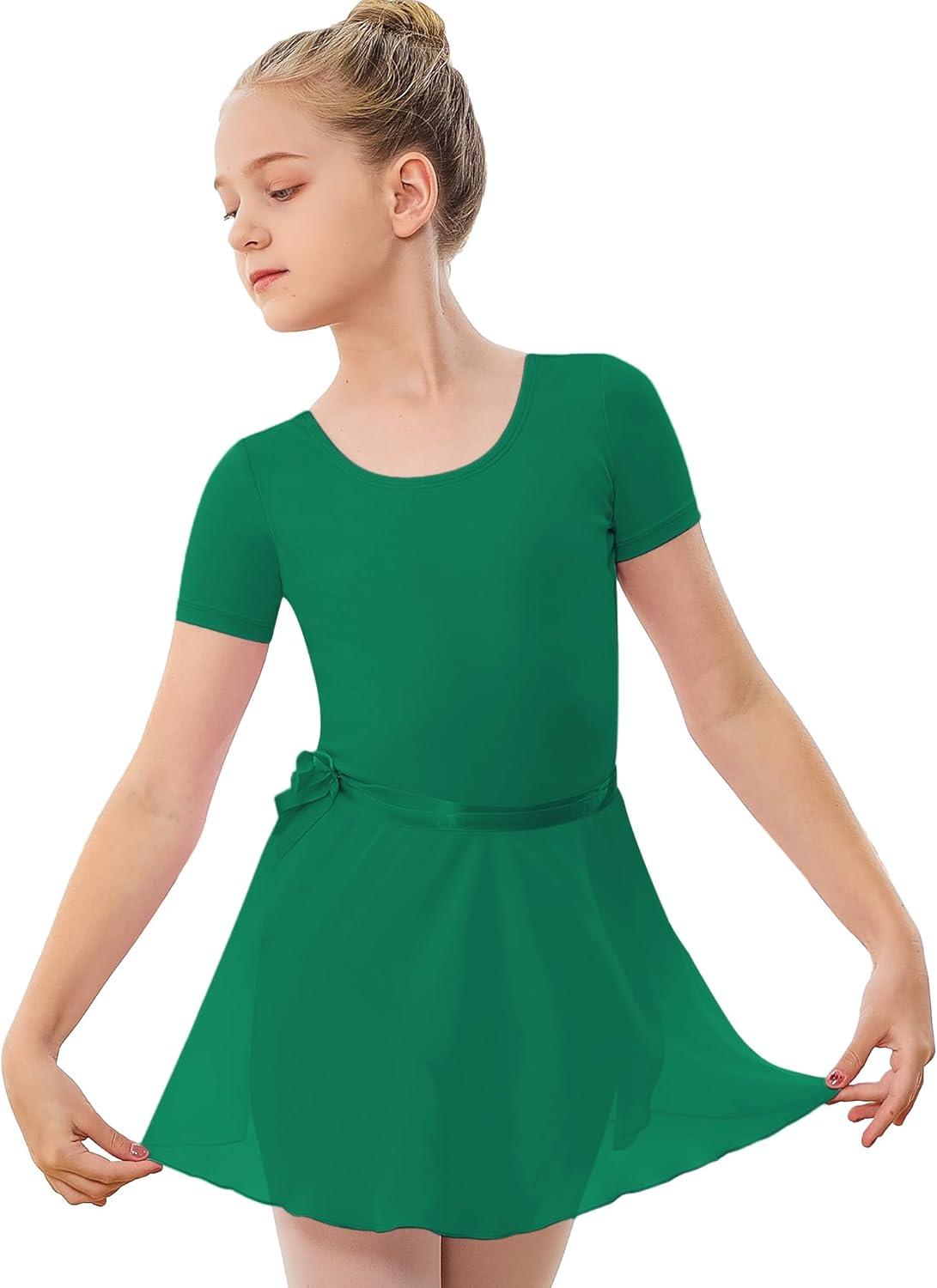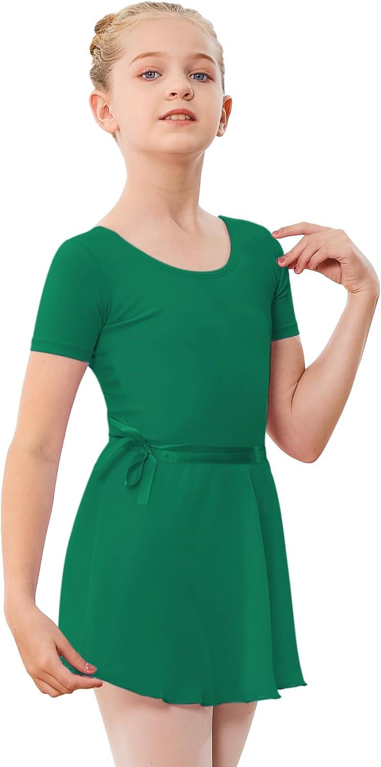 Stelle Ballet Leotards for Girls Toddler Dance Dress Outfit Combo with Skirt and Tights (Toddler/Little Kid/Big Kid)(1-green)