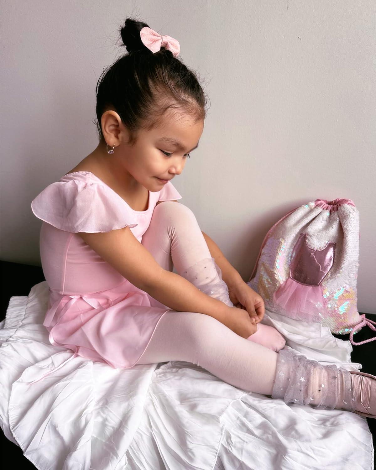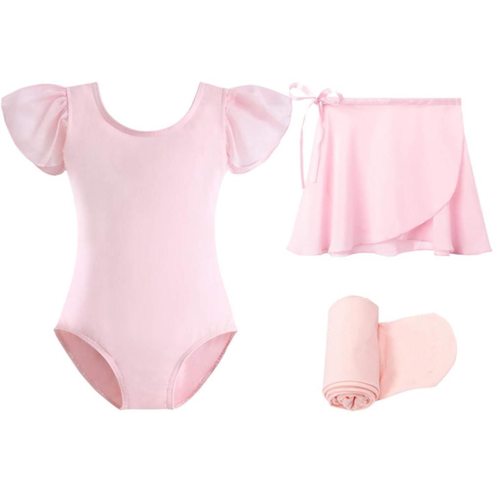 Stelle Ballet Leotards for Girls Toddler Dance Dress Outfit Combo with Skirt and Tights (Toddler/Little Kid/Big Kid)(3-ballet Pink (Ruffle Sleeve))