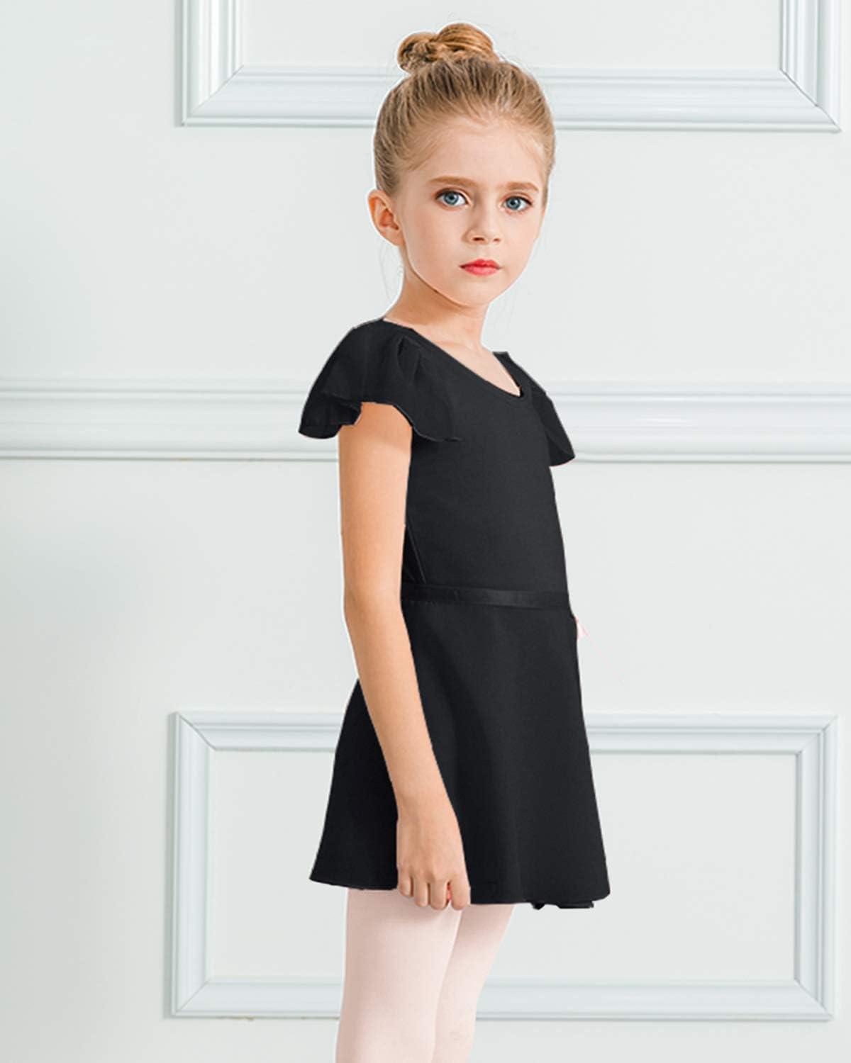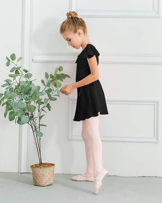 Stelle Ballet Leotards for Girls Toddler Dance Dress Outfit Combo with Skirt and Tights (Toddler/Little Kid/Big Kid)(3-black (Ruffle Sleeve))