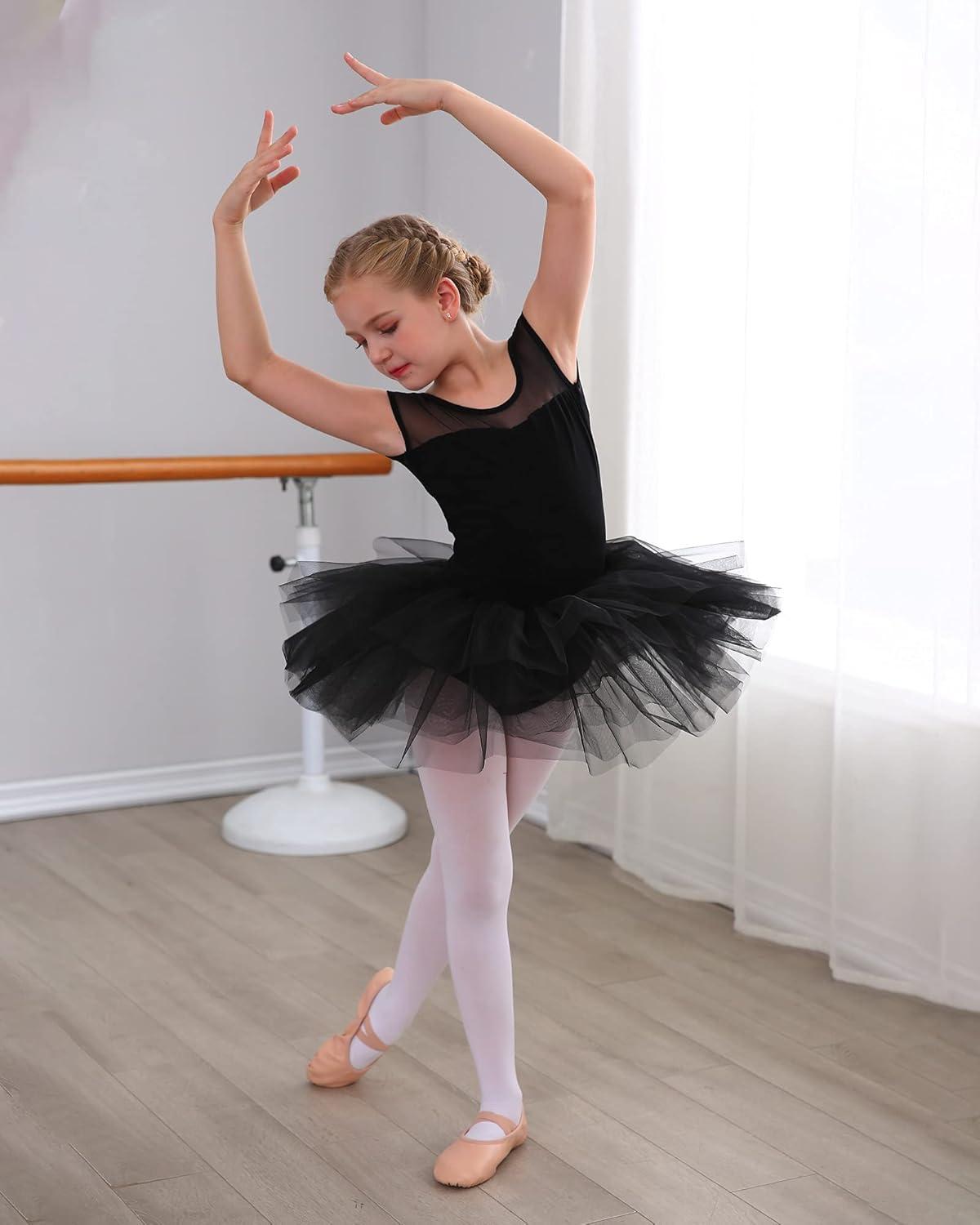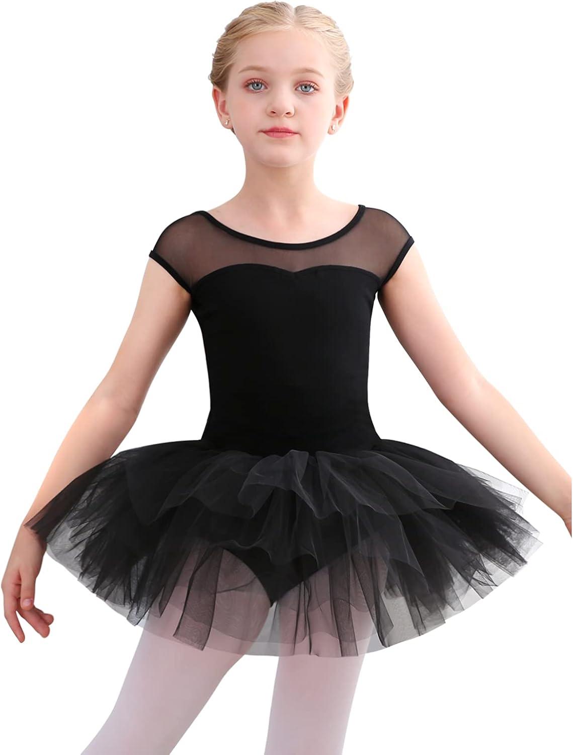 Stelle Ballet Leotards for Girls Toddler Leotard with Tutu Skirt Dance Tutu Dress (Little/Big Kid)(01-black)