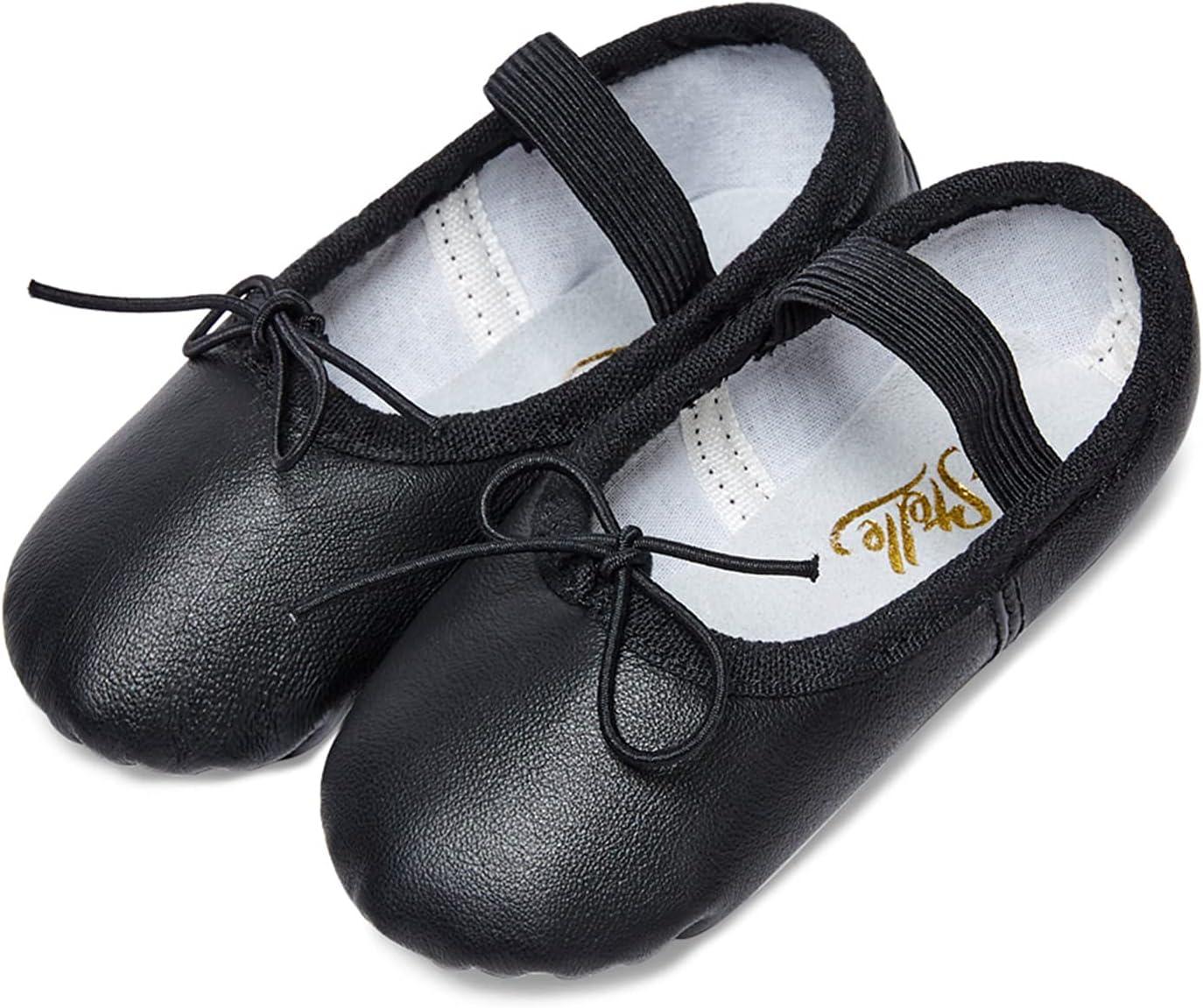 Stelle Ballet Shoes for Girls Toddler Genuine Leather Ballet Dance Slippers for Toddler/Little/Big Kids/Boys(Black)