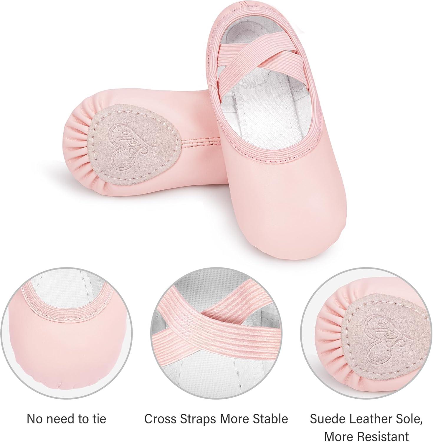 Stelle Ballet Shoes for Girls Women PU Leather Dance Slippers Boys Ballerina Shoes for Toddler/Little Kid/Big Kid/Women(Pink)