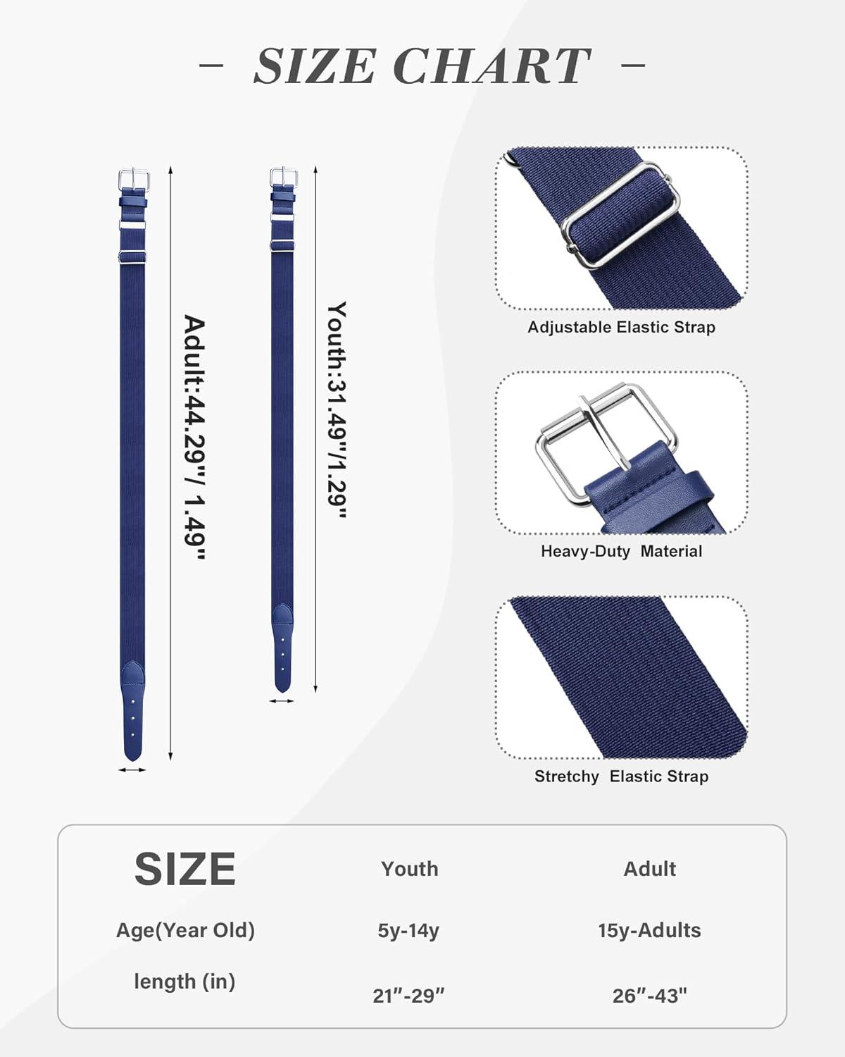 Stelle Baseball/Softball/Fastpitch Belt Girls Sports Elastic Adjustable Boys Uniform Belts Youth and Adult Sizes(Navy)