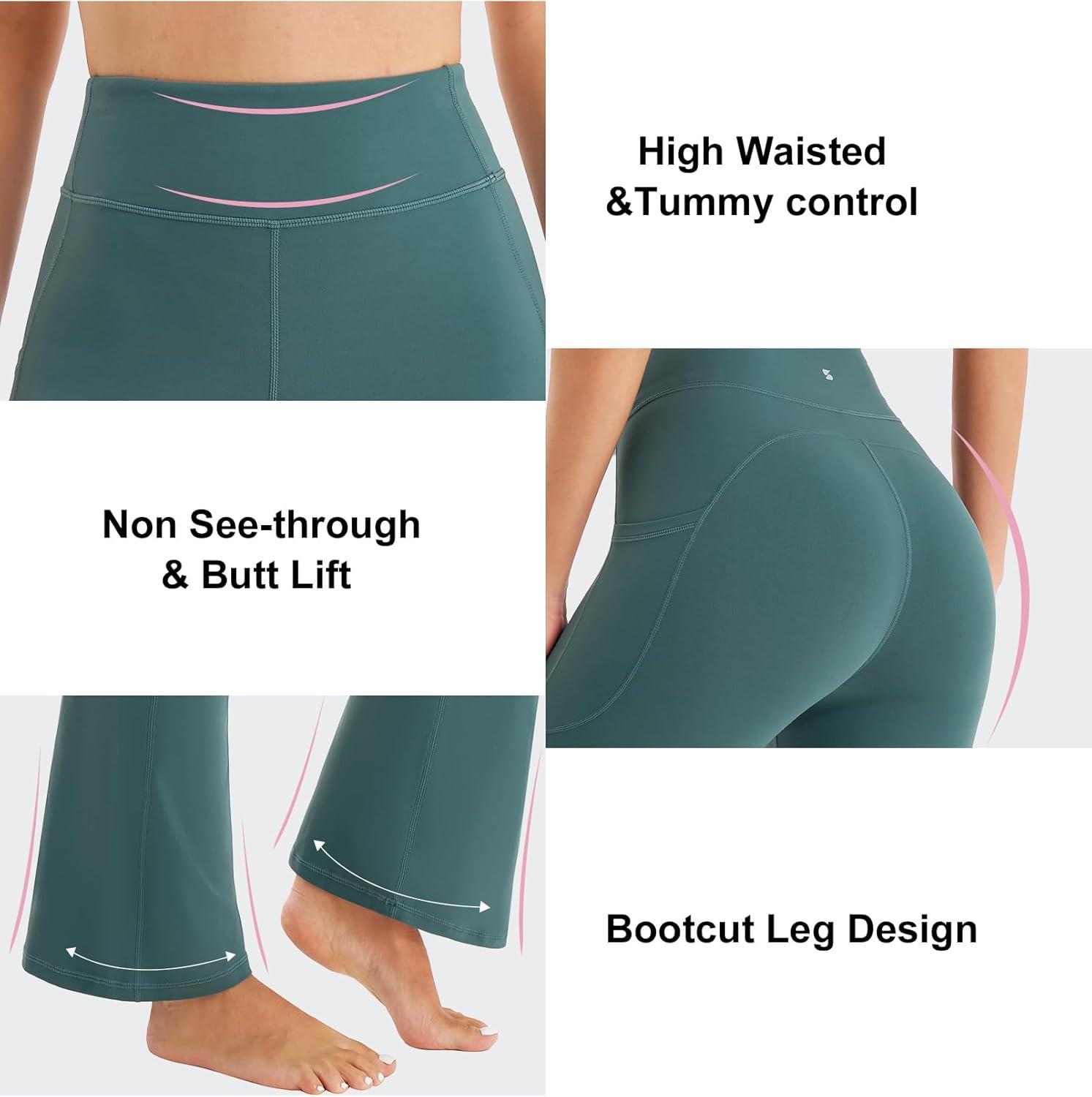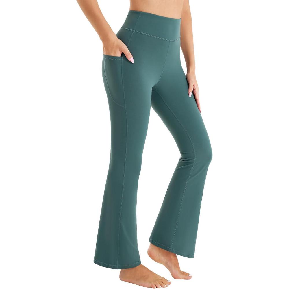 Stelle Bootcut Yoga Pants with Pockets for Women 30″ Wide Leg Pants High Waist Tummy Control Workout Yoga Pants(Canal Green)