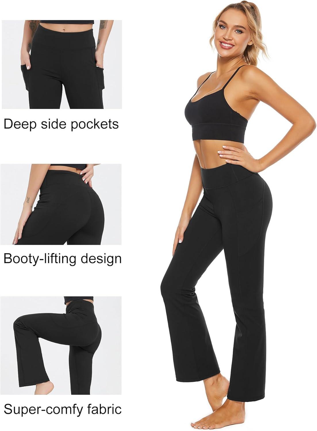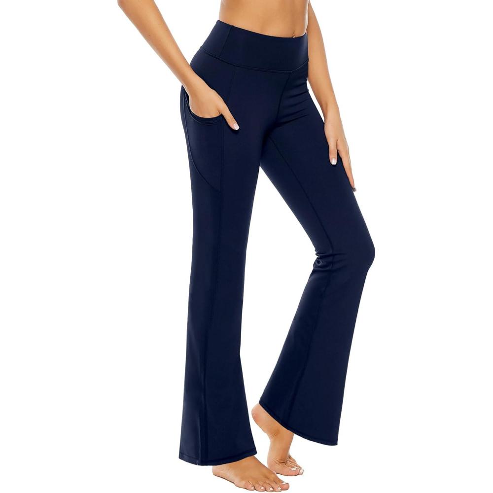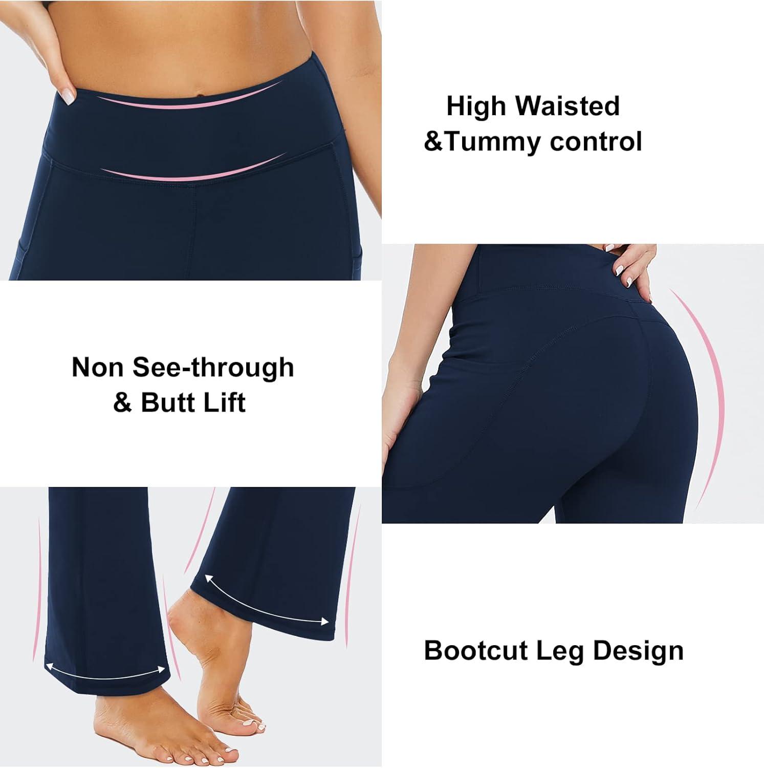 Stelle Bootcut Yoga Pants with Pockets for Women 30″ Wide Leg Pants High Waist Tummy Control Workout Yoga Pants(Navy)