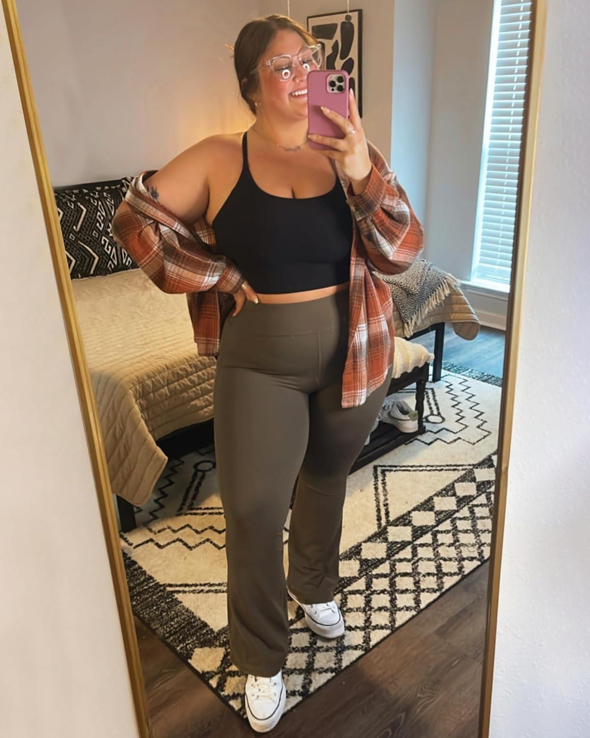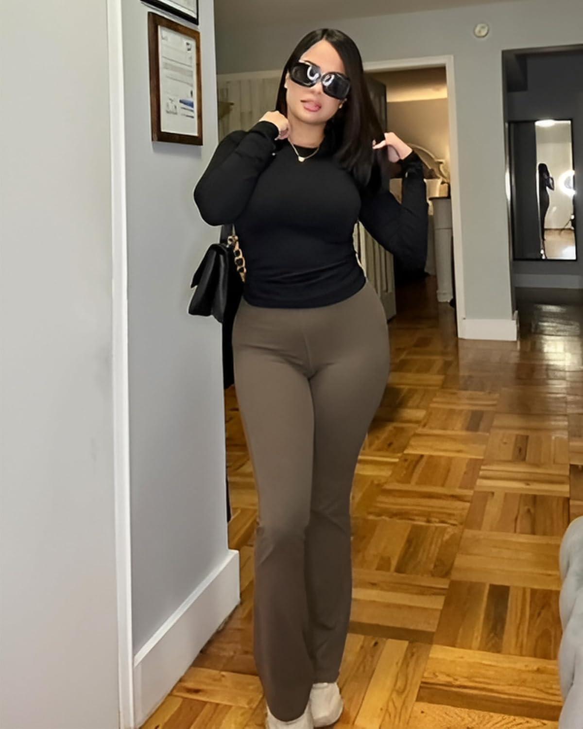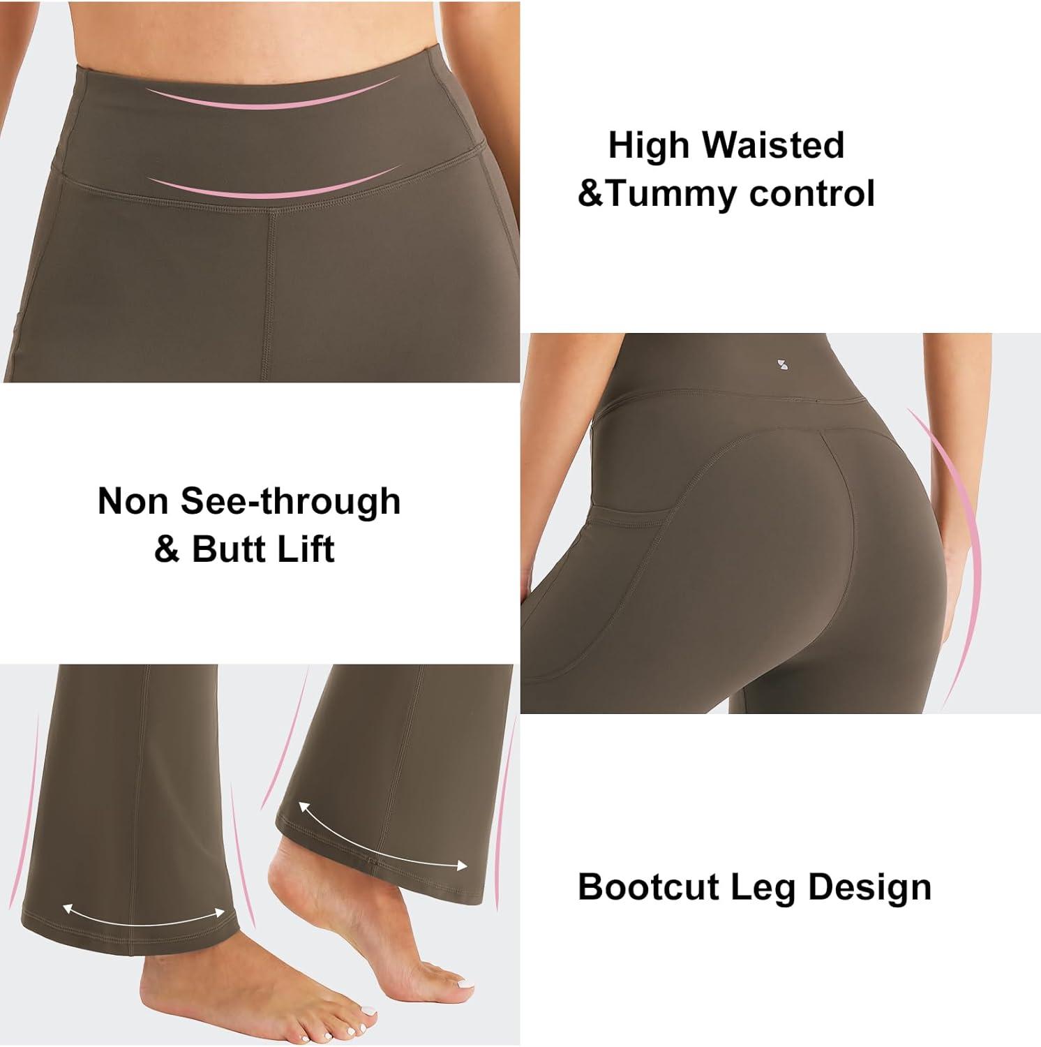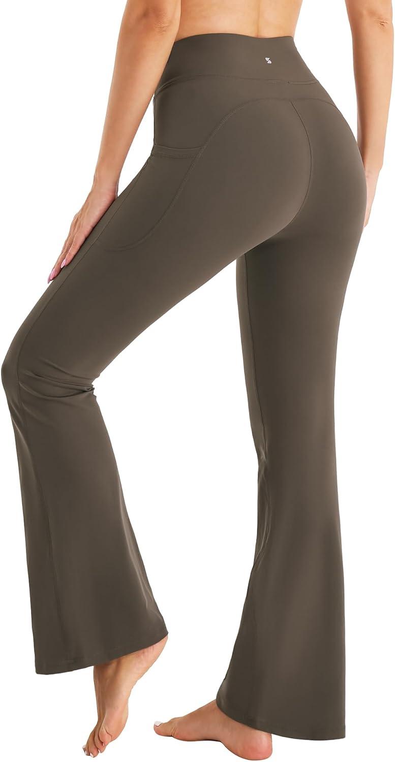 Stelle Bootcut Yoga Pants with Pockets for Women 30″ Wide Leg Pants High Waist Tummy Control Workout Yoga Pants(Tea Brown)