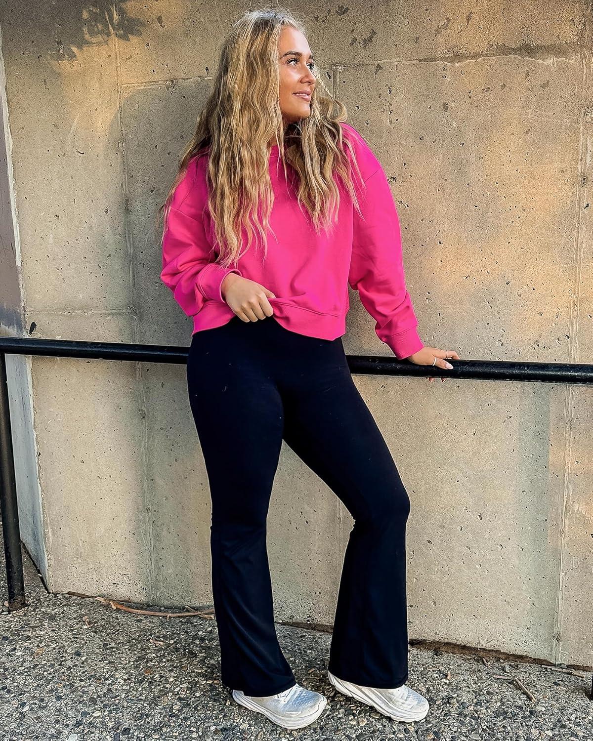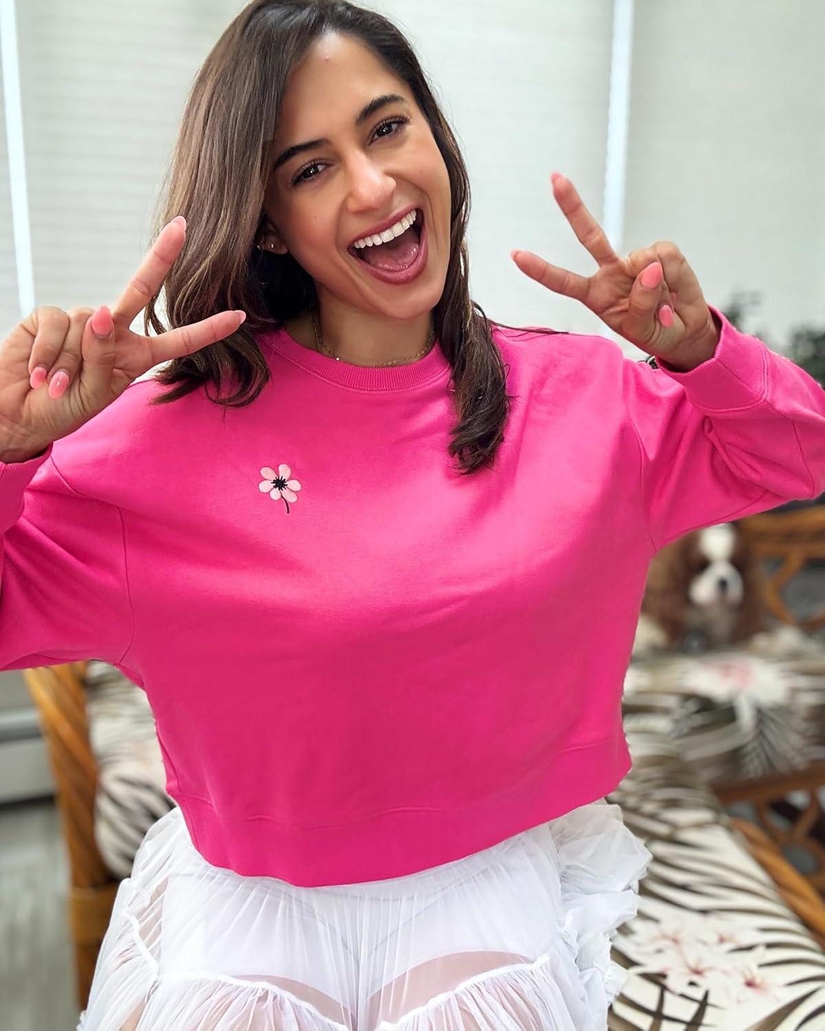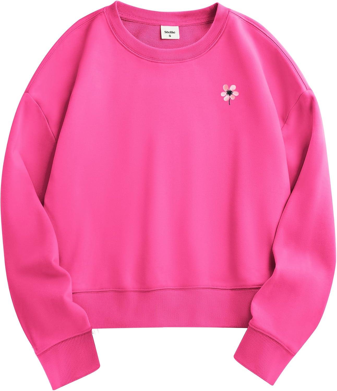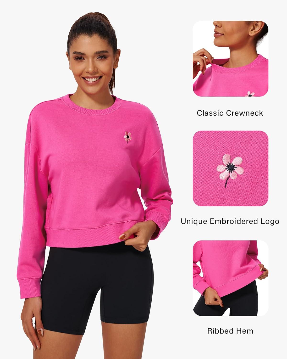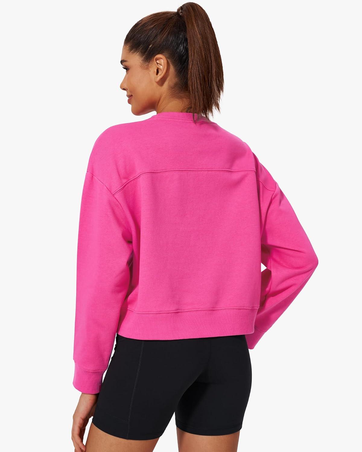 Stelle Cropped Sweatshirt for Women Crewneck Pullover Tops Oversized Long Sleeve Lightweight Casual Cotton Sweat Shirts(Cosmopolitan)