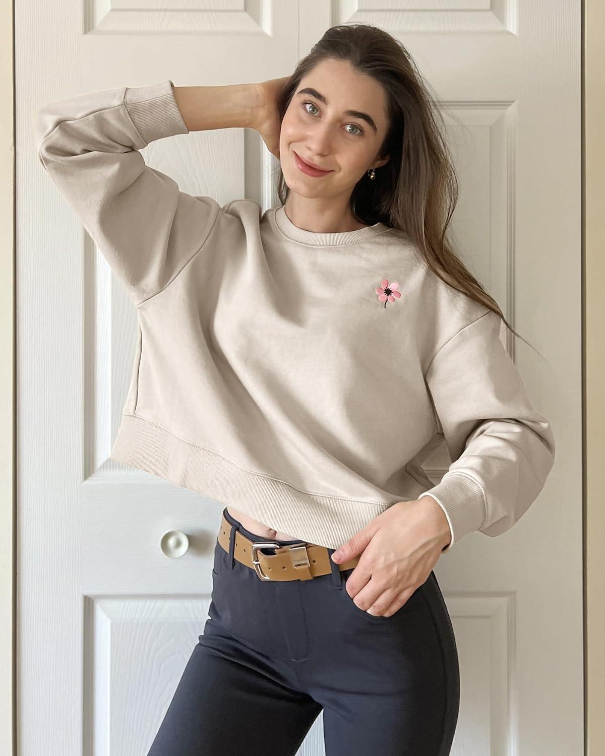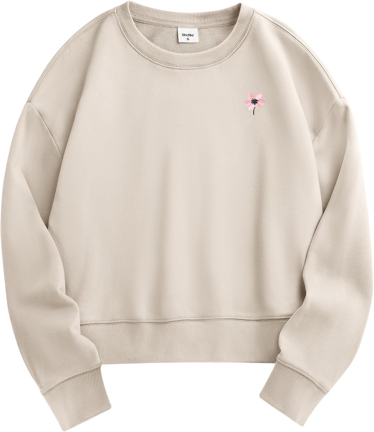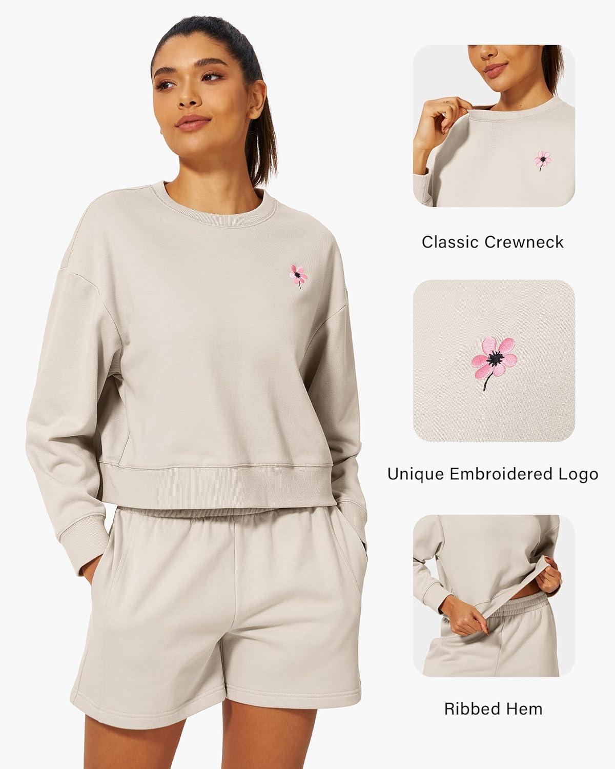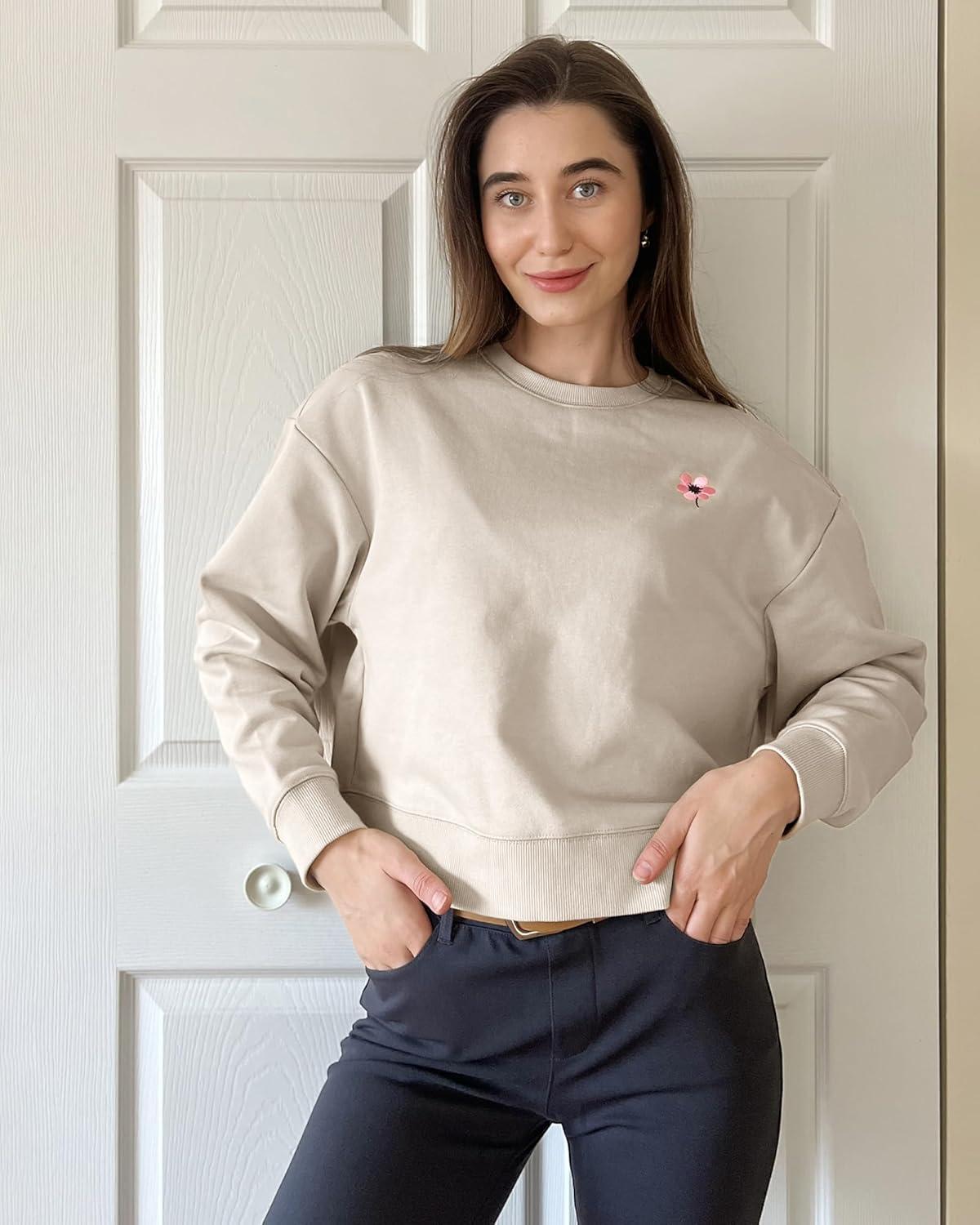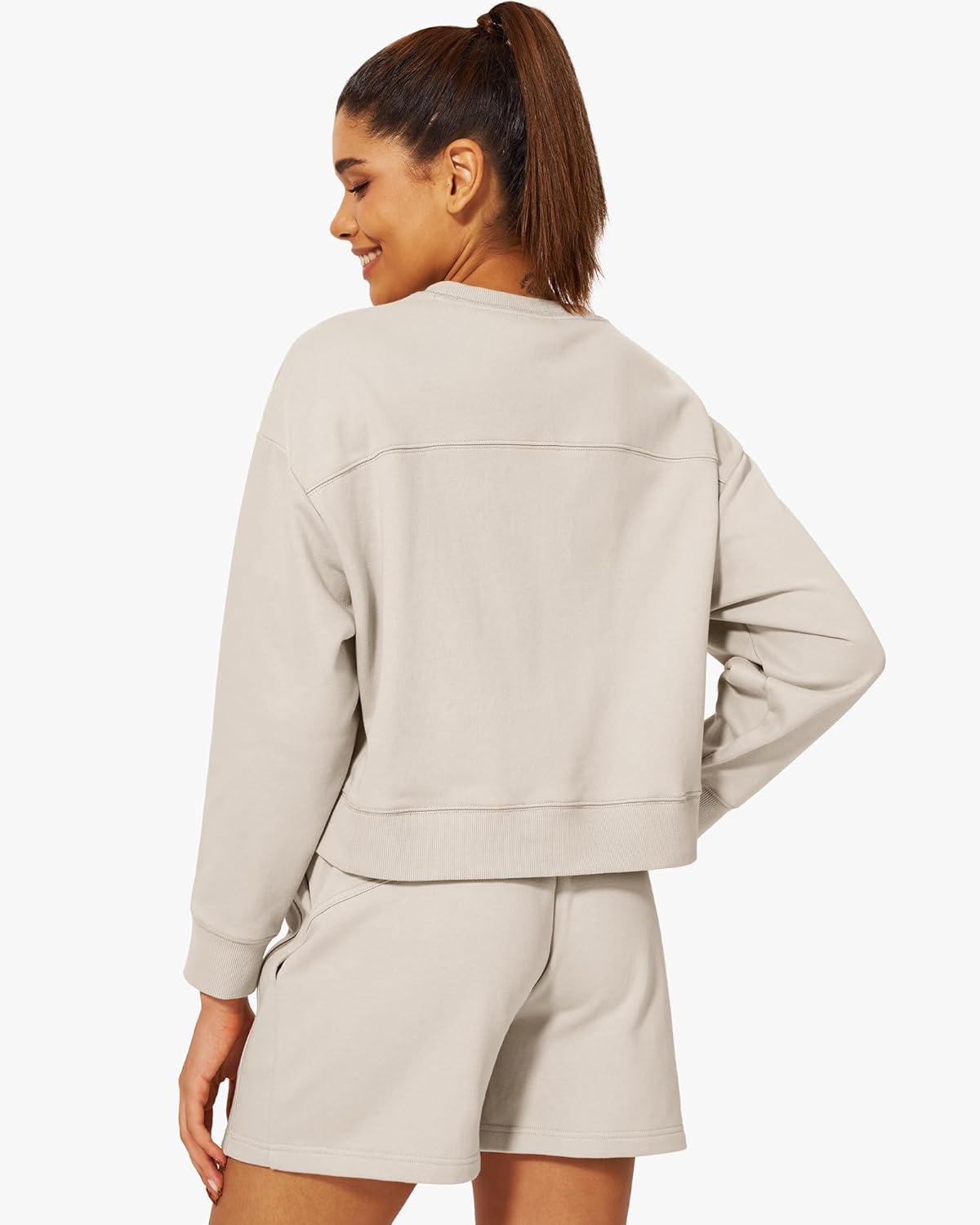 Stelle Cropped Sweatshirt for Women Crewneck Pullover Tops Oversized Long Sleeve Lightweight Casual Cotton Sweat Shirts(Oat Milk)