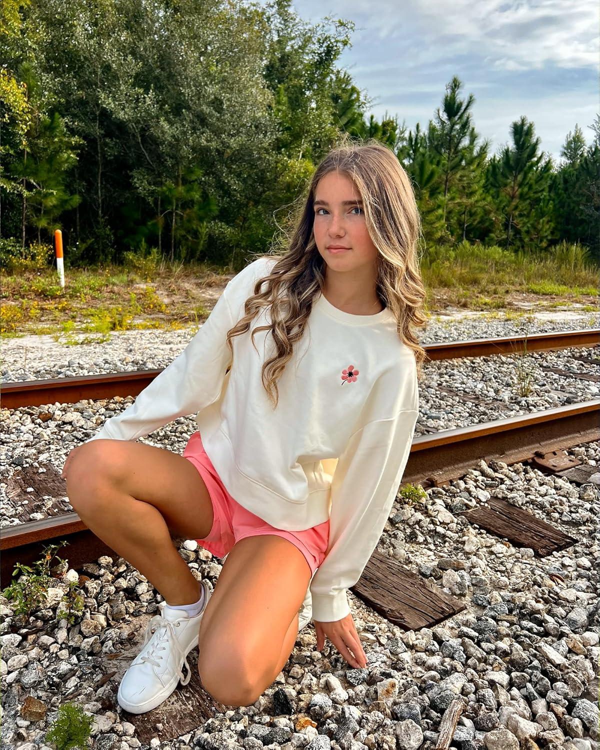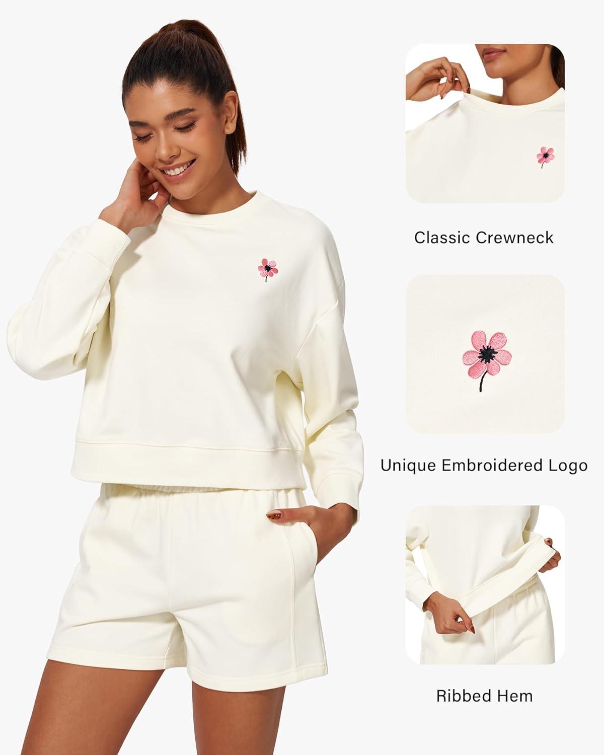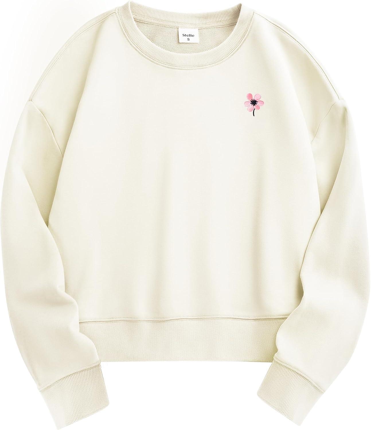 Stelle Cropped Sweatshirt for Women Crewneck Pullover Tops Oversized Long Sleeve Lightweight Casual Cotton Sweat Shirts(Off-white)