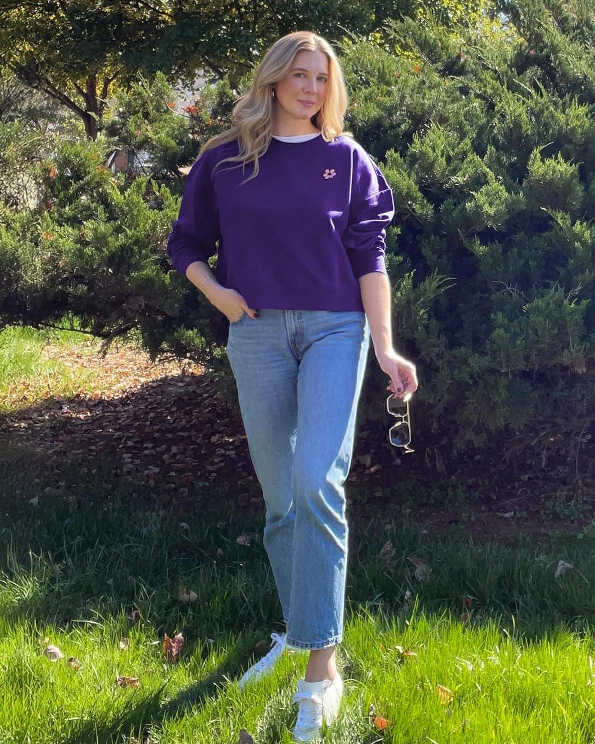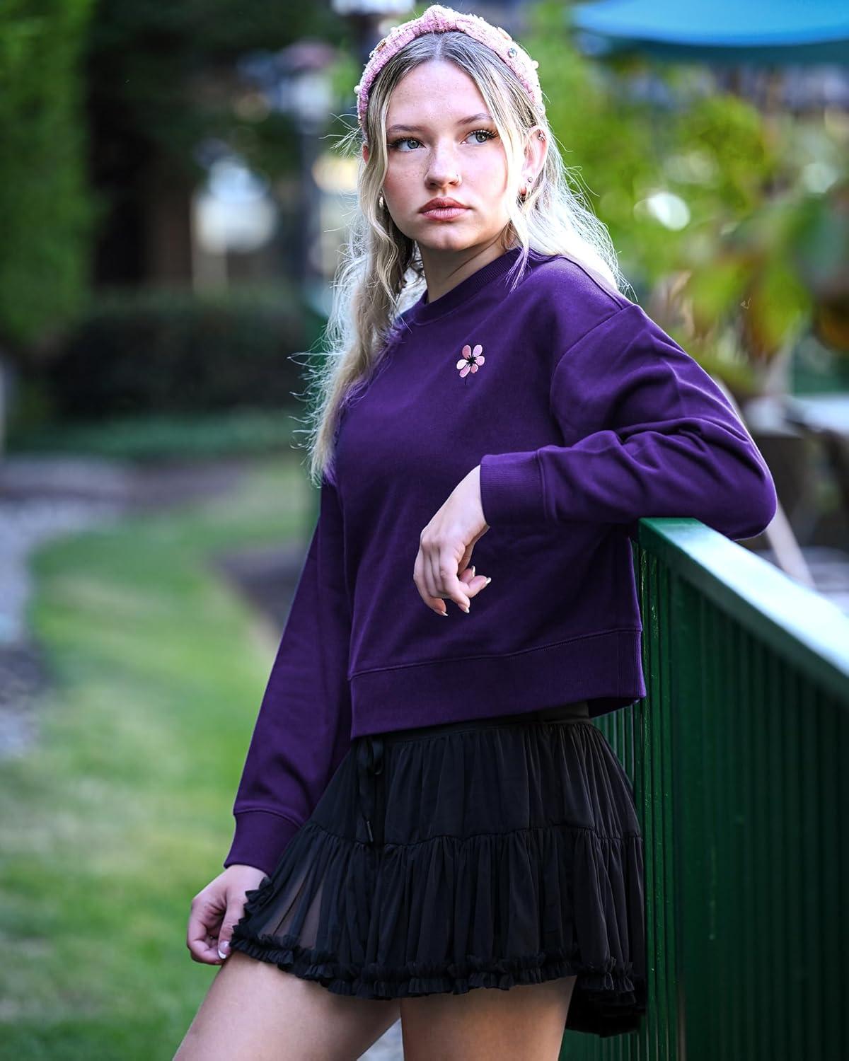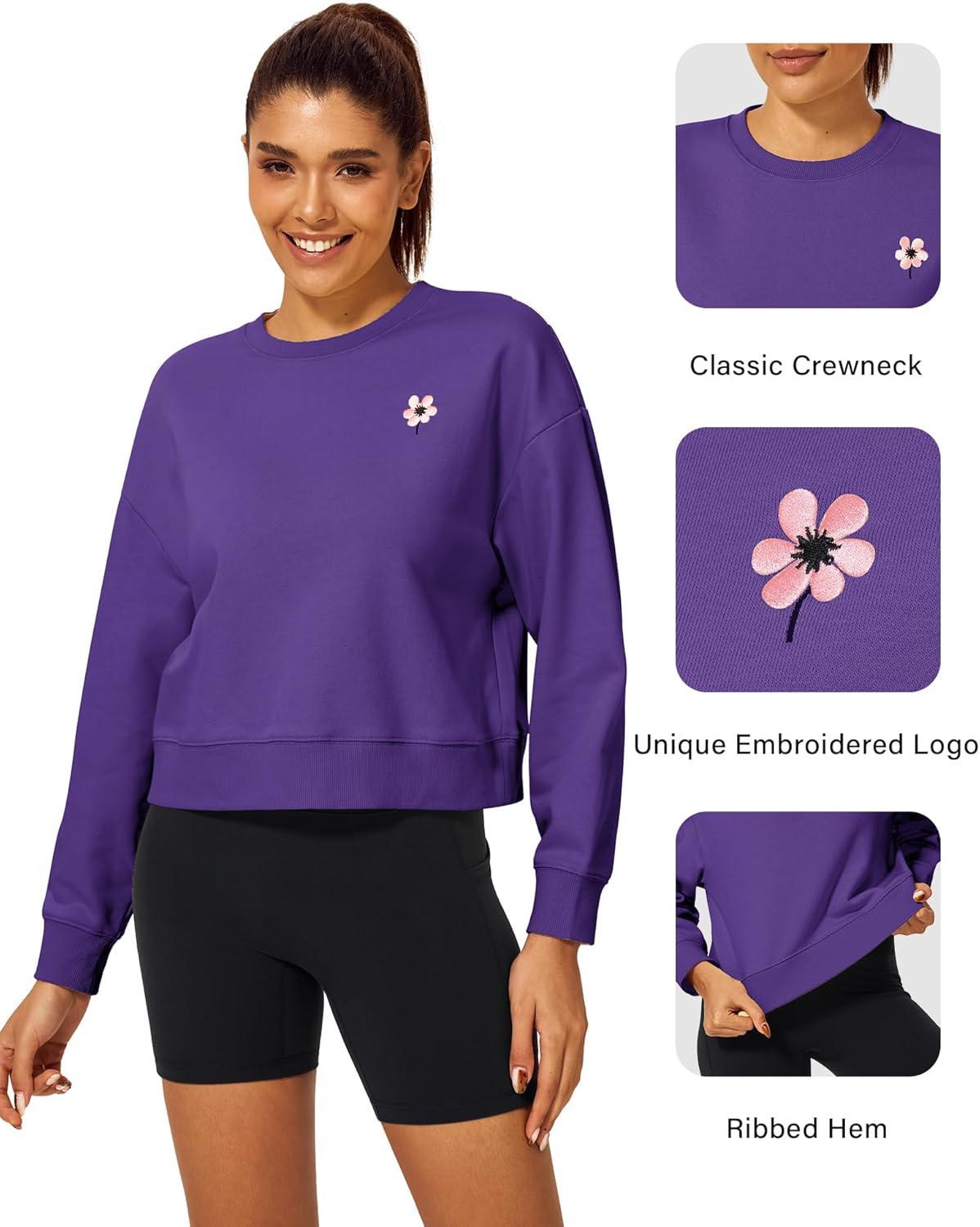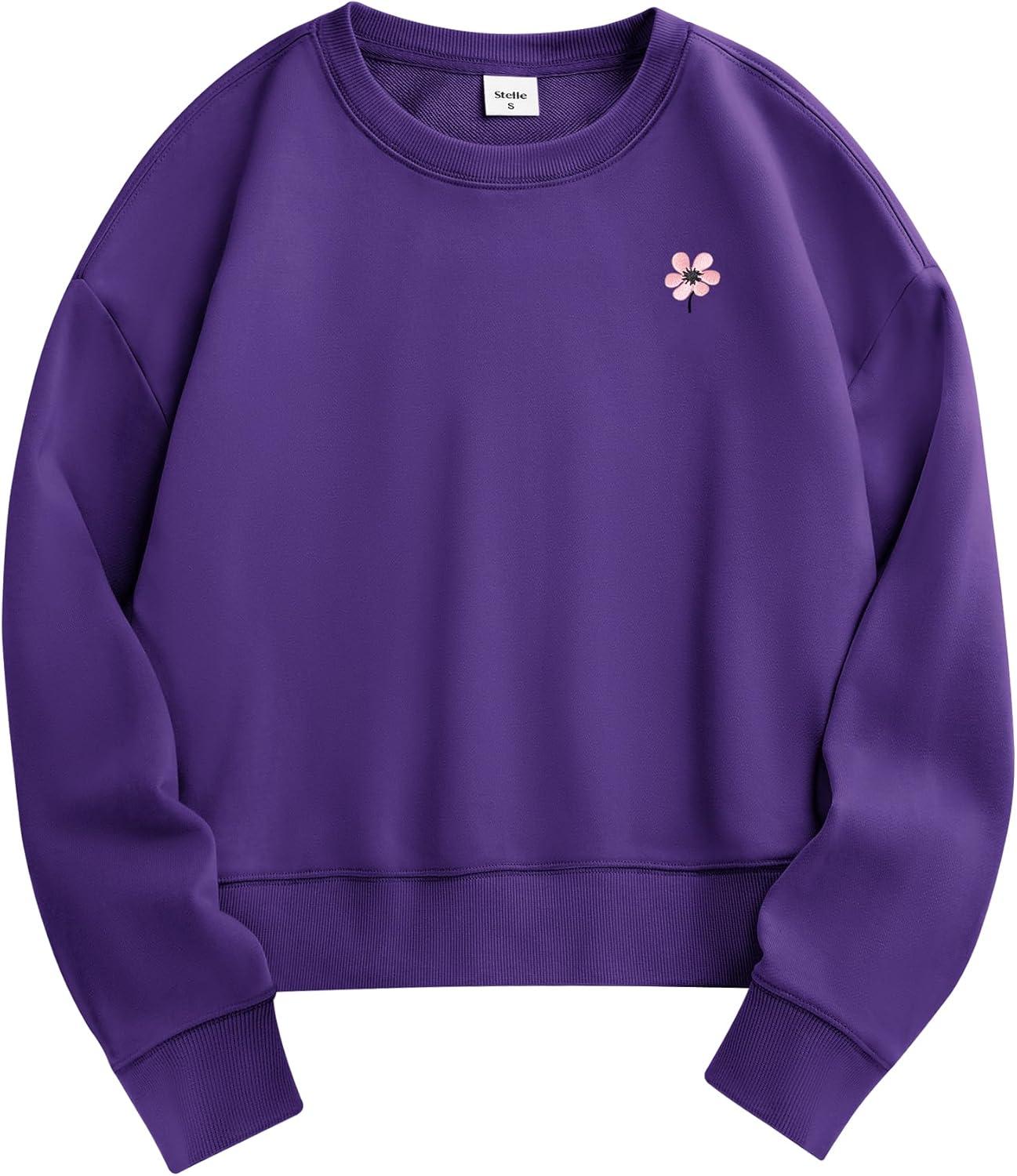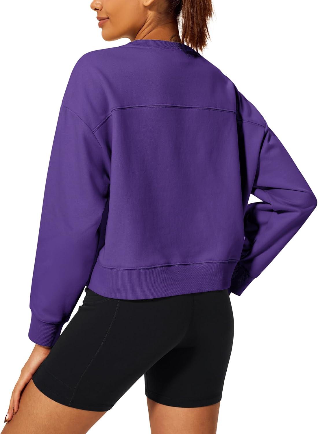 Stelle Cropped Sweatshirt for Women Crewneck Pullover Tops Oversized Long Sleeve Lightweight Casual Cotton Sweat Shirts(Purple)