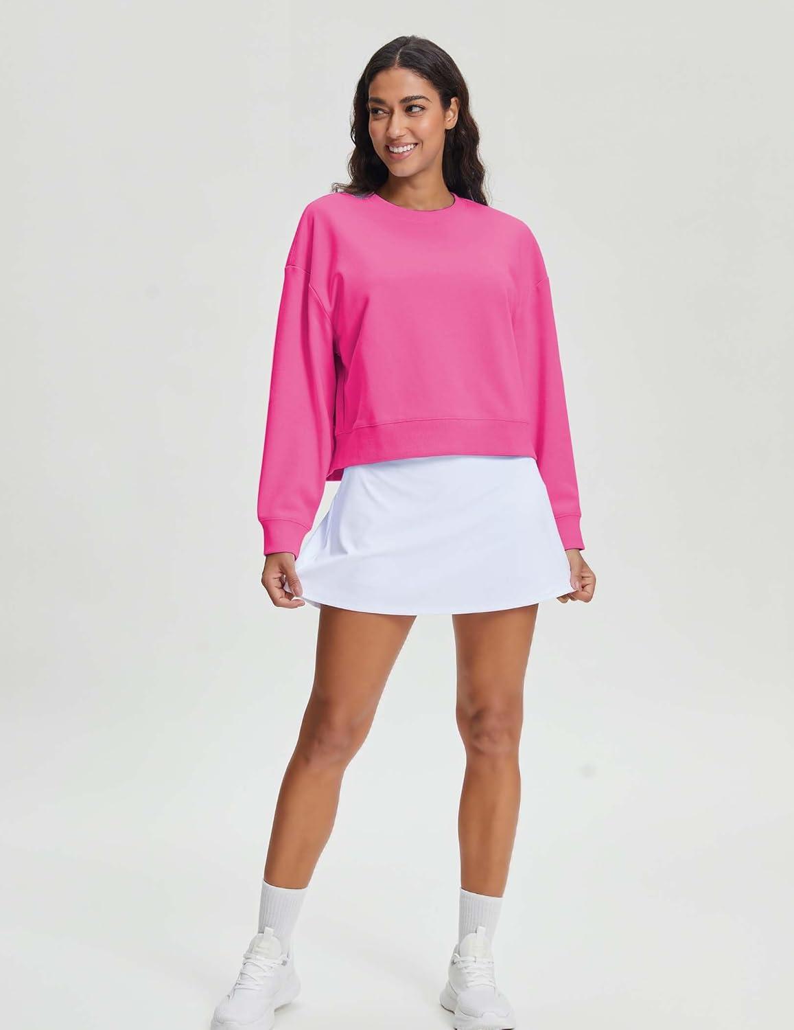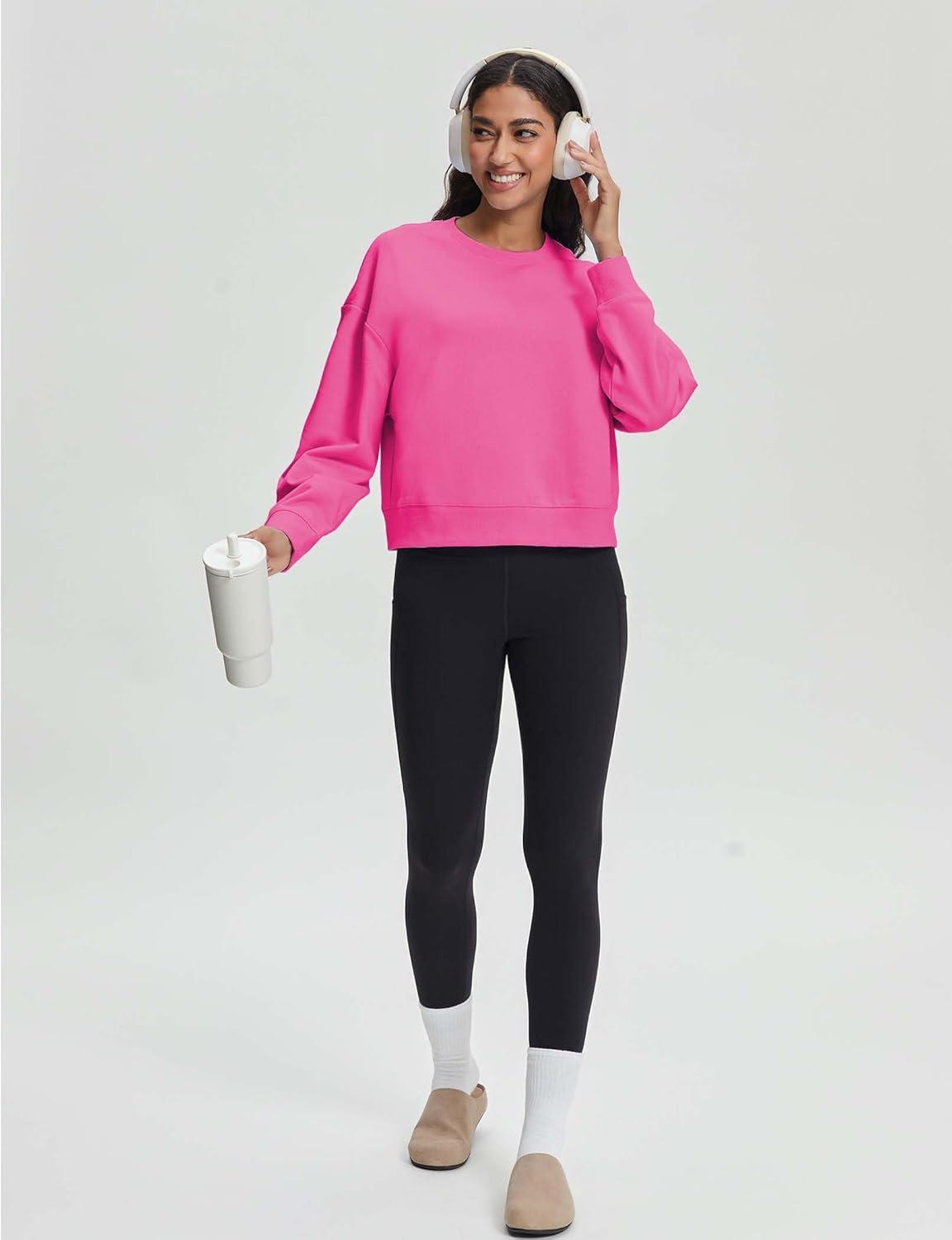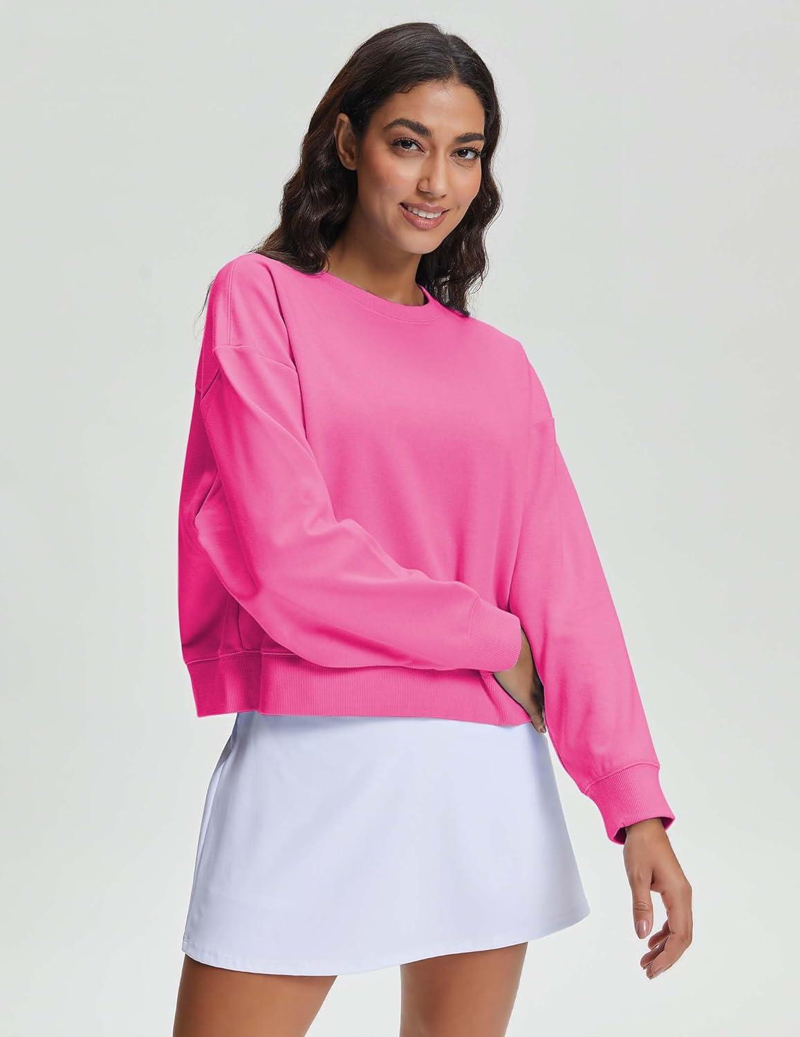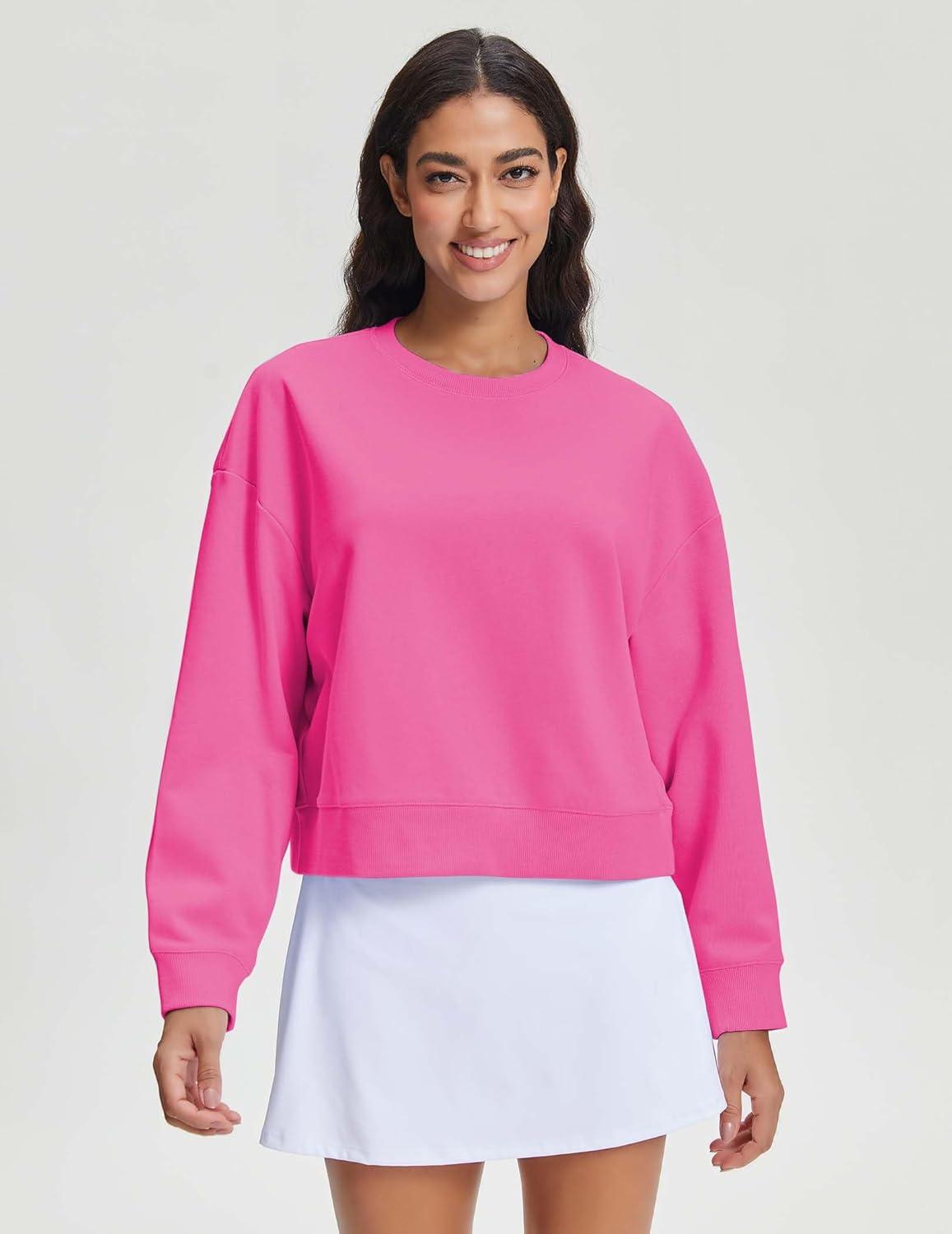 Stelle Cropped Sweatshirts for Women Cotton Long Sleeve Crop Tops Crewneck Pullover Oversized Sweater(Cosmopolitan)
