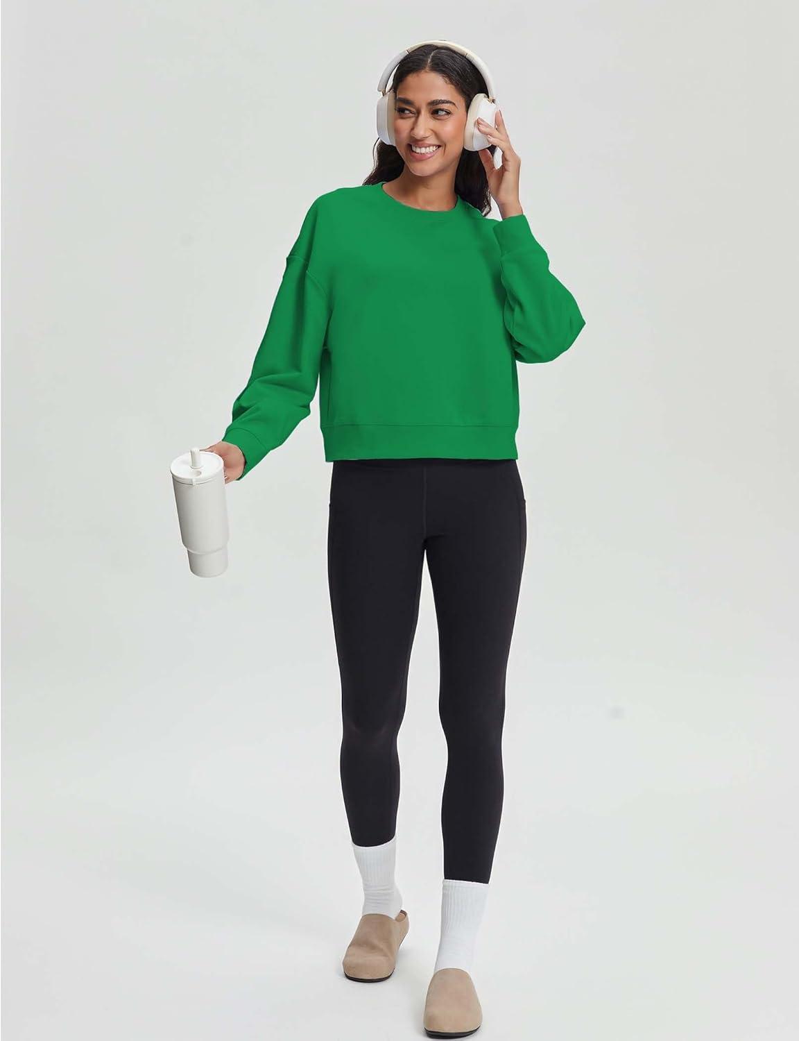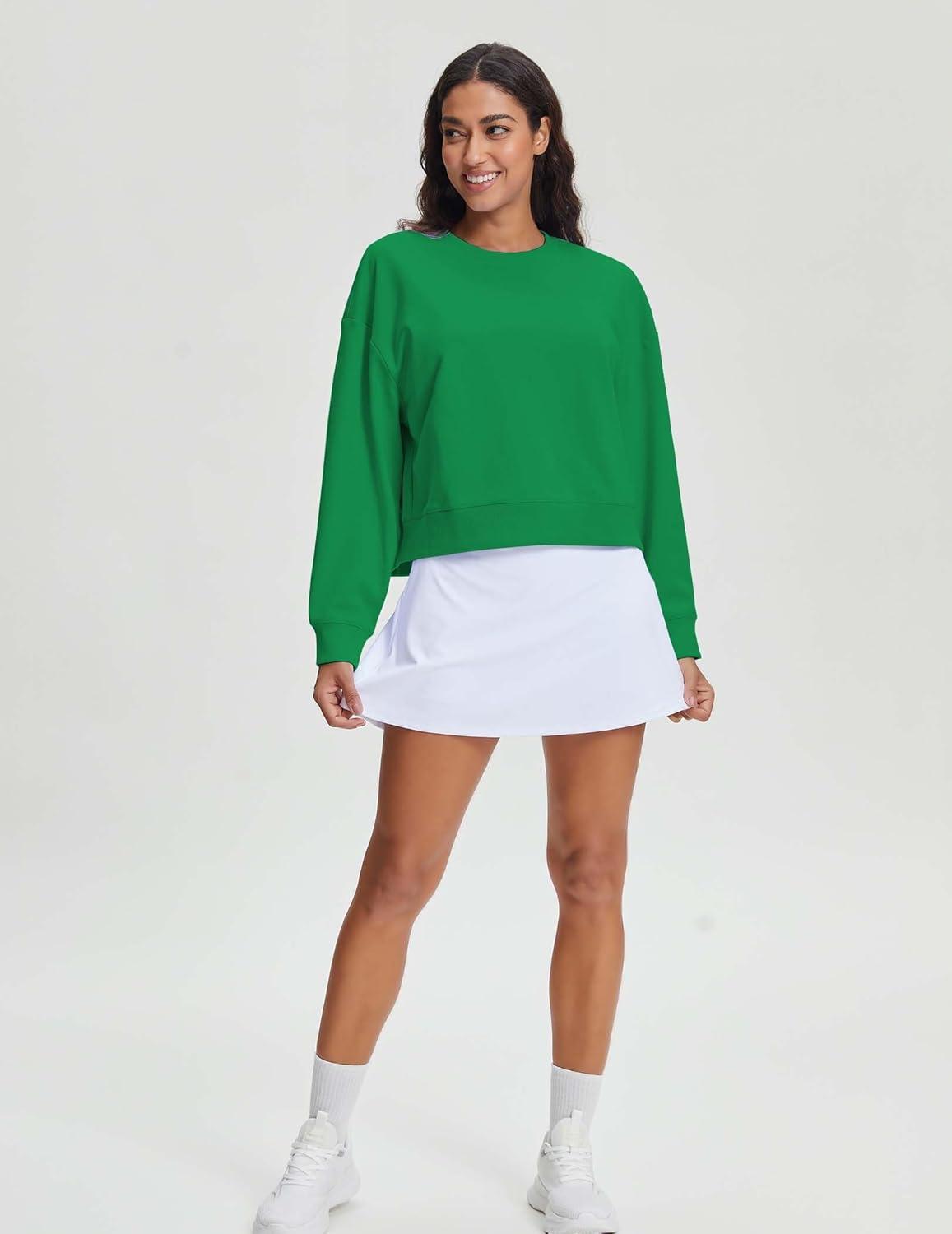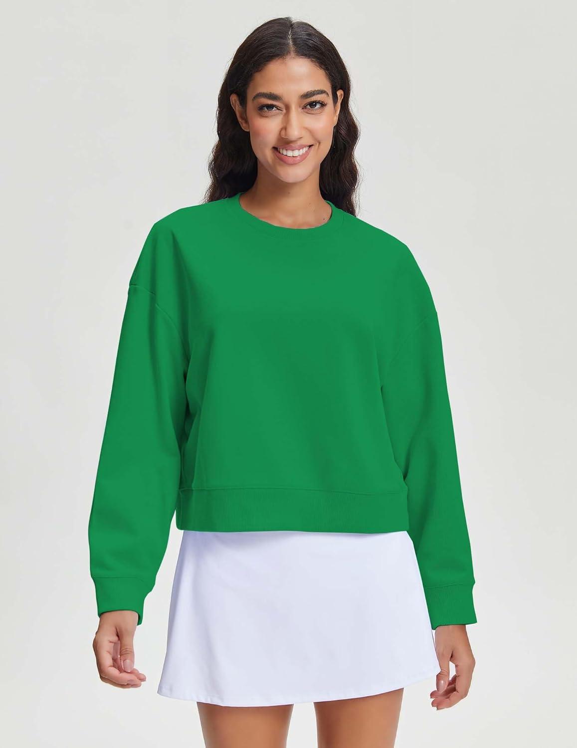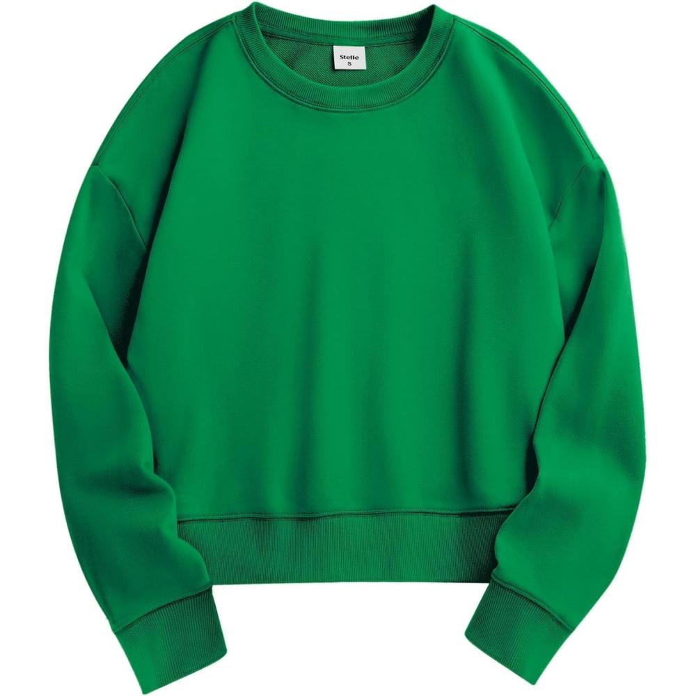Stelle Cropped Sweatshirts for Women Cotton Long Sleeve Crop Tops Crewneck Pullover Oversized Sweater(Kelly Green)