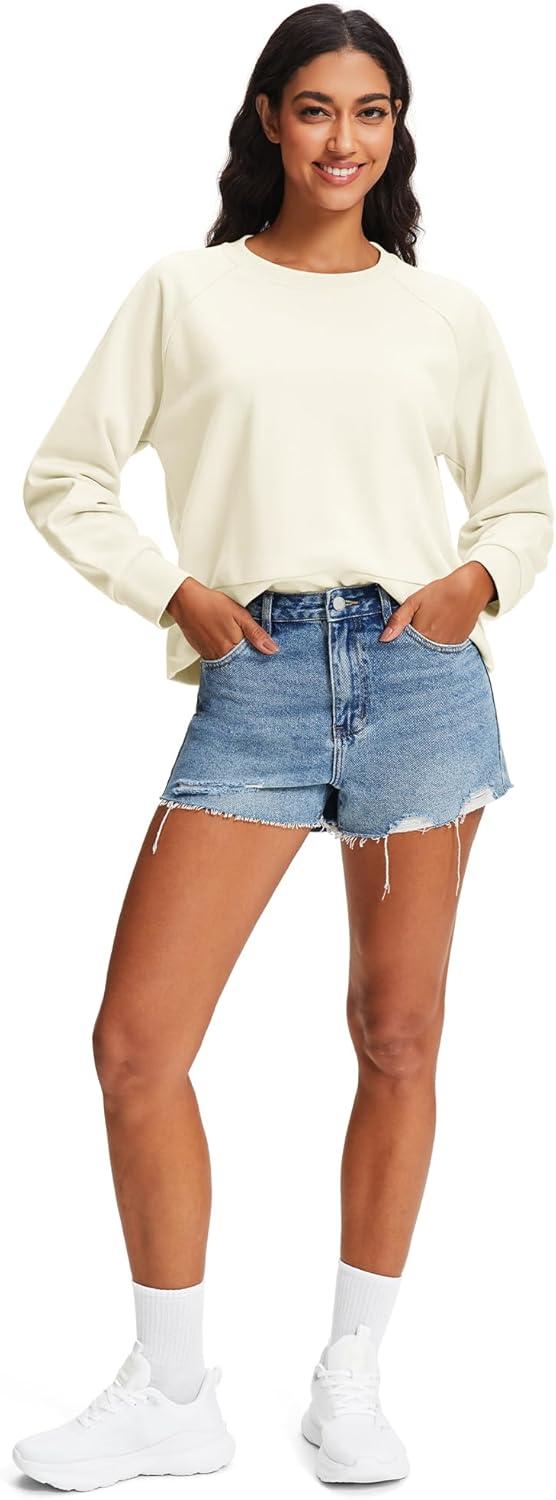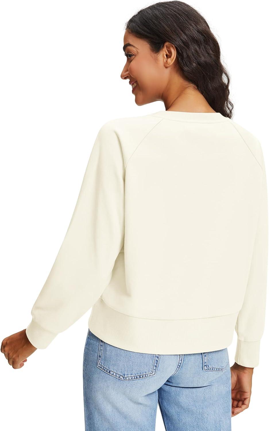 Stelle Cropped Sweatshirts for Women Cotton Raglan Sleeve Crop Tops Crewneck Pullover Sweat Shirts(A-off White)