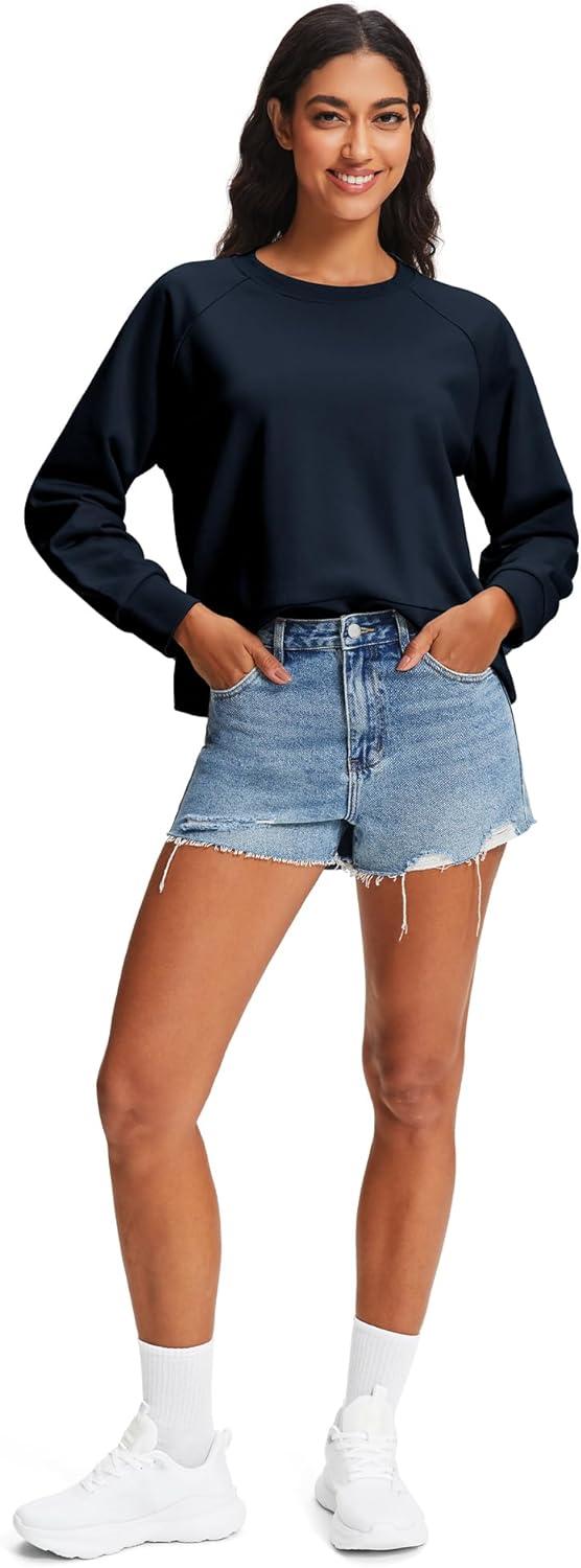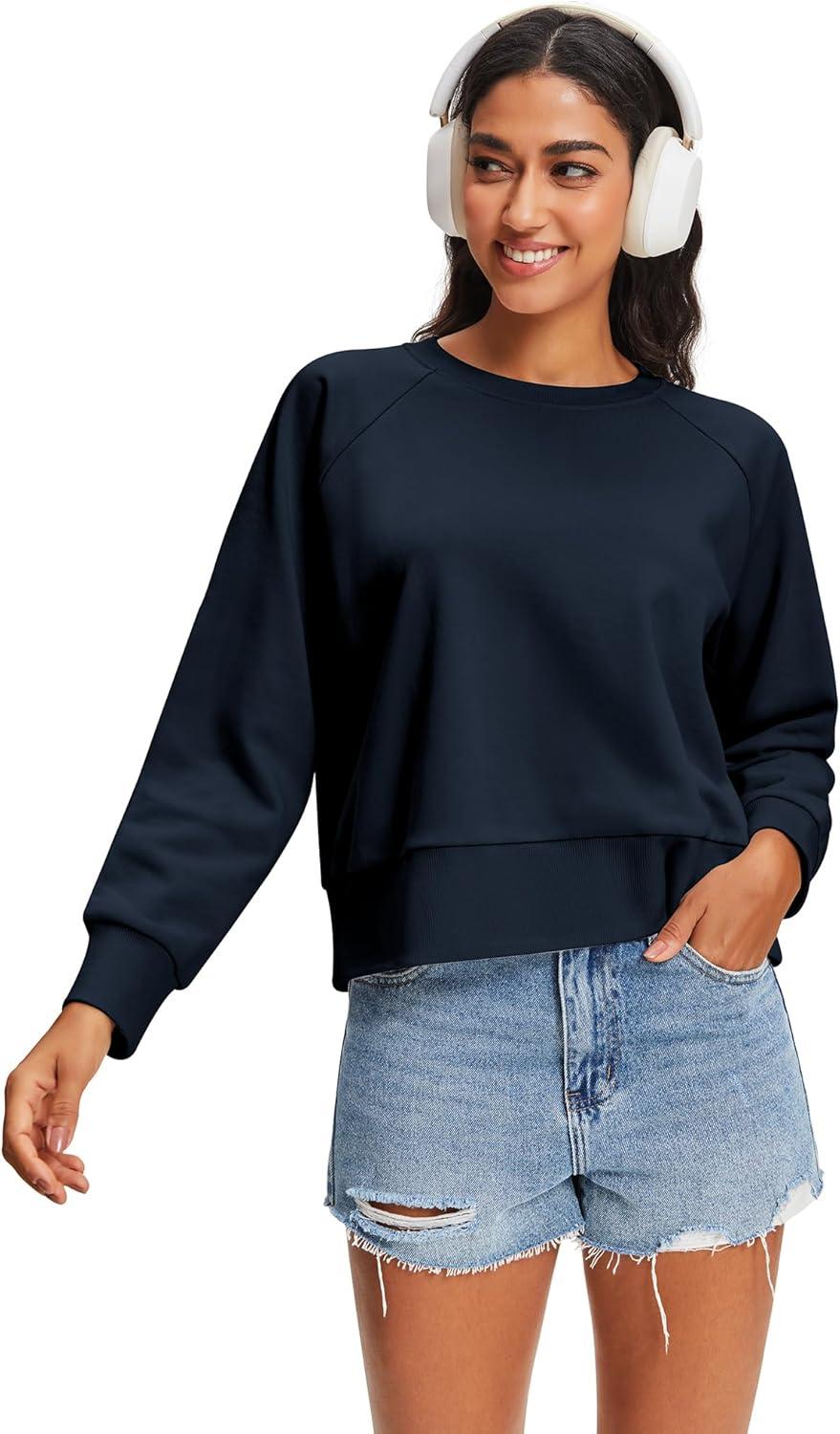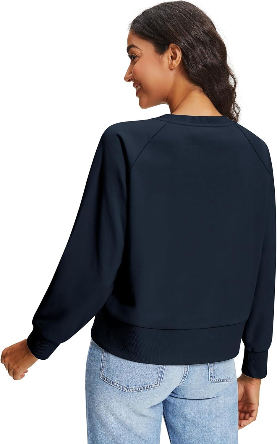 Stelle Cropped Sweatshirts for Women Cotton Raglan Sleeve Crop Tops Crewneck Pullover Sweat Shirts(Navy)