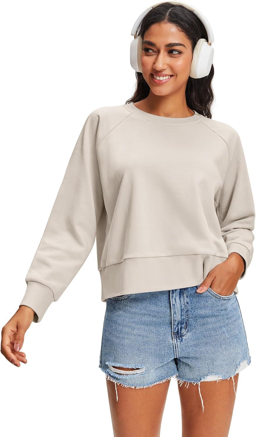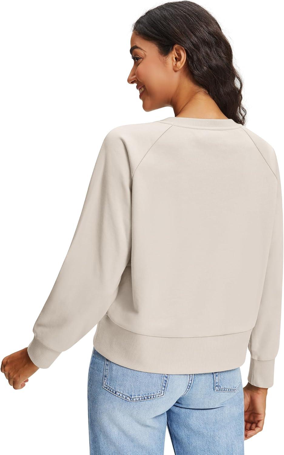 Stelle Cropped Sweatshirts for Women Cotton Raglan Sleeve Crop Tops Crewneck Pullover Sweat Shirts(Oat Milk)