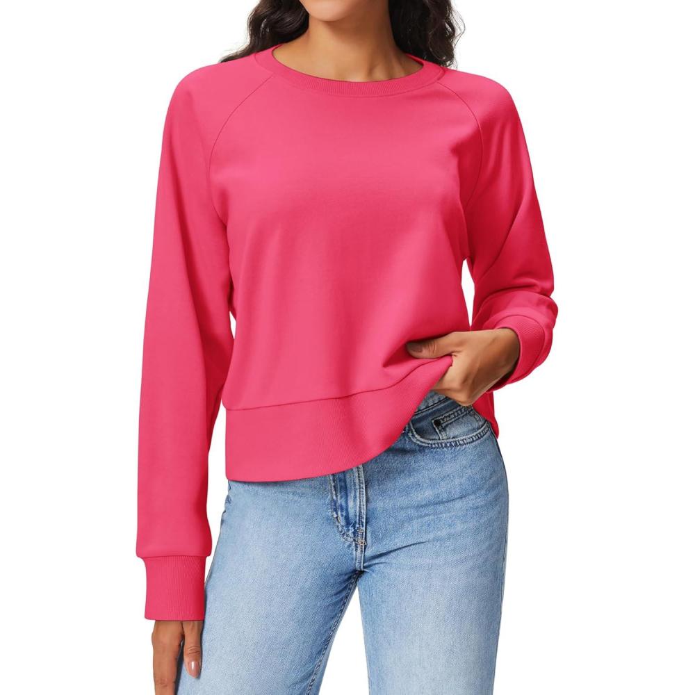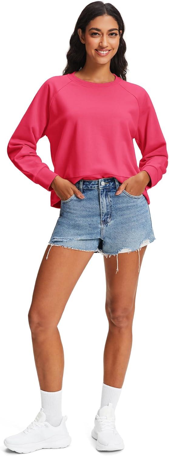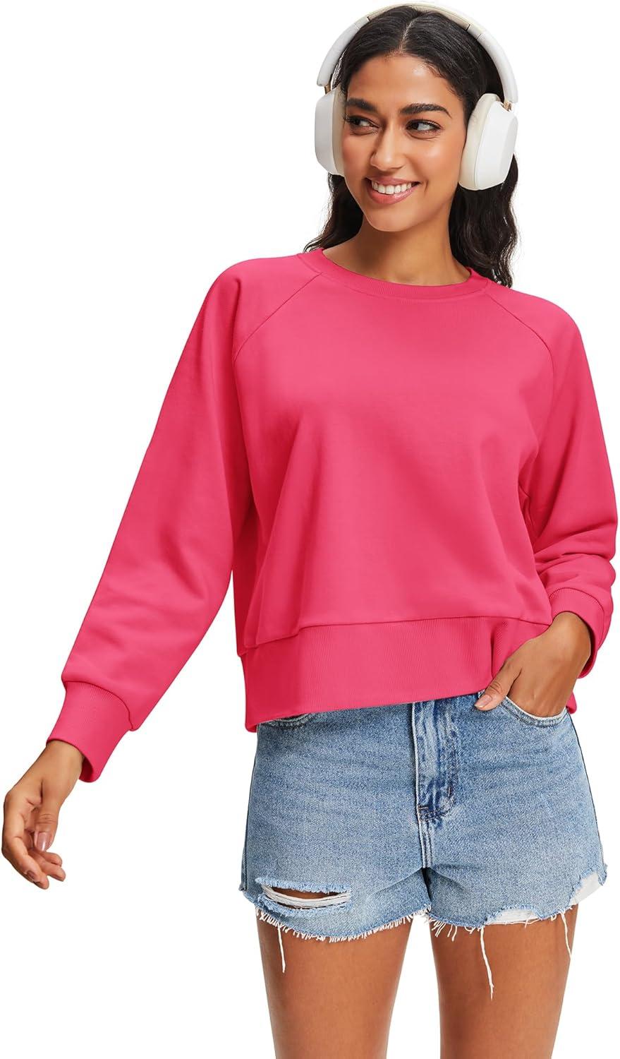 Stelle Cropped Sweatshirts for Women Cotton Raglan Sleeve Crop Tops Crewneck Pullover Sweat Shirts(Watermelon Sugar)