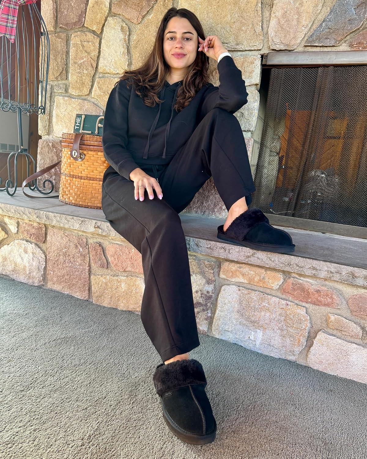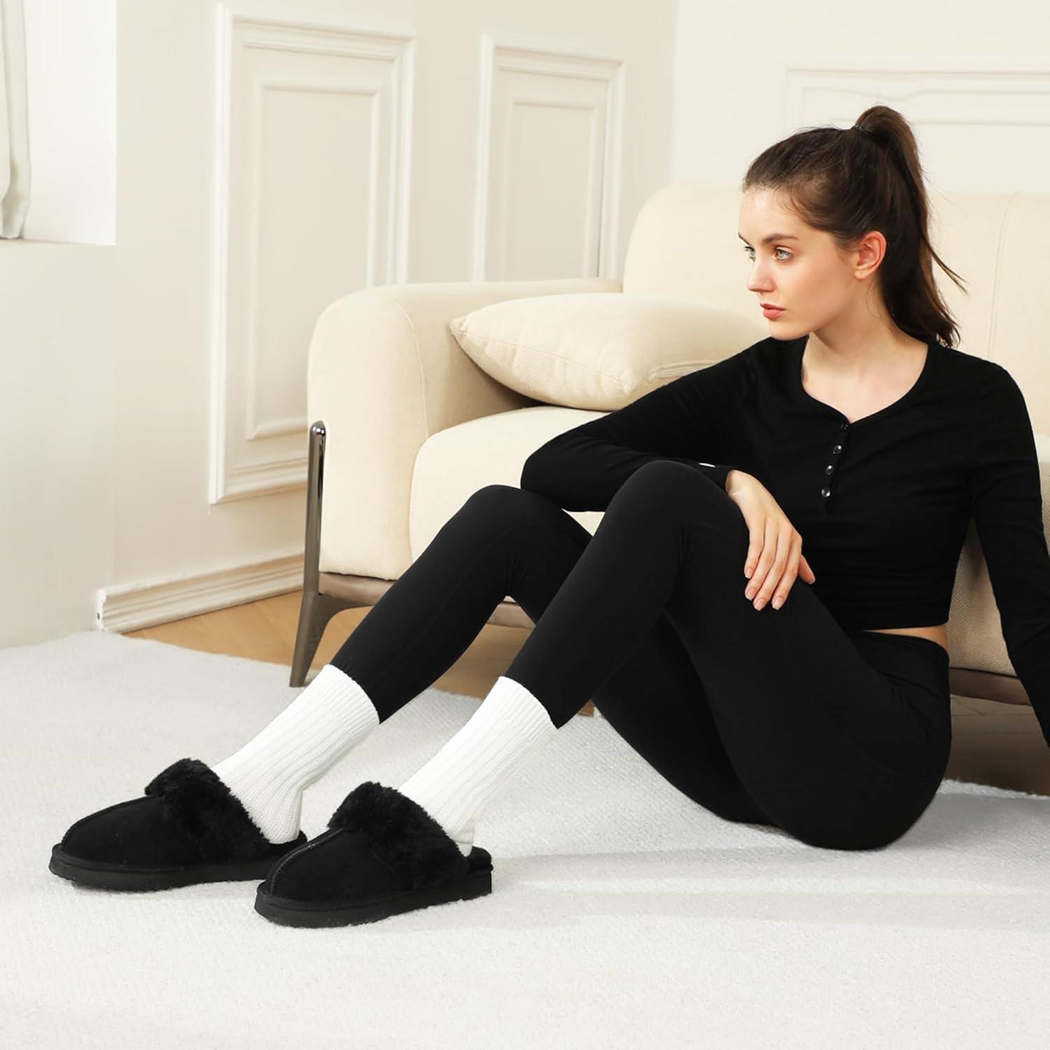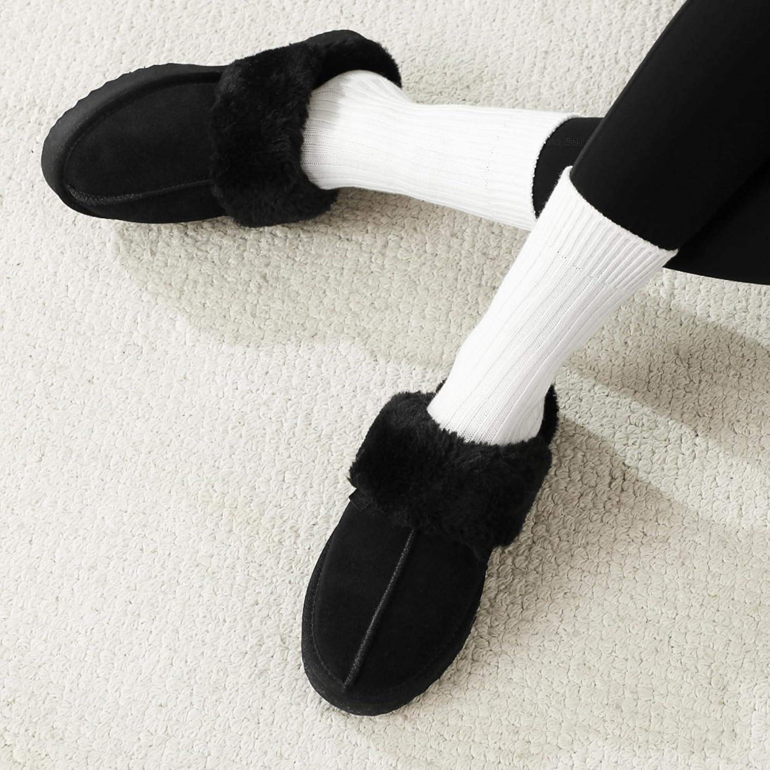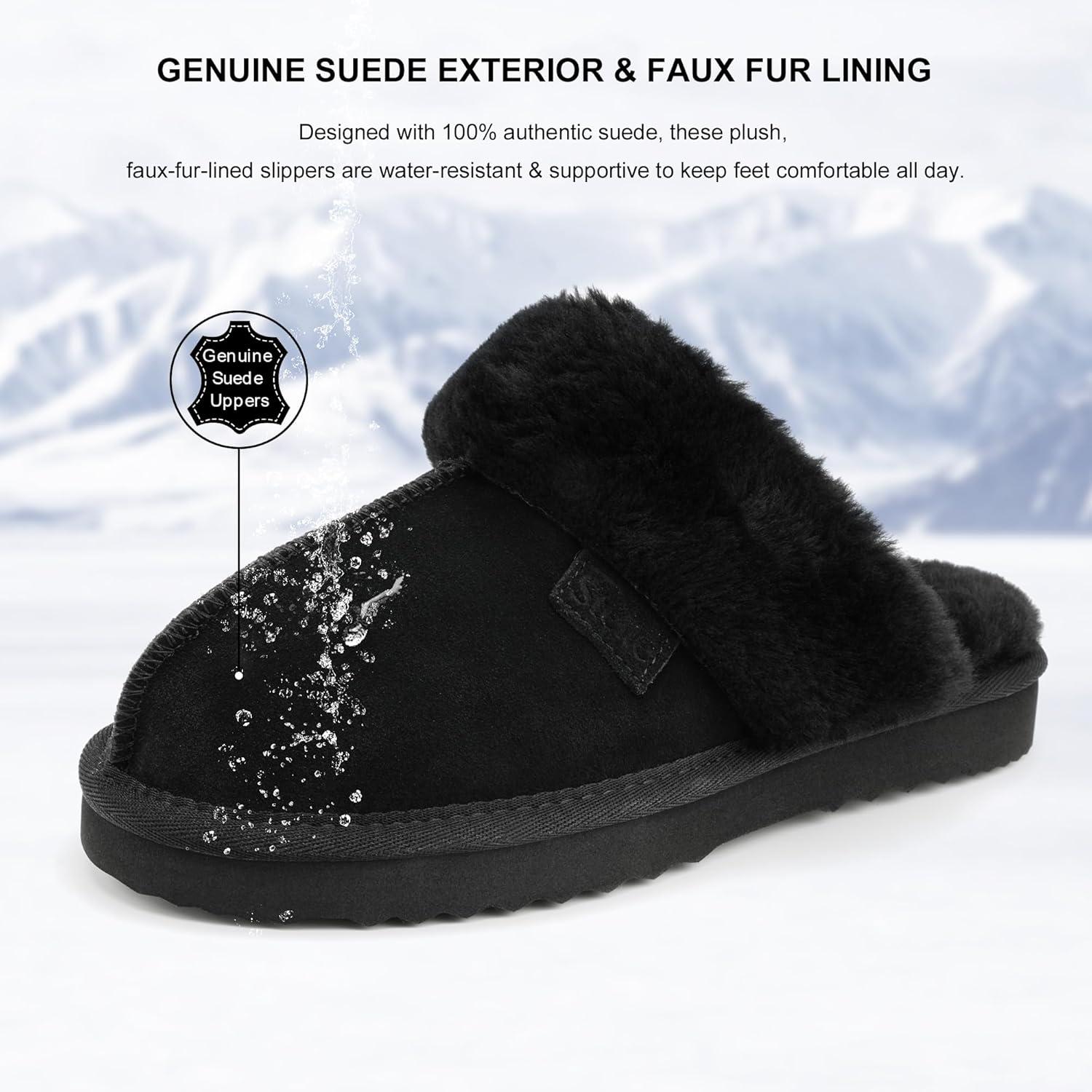 Stelle Genuine Suede Slippers for Women Water-Resistant Indoor Outdoor Comfortable Memory Foam Lightweight Flexible Sole(Black)