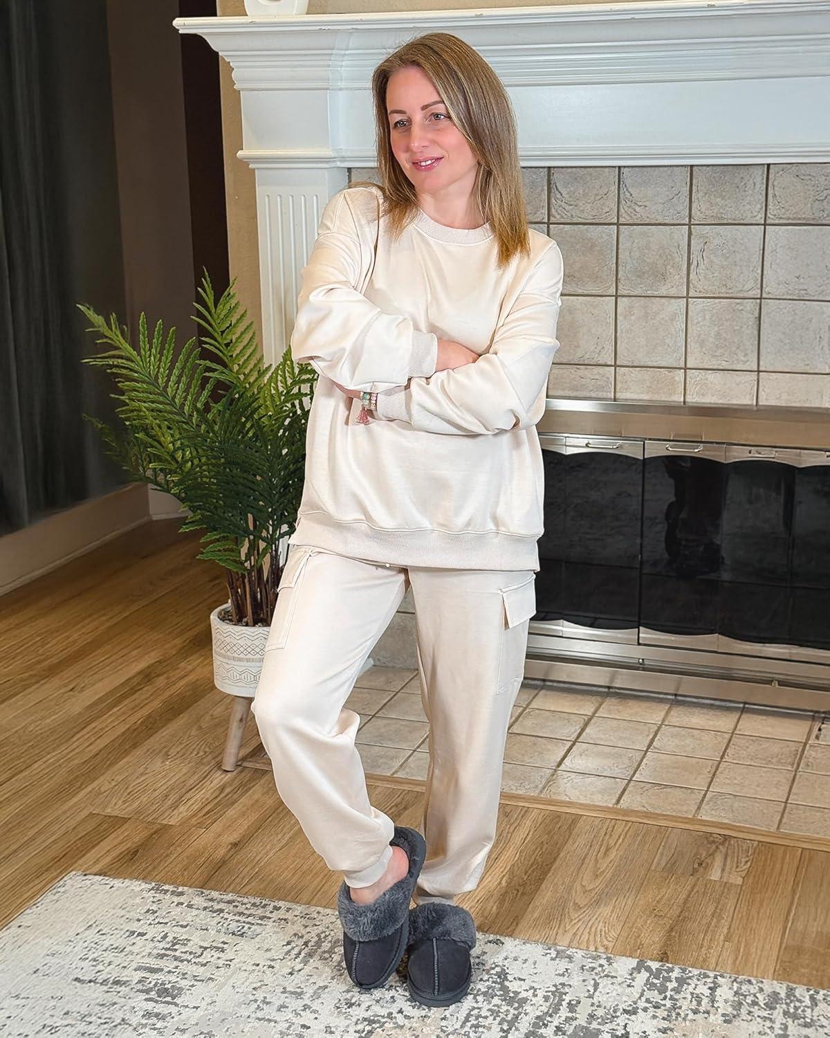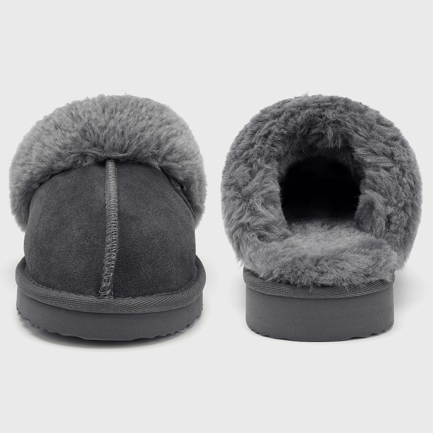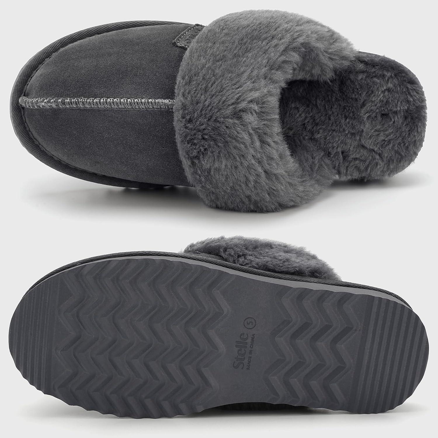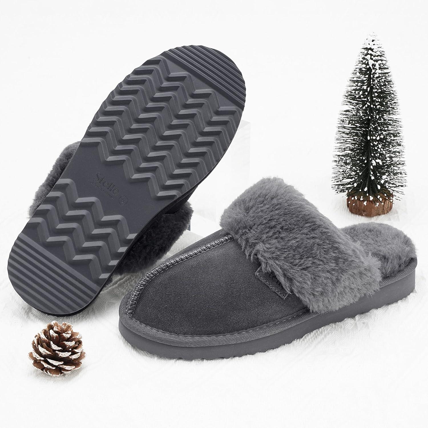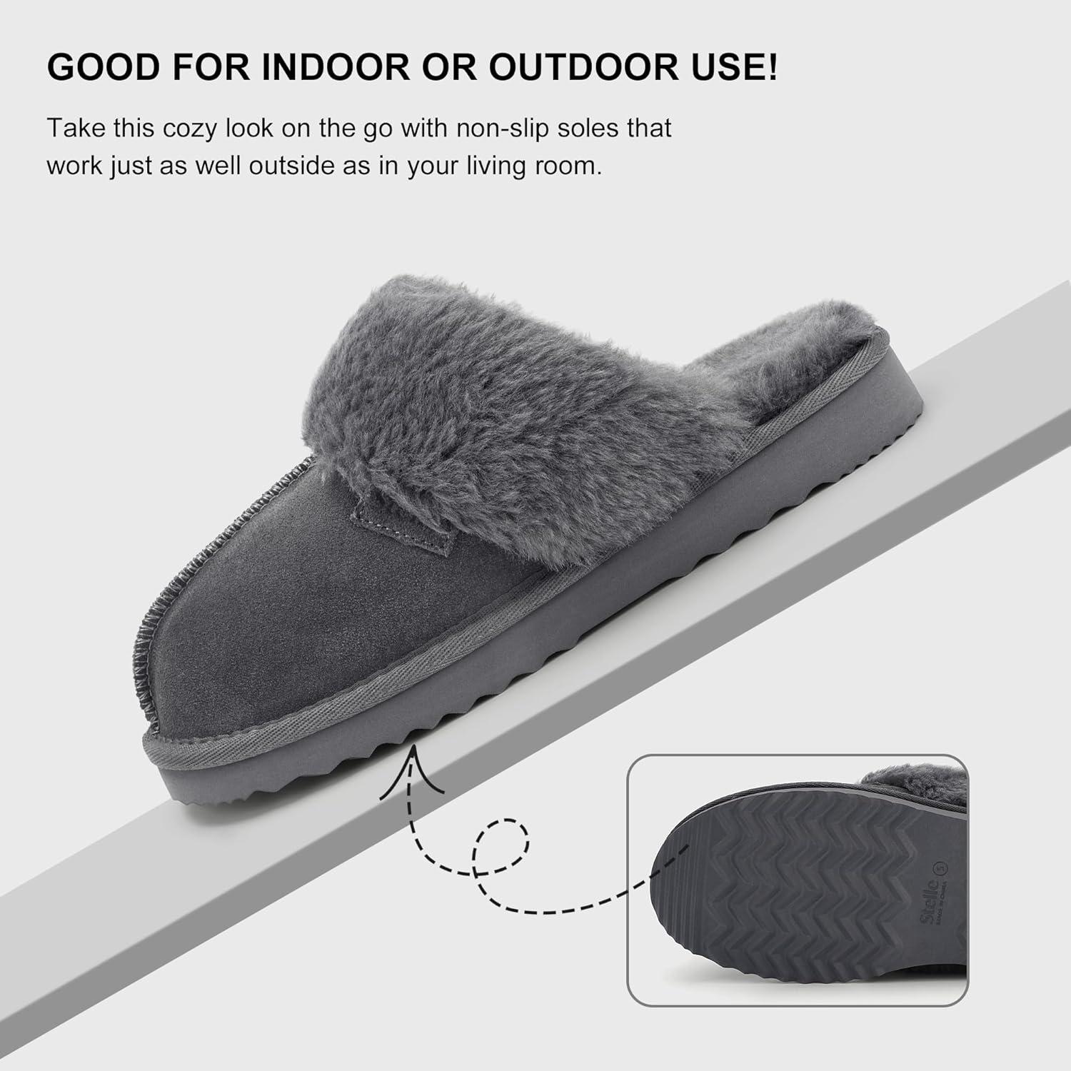 Stelle Genuine Suede Slippers for Women Water-Resistant Indoor Outdoor Comfortable Memory Foam Lightweight Flexible Sole(Grey)