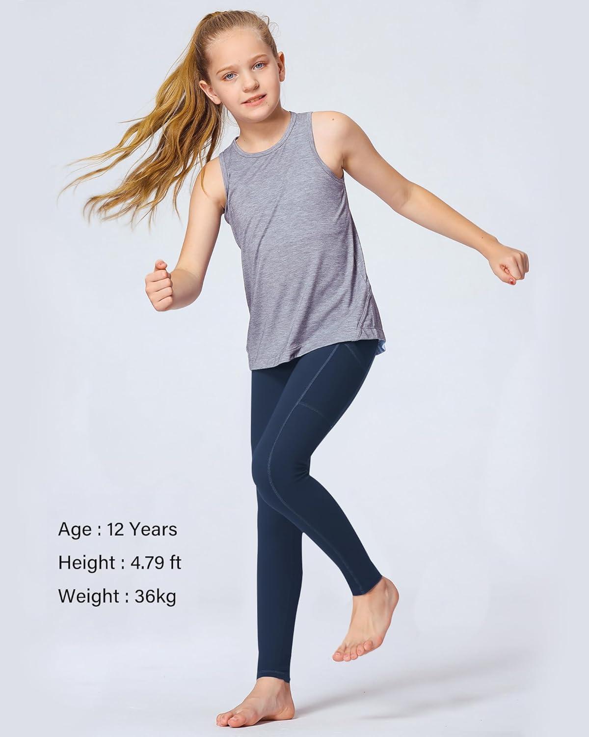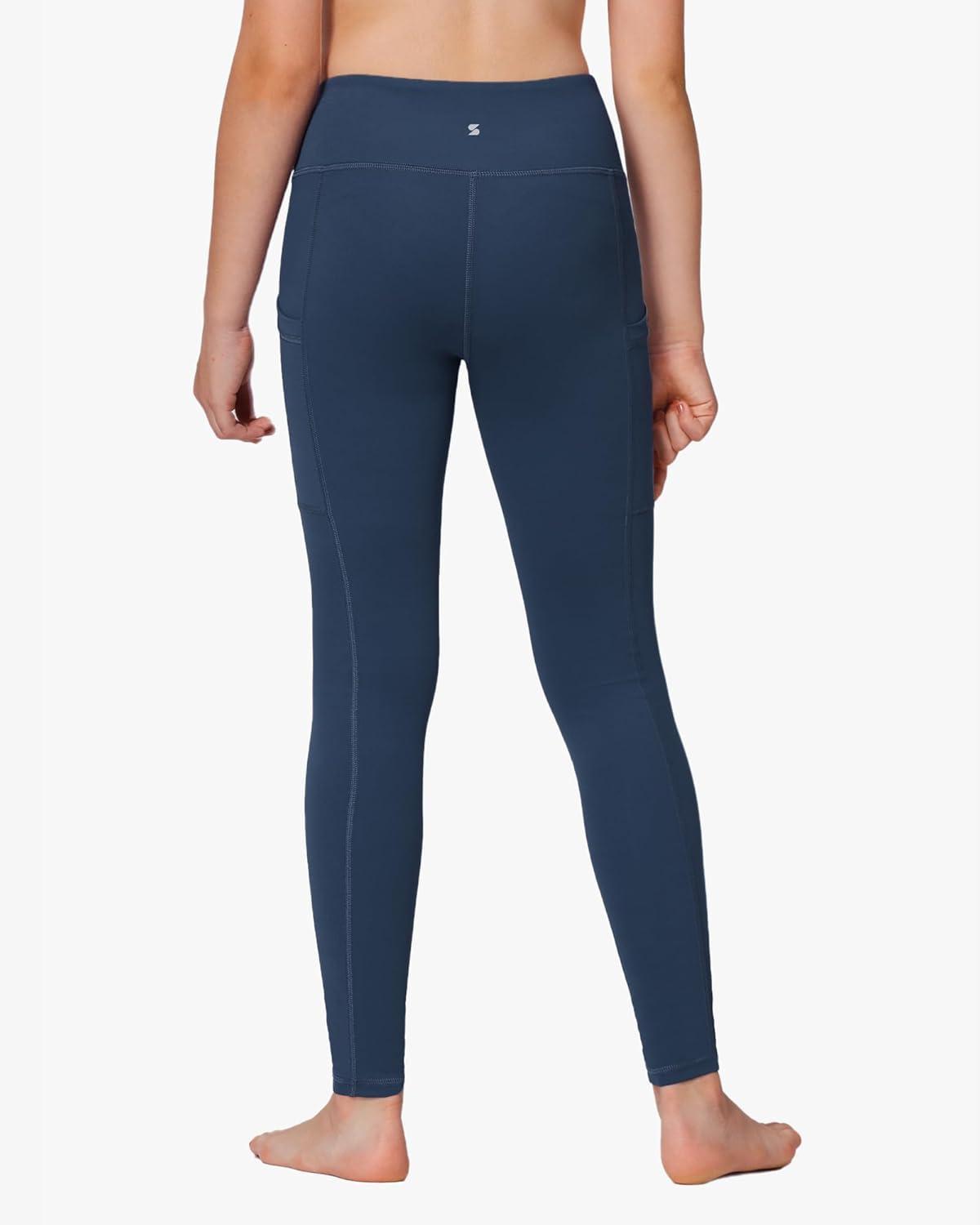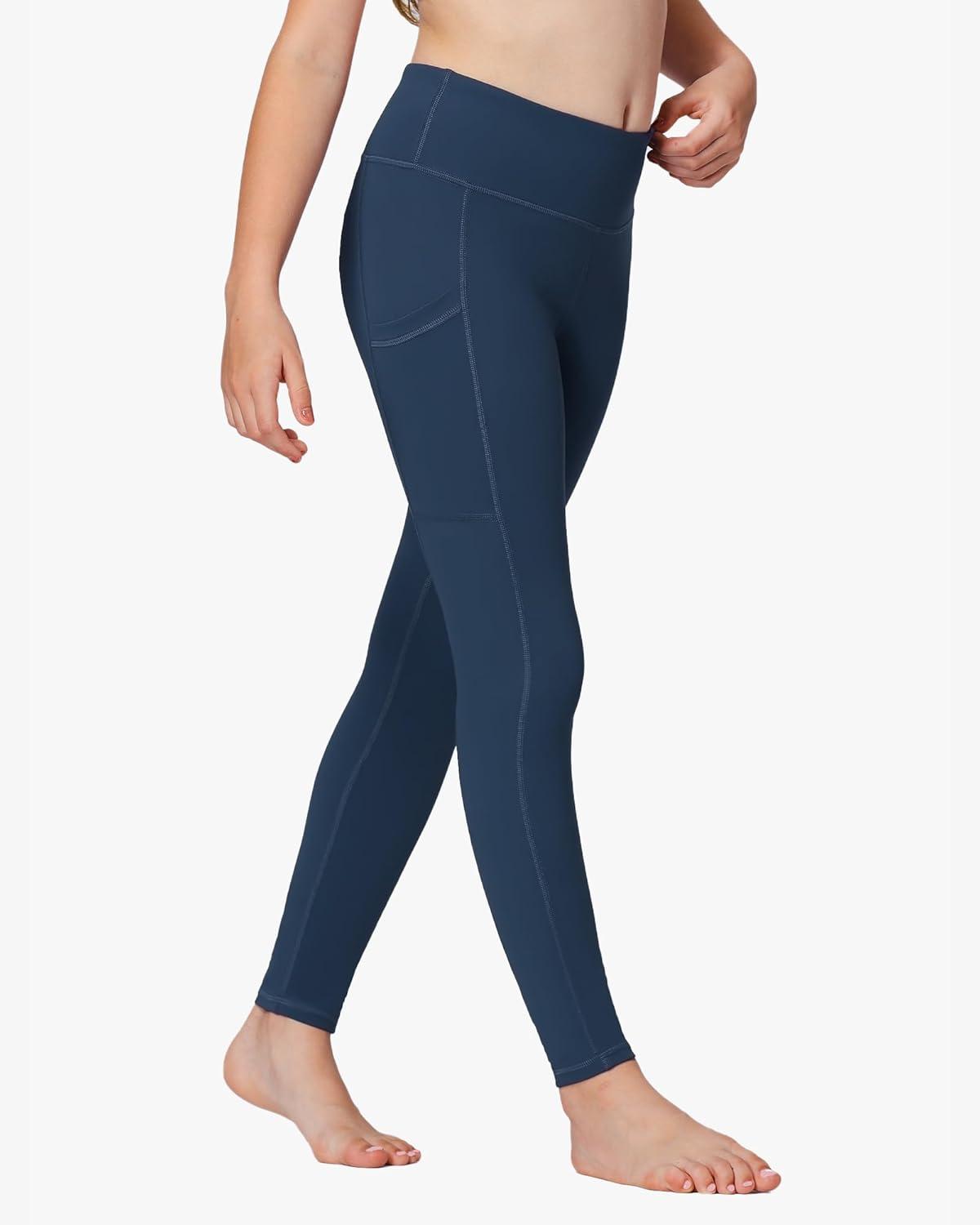 Stelle Girls’ Athletic Leggings Kids Dance Running Yoga Pants Workout Active Dance Tights with Pockets(Dark Navy)