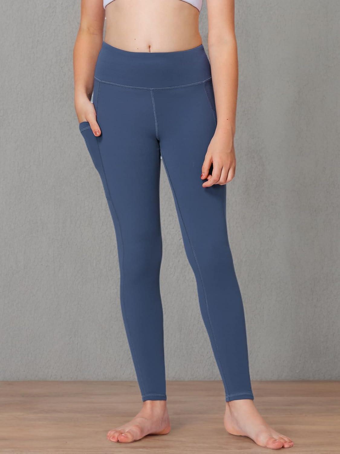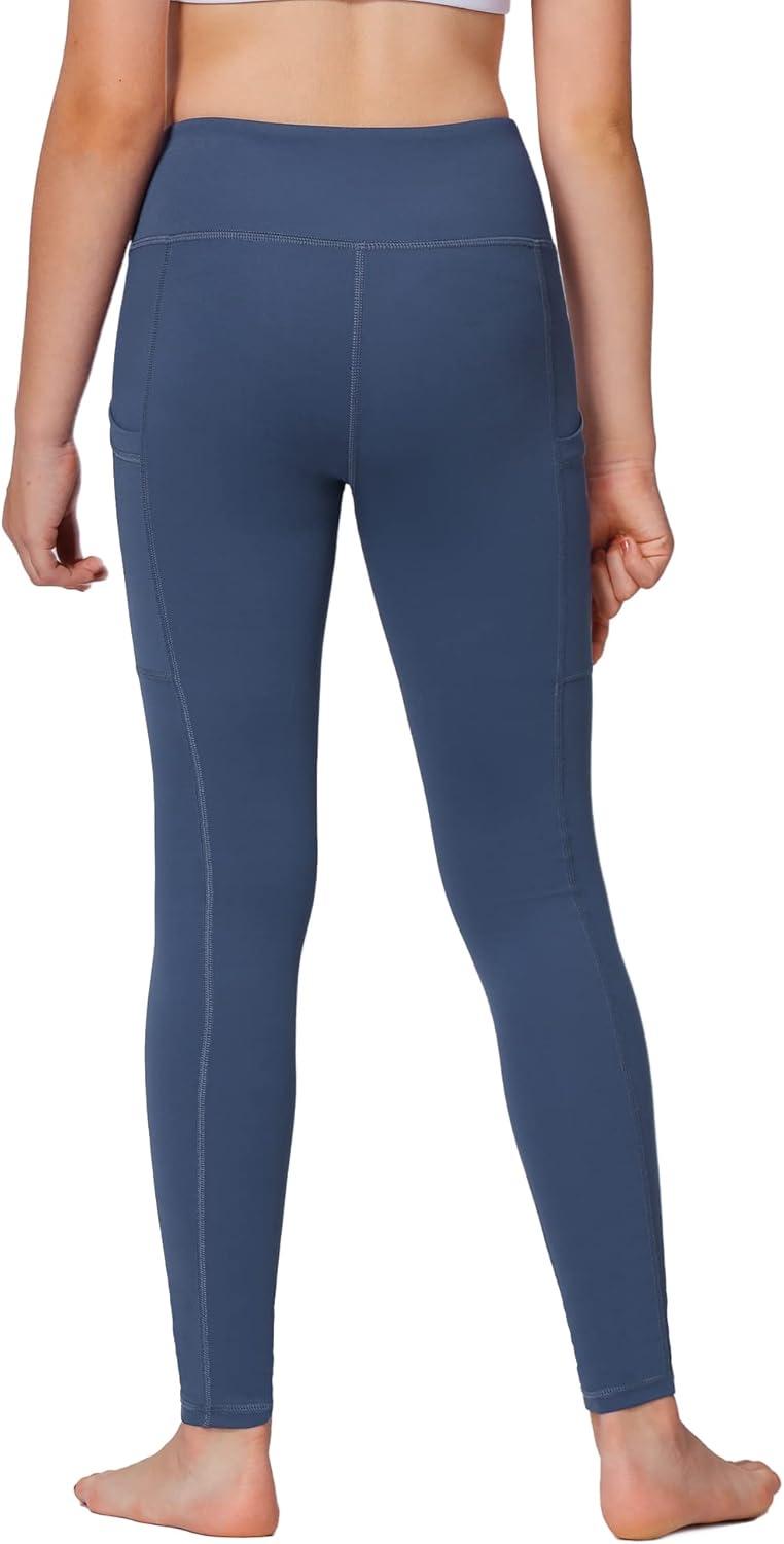 Stelle Girls’ Athletic Leggings Kids Dance Running Yoga Pants Workout Active Dance Tights with Pockets(Dark Slate Blue (2 Side Pocket))