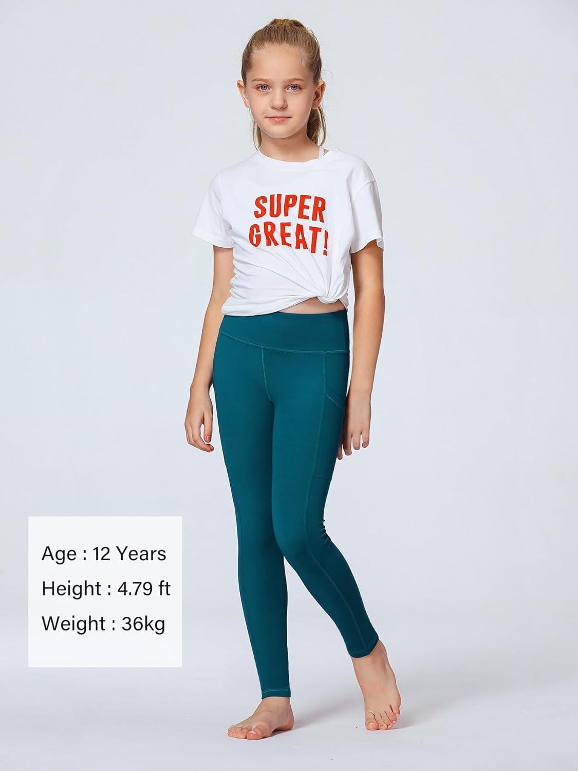 Stelle Girls’ Athletic Leggings Kids Dance Running Yoga Pants Workout Active Dance Tights with Pockets(Dark Teal)