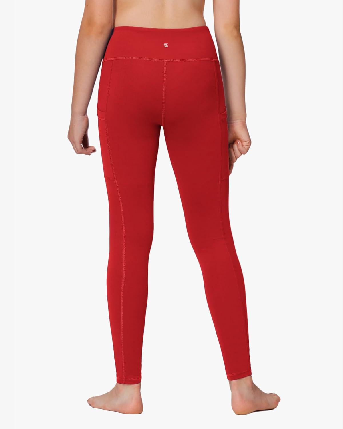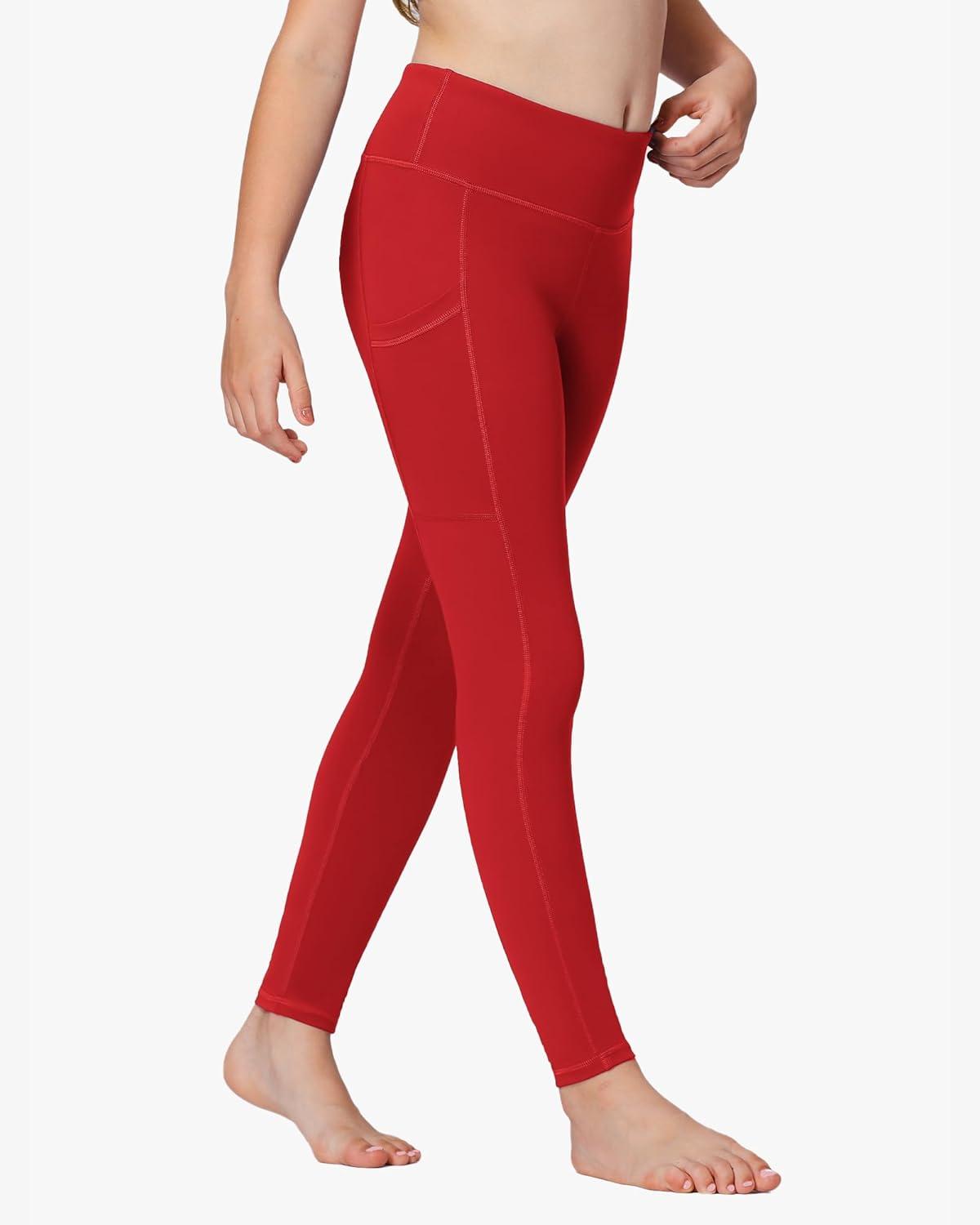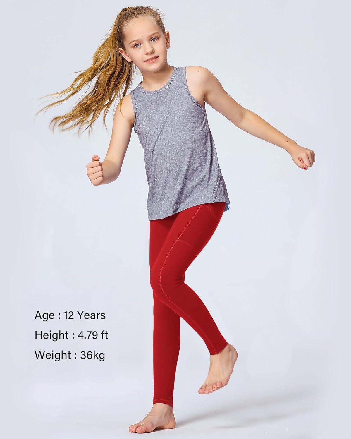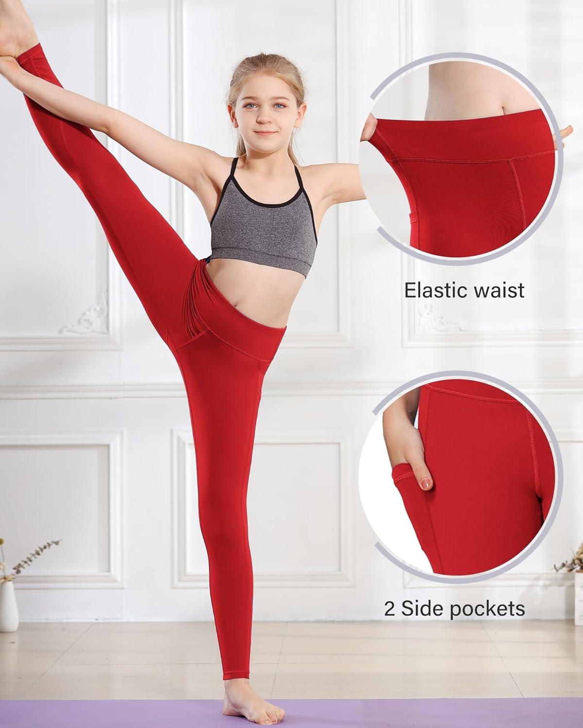 Stelle Girls’ Athletic Leggings Kids Dance Running Yoga Pants Workout Active Dance Tights with Pockets(Red)
