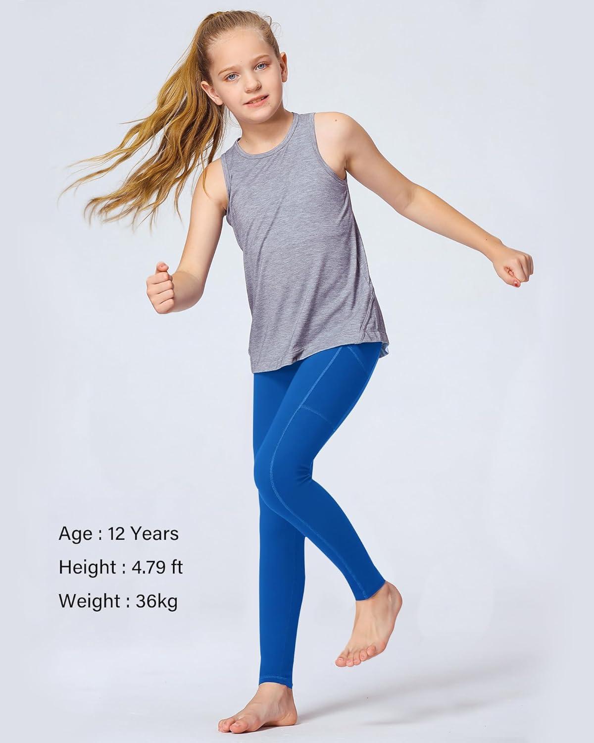 Stelle Girls’ Athletic Leggings Kids Dance Running Yoga Pants Workout Active Dance Tights with Pockets(Sapphire)