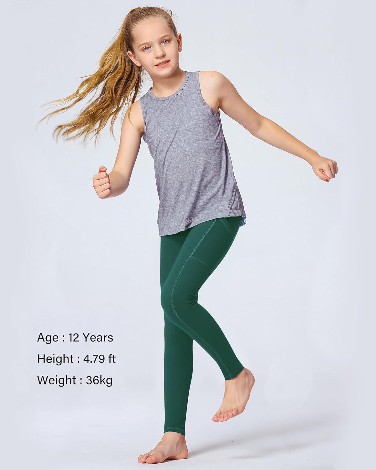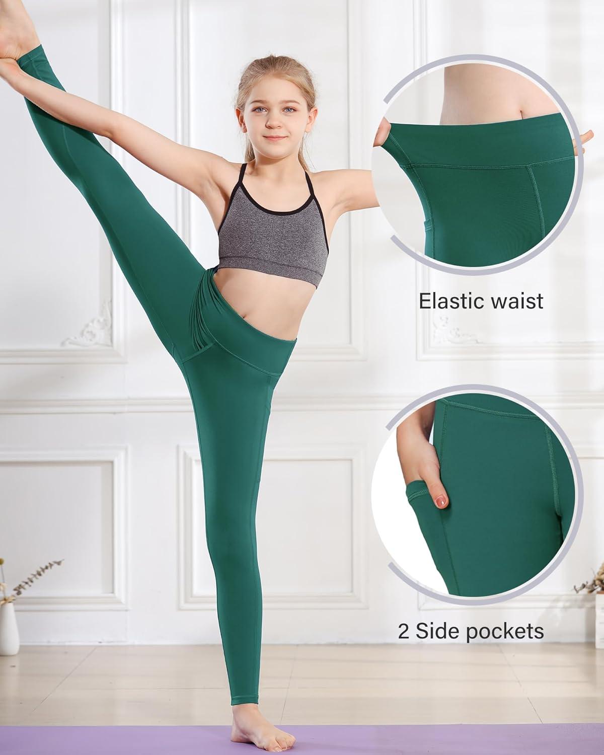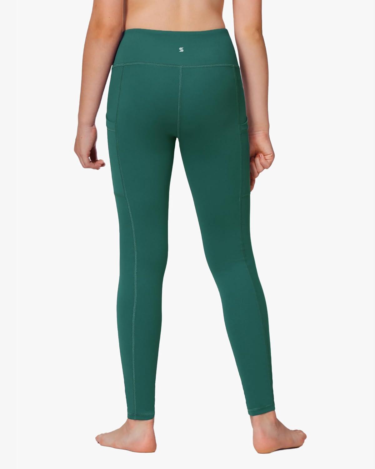 Stelle Girls’ Athletic Leggings Kids Dance Running Yoga Pants Workout Active Dance Tights with Pockets(Teal)