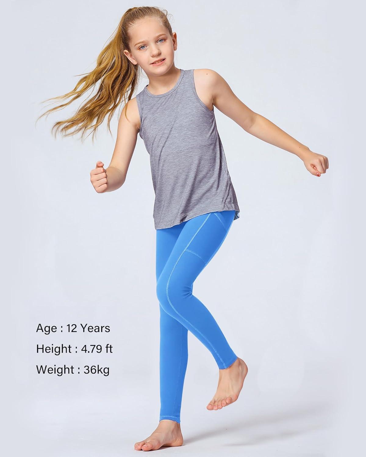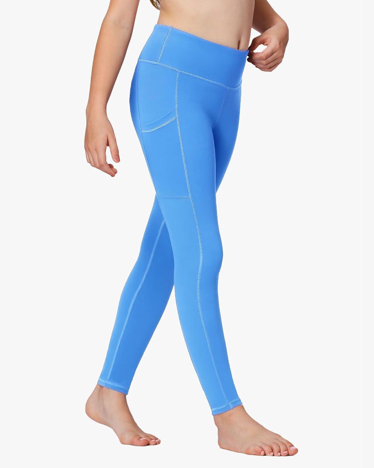 Stelle Girls’ Athletic Leggings Kids Dance Running Yoga Pants Workout Active Dance Tights with Pockets(Vibrant Blue)