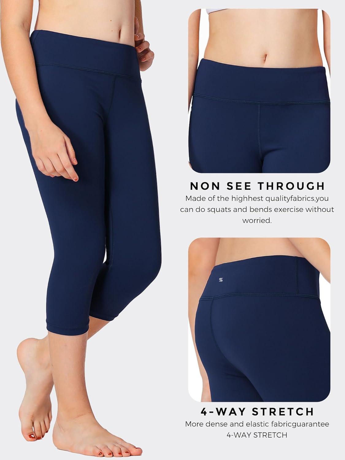 Stelle Girls Athletic Leggings Kids Dance Workout Running Yoga Pants with Hidden Pocket(Capri-navy)