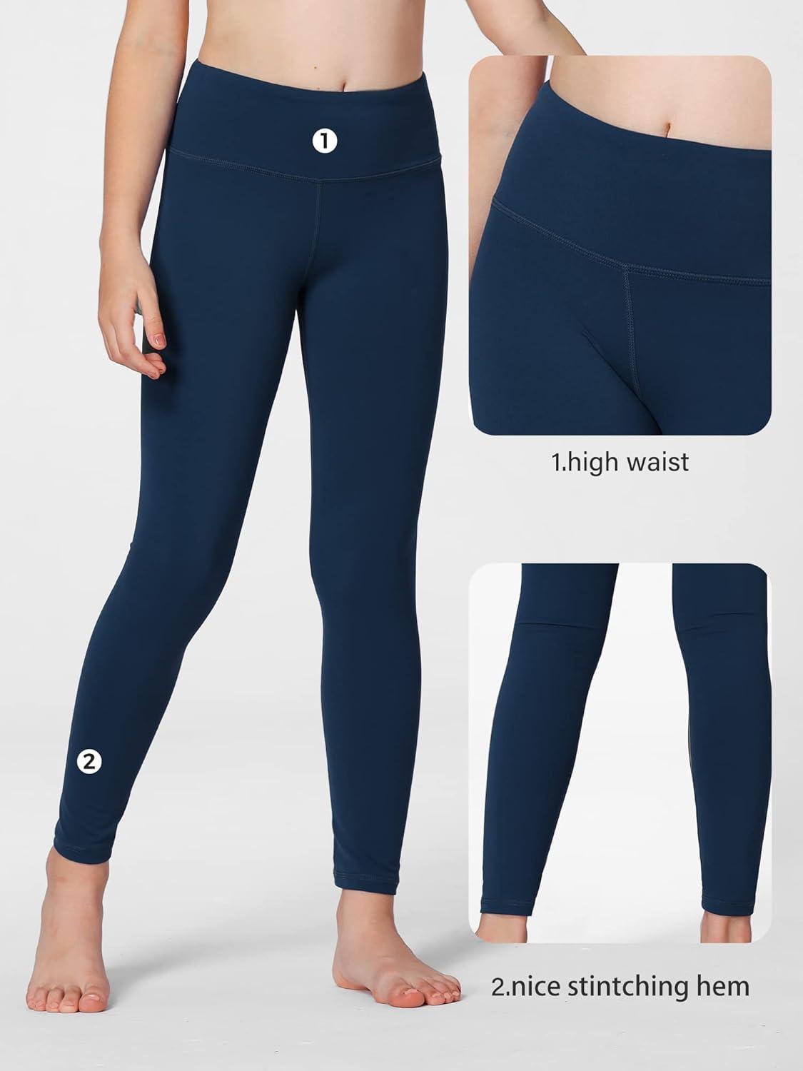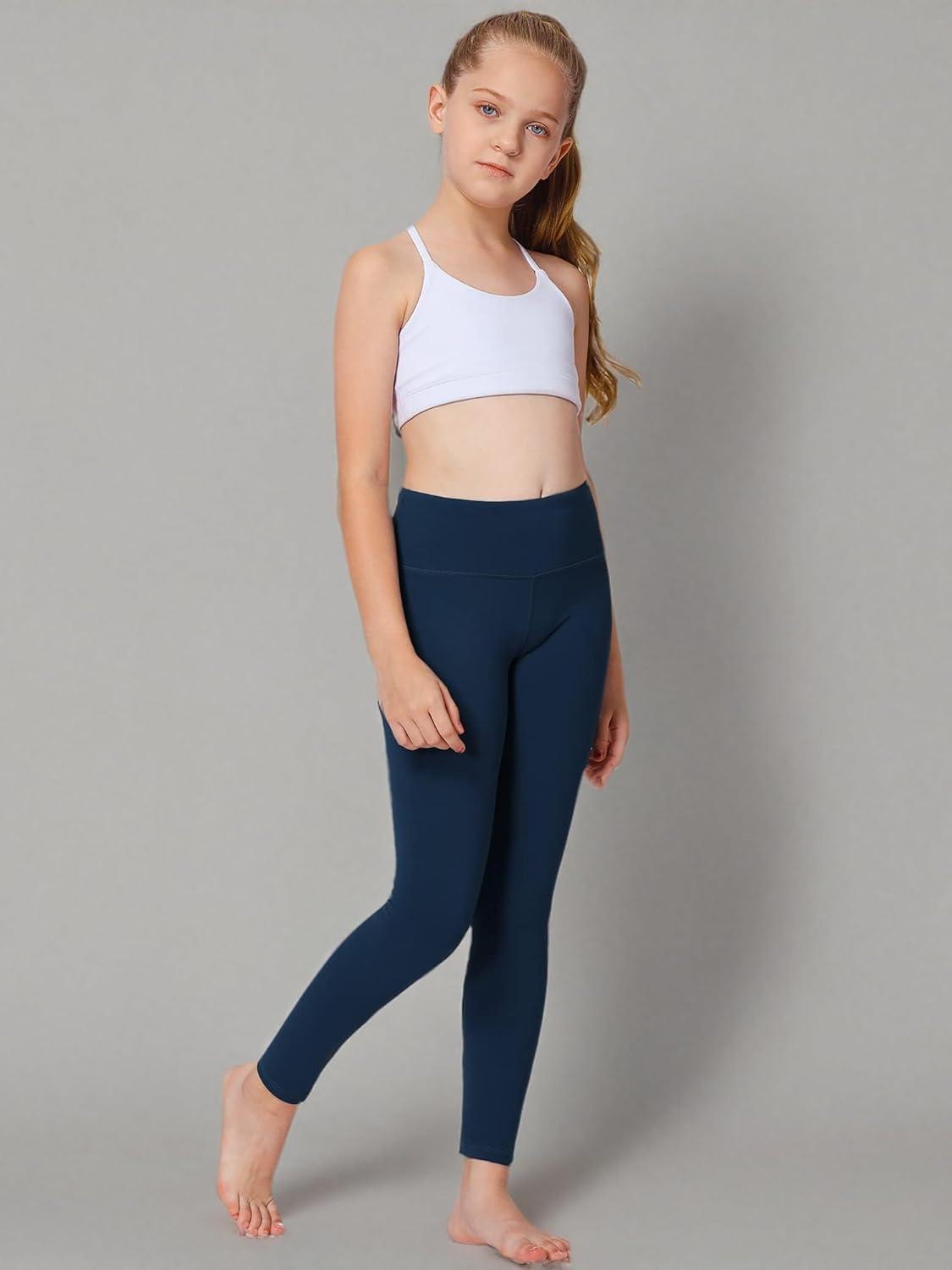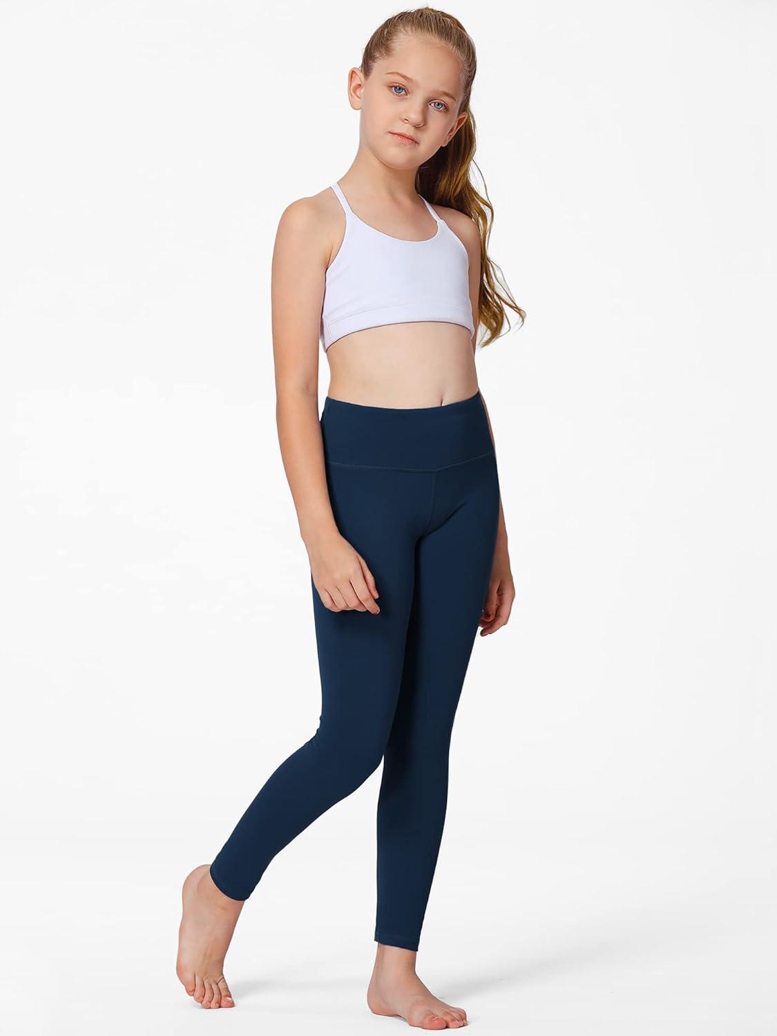 Stelle Girls Athletic Leggings Kids Dance Workout Running Yoga Pants with Hidden Pocket(Navy)