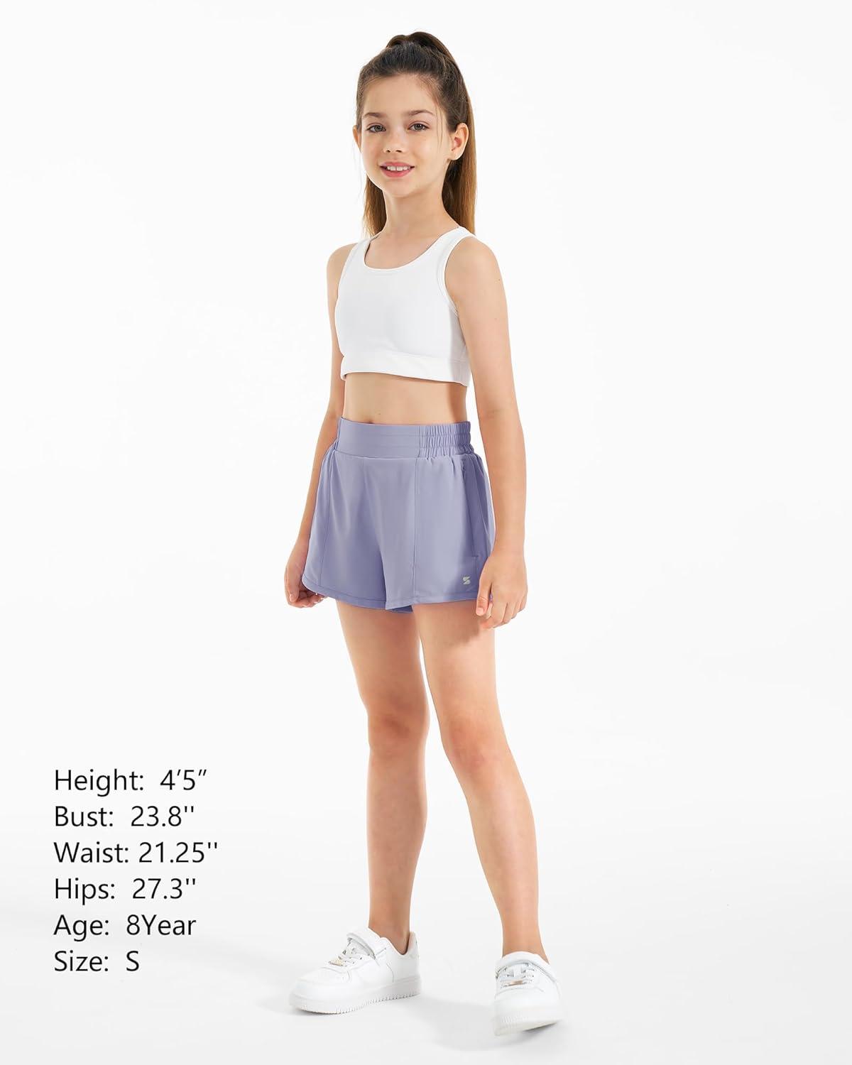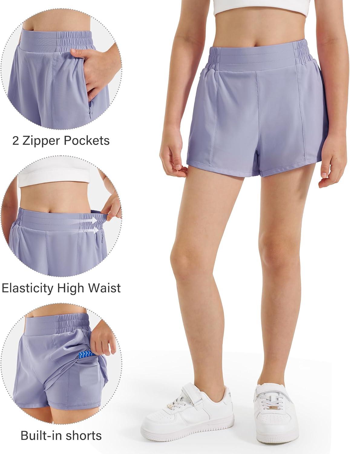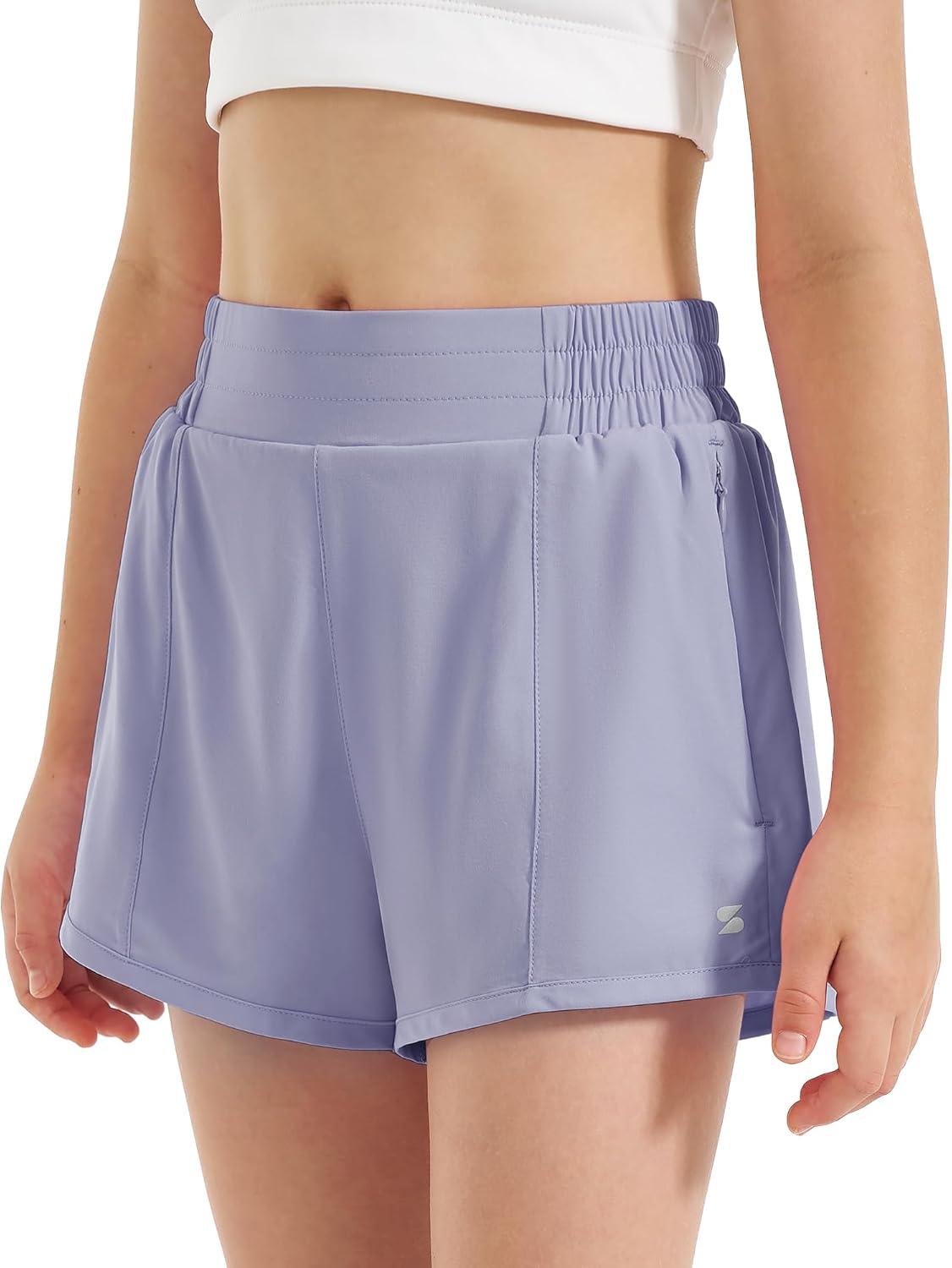 Stelle Girl’s Athletic Shorts with Liner Zipper Pockets Elastic Waist Running Shorts Sports Active Shorts for Teen Kids(Purple Haze)