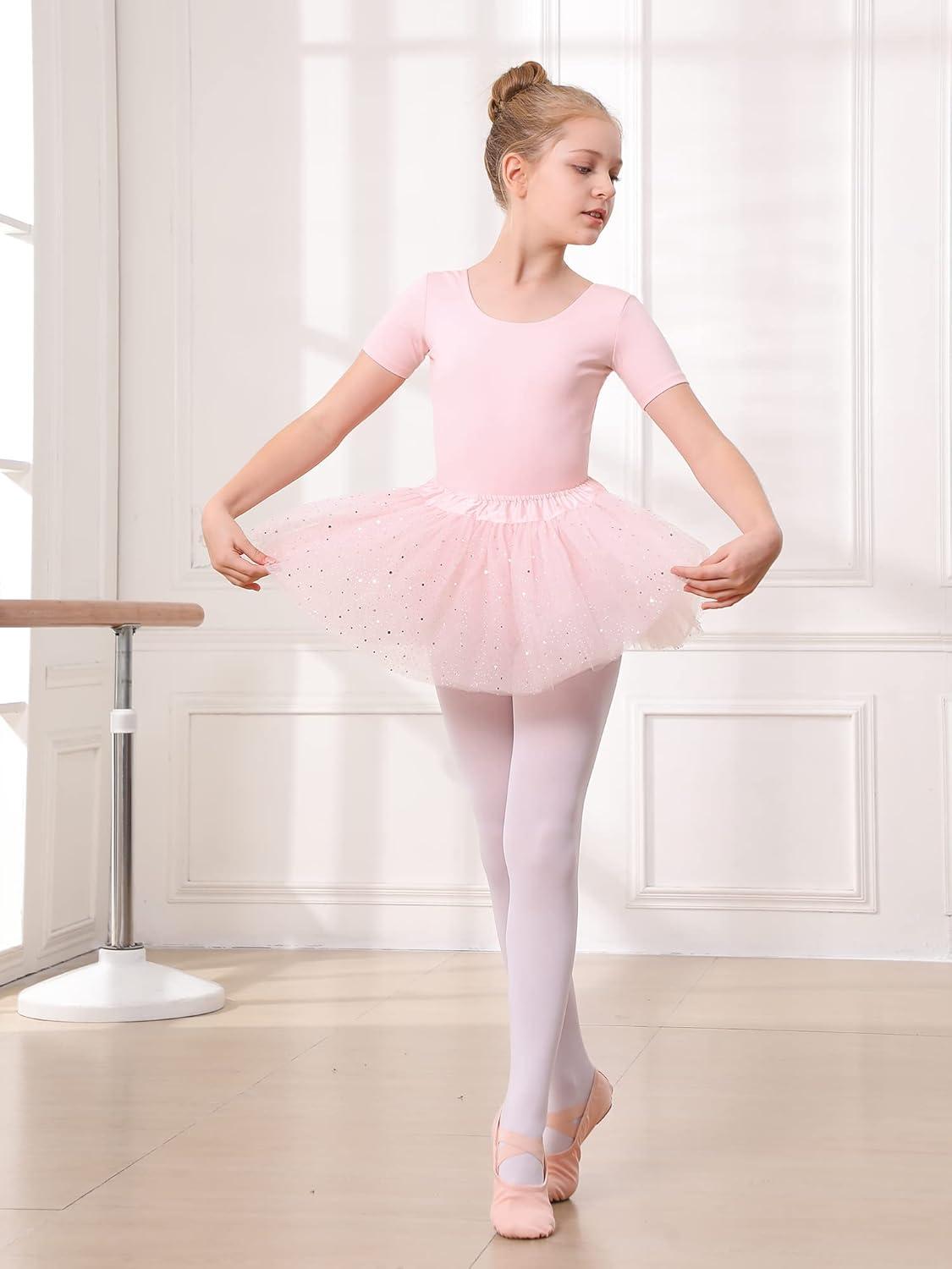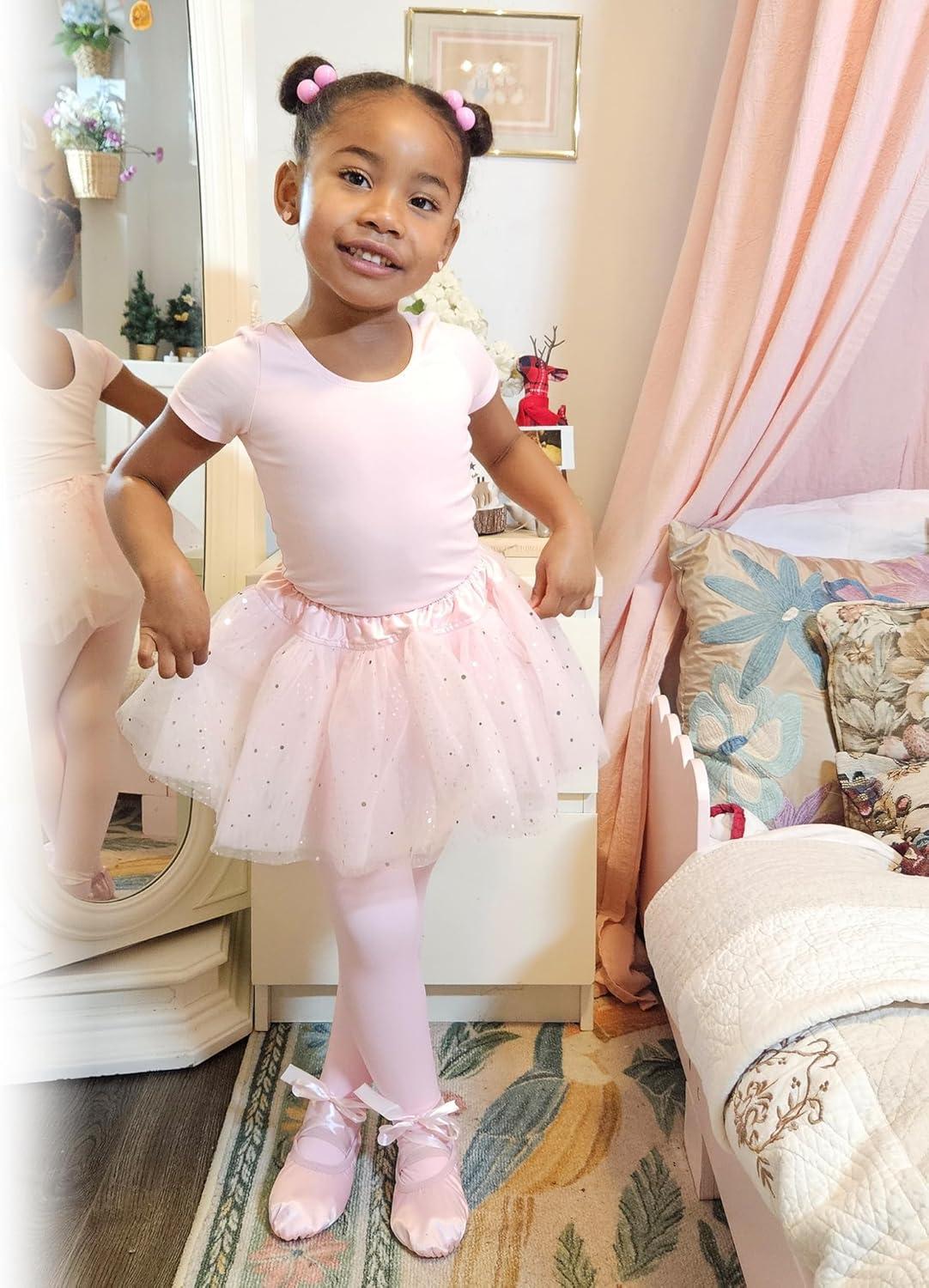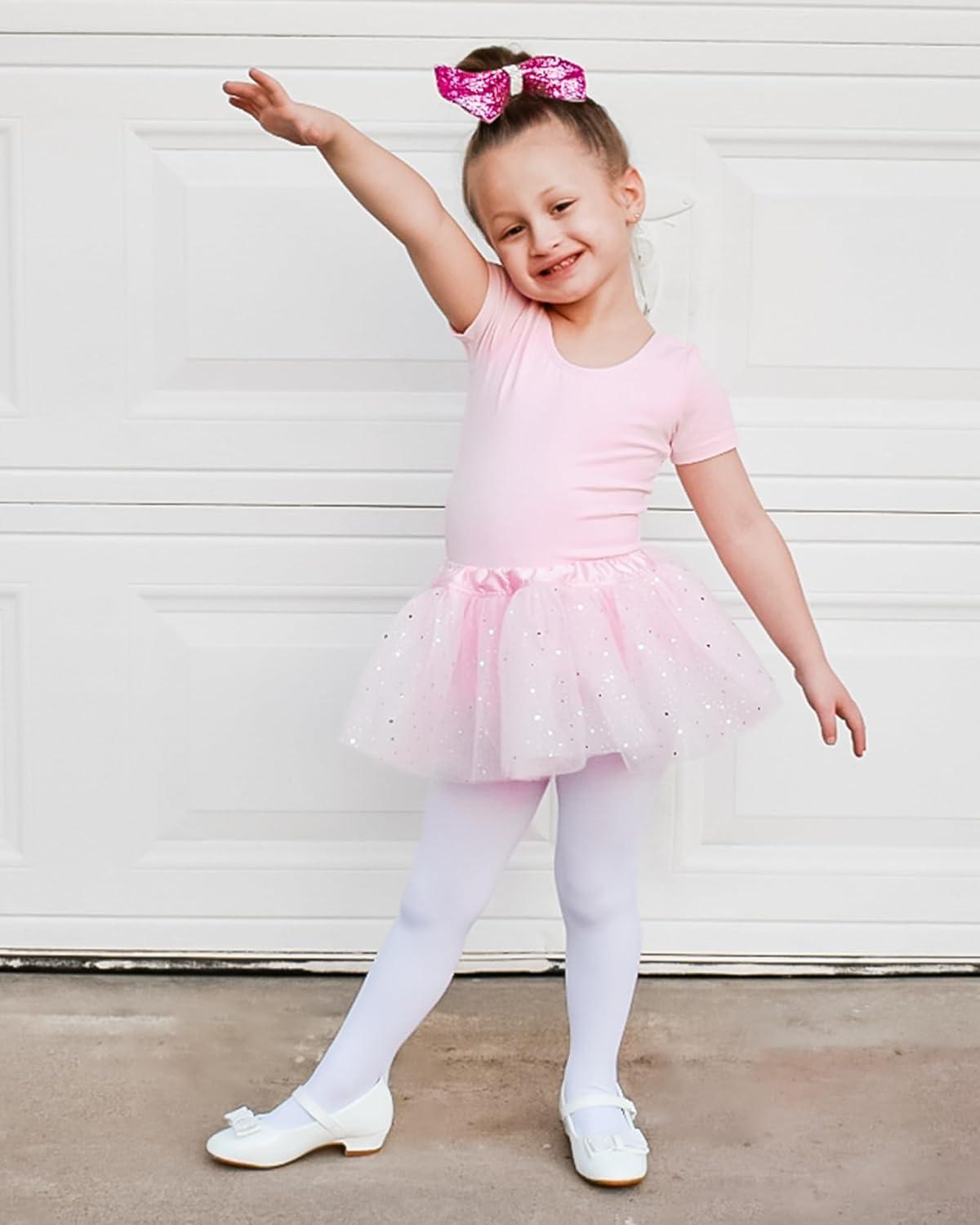 Stelle Girls Ballet Leotards Toddler Dance Outfit Combo with Pull on Skirt and Tights (Toddler/Little Kid/Big Kid)(02-ballet Pink (Shiny Tutu Skirt))