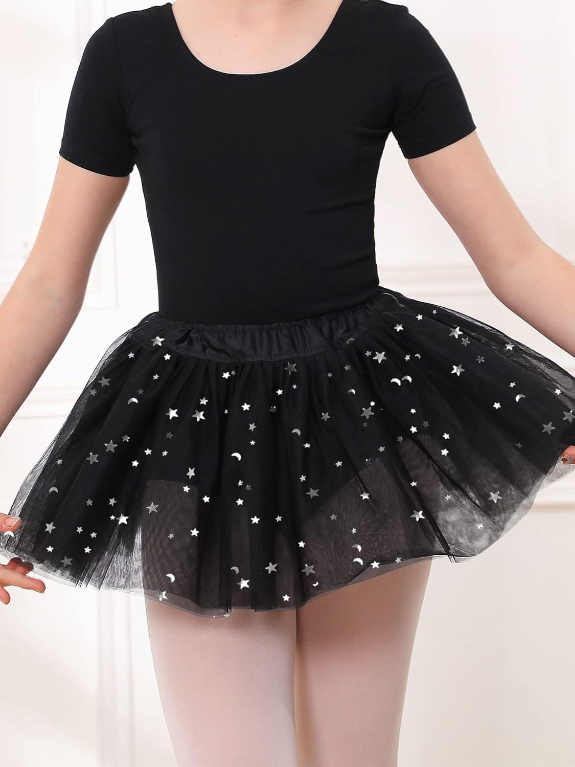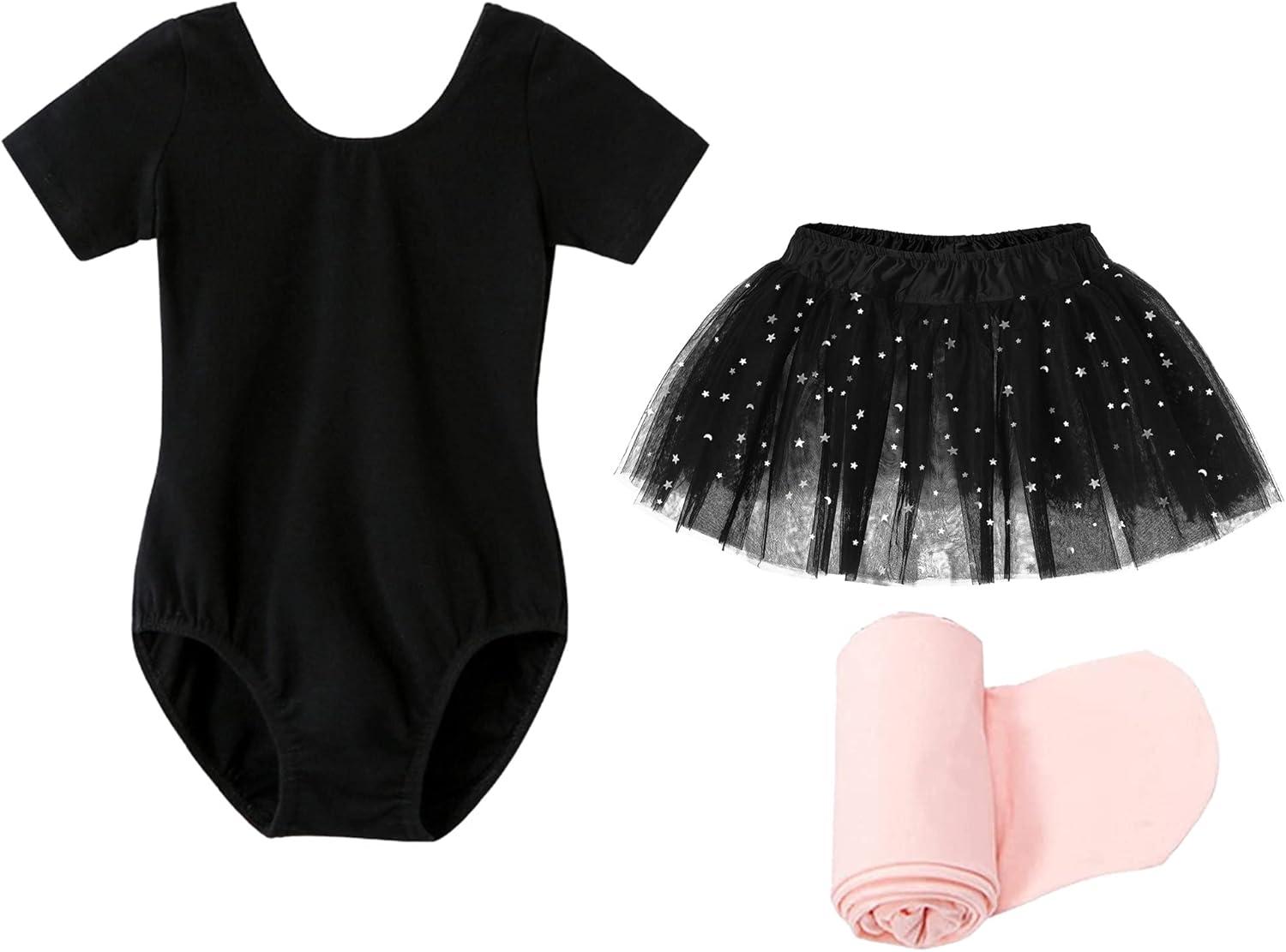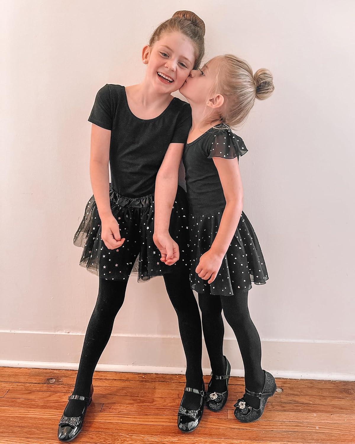 Stelle Girls Ballet Leotards Toddler Dance Outfit Combo with Pull on Skirt and Tights (Toddler/Little Kid/Big Kid)(02-black (Shiny Tutu Skirt))