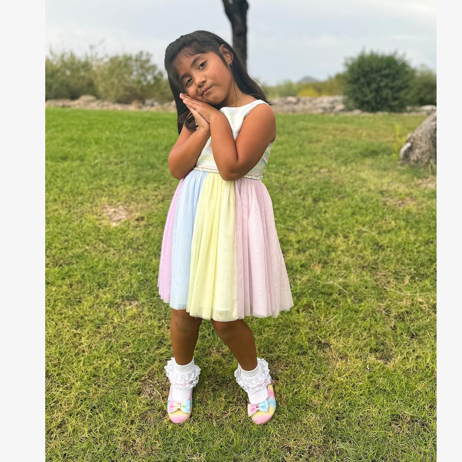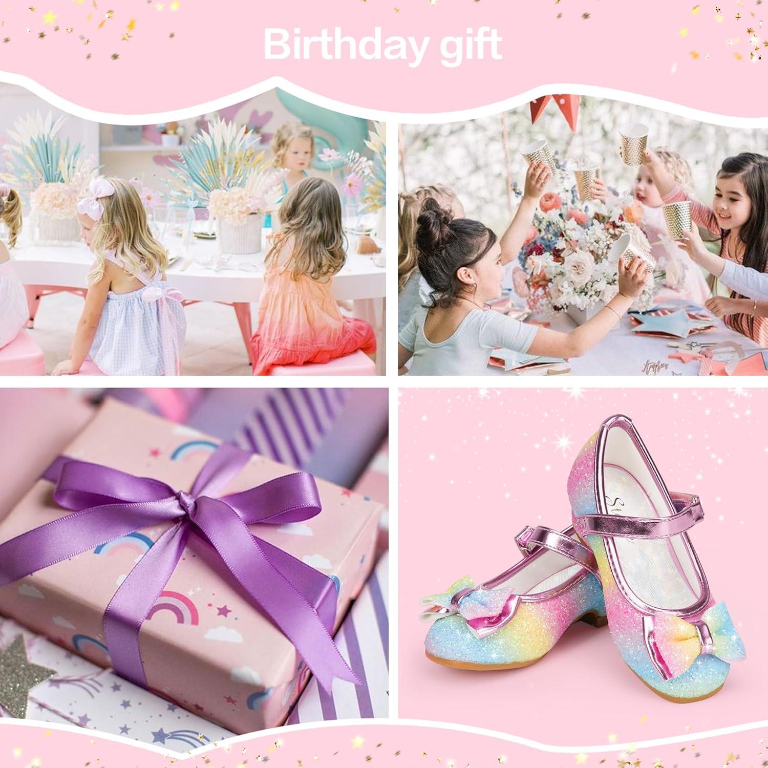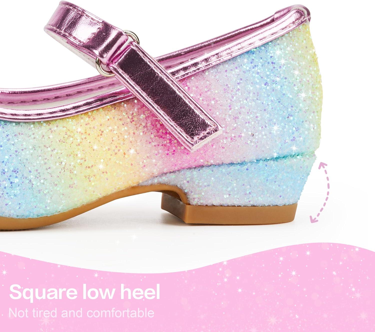 Stelle Girls Dress Shoes Glitter Princess Shoe Flower Mary Jane Low Heels Party Wedding Prom Footwear for Toddler Kids(T08-rainbow)