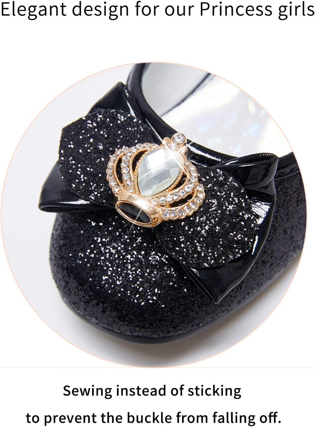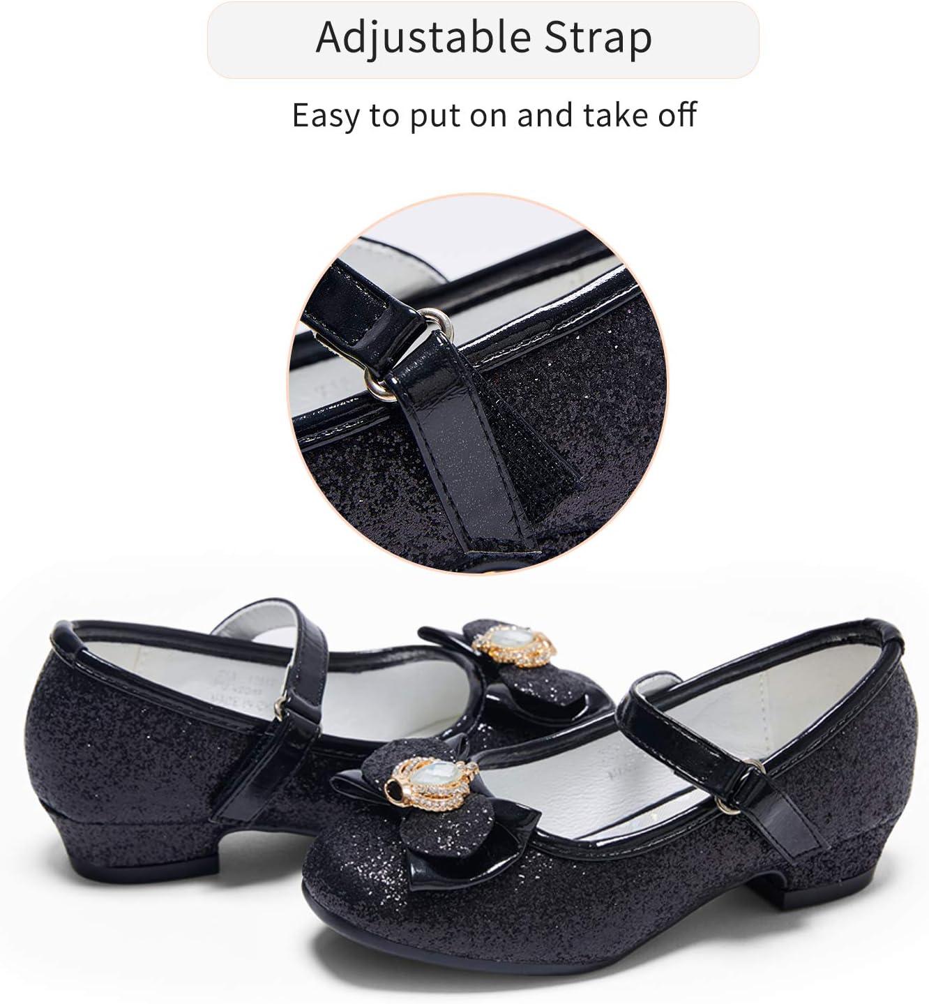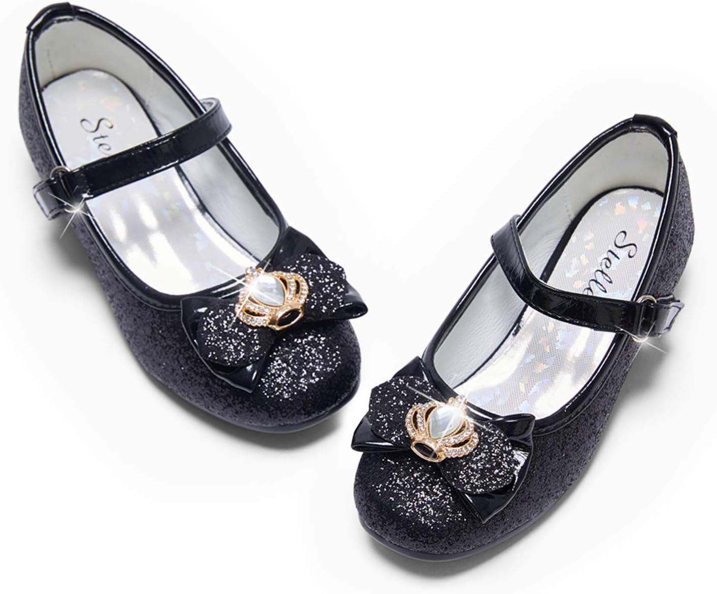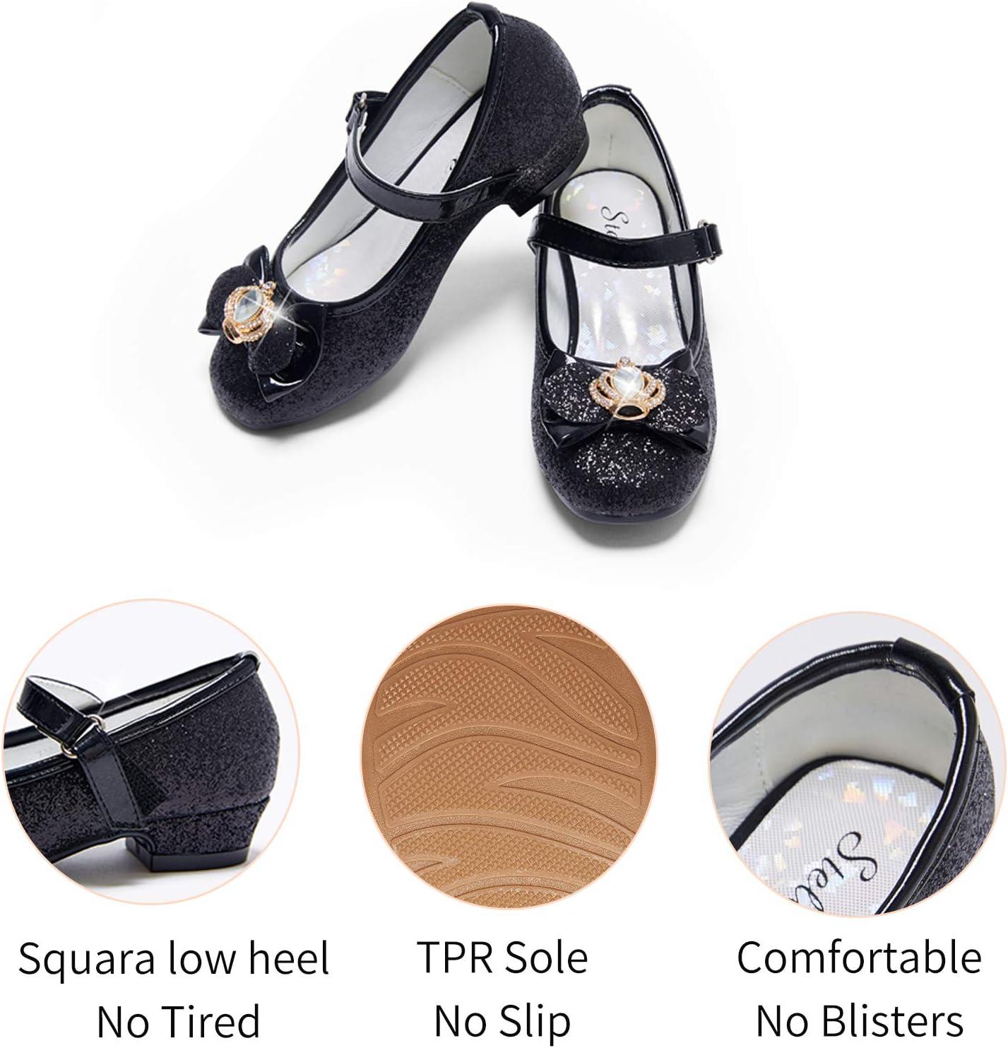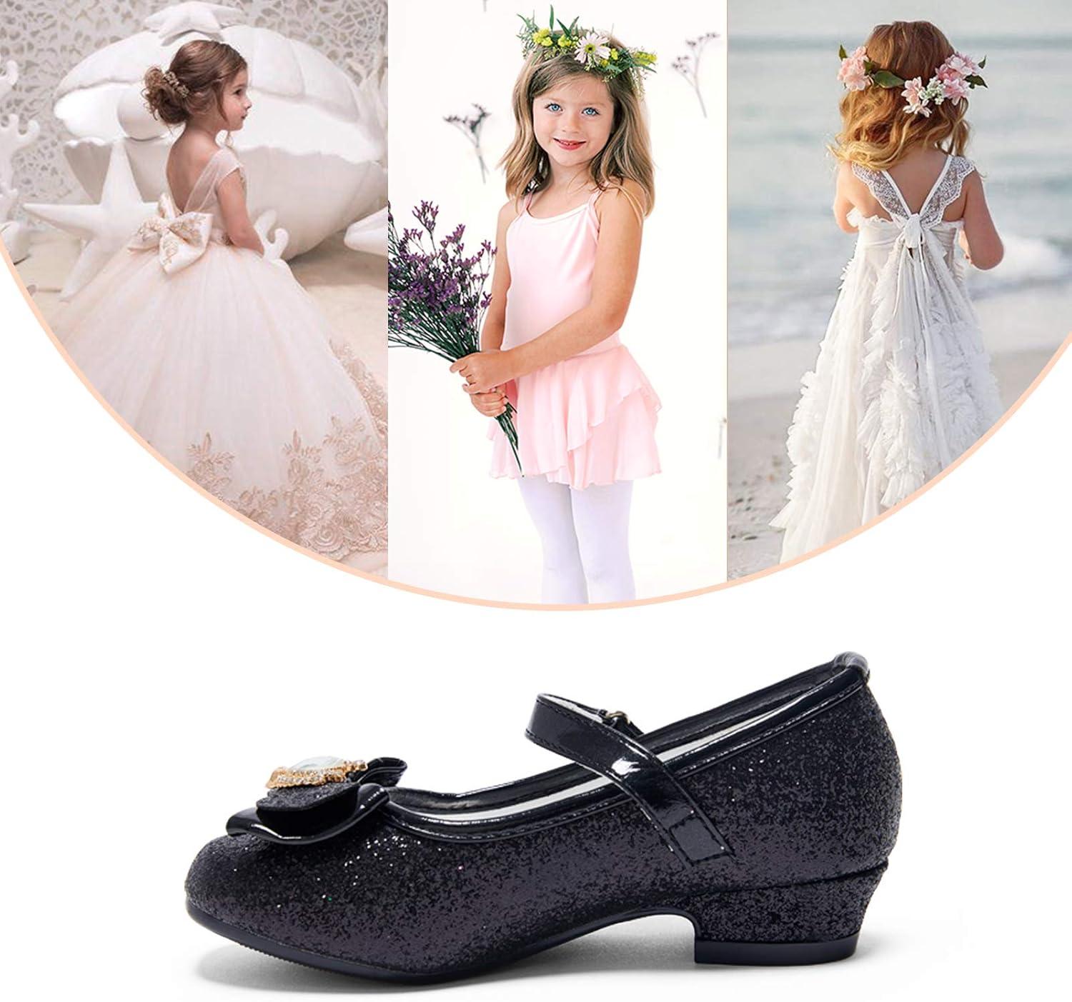 Stelle Girls Dress Shoes Glitter Princess Shoe Flower Mary Jane Low Heels Party Wedding Prom Footwear for Toddler Kids(T13-black Glitter)