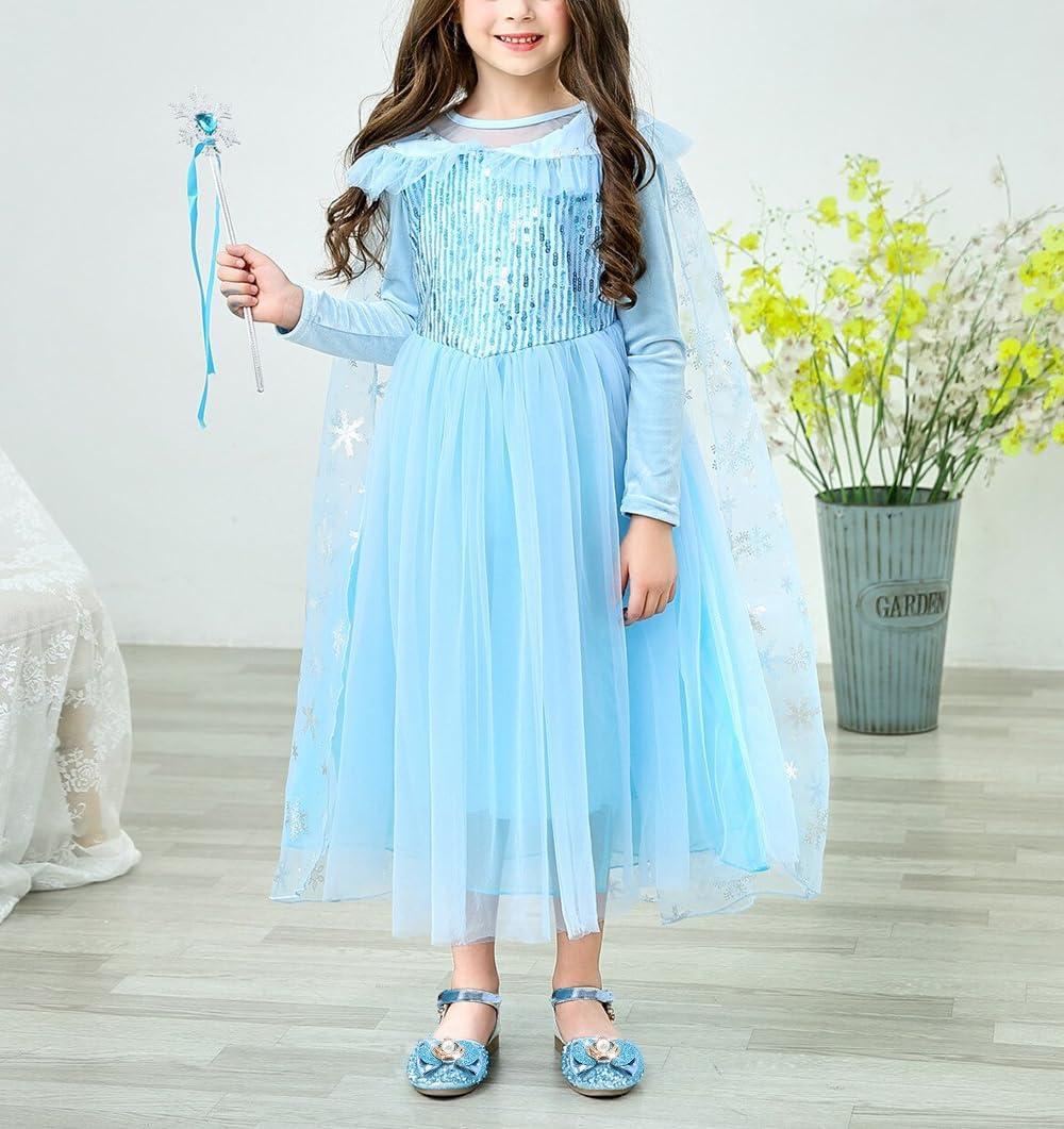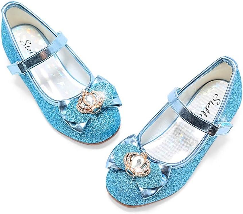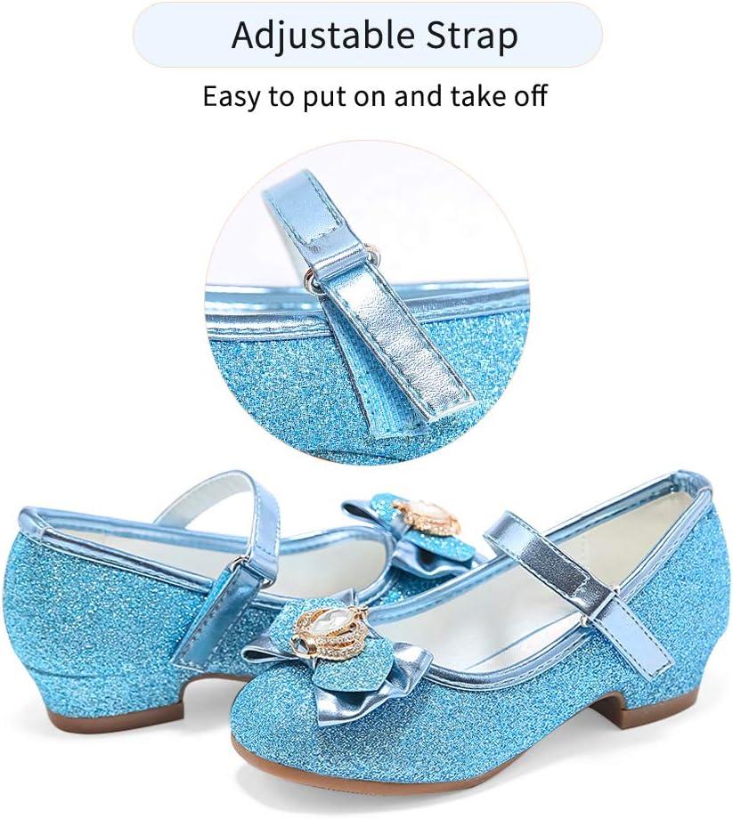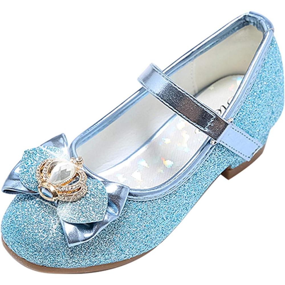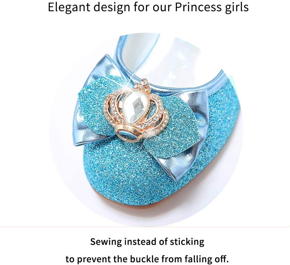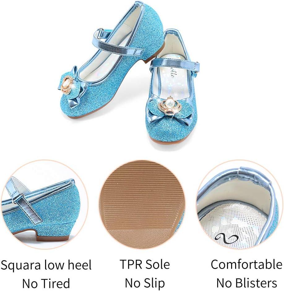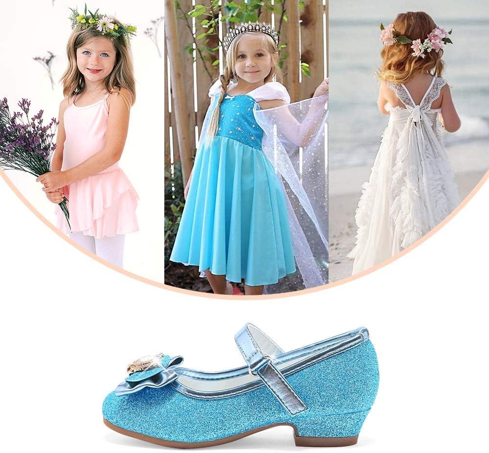 Stelle Girls Dress Shoes Glitter Princess Shoe Flower Mary Jane Low Heels Party Wedding Prom Footwear for Toddler Kids(T13-elsa Blue Glitter)