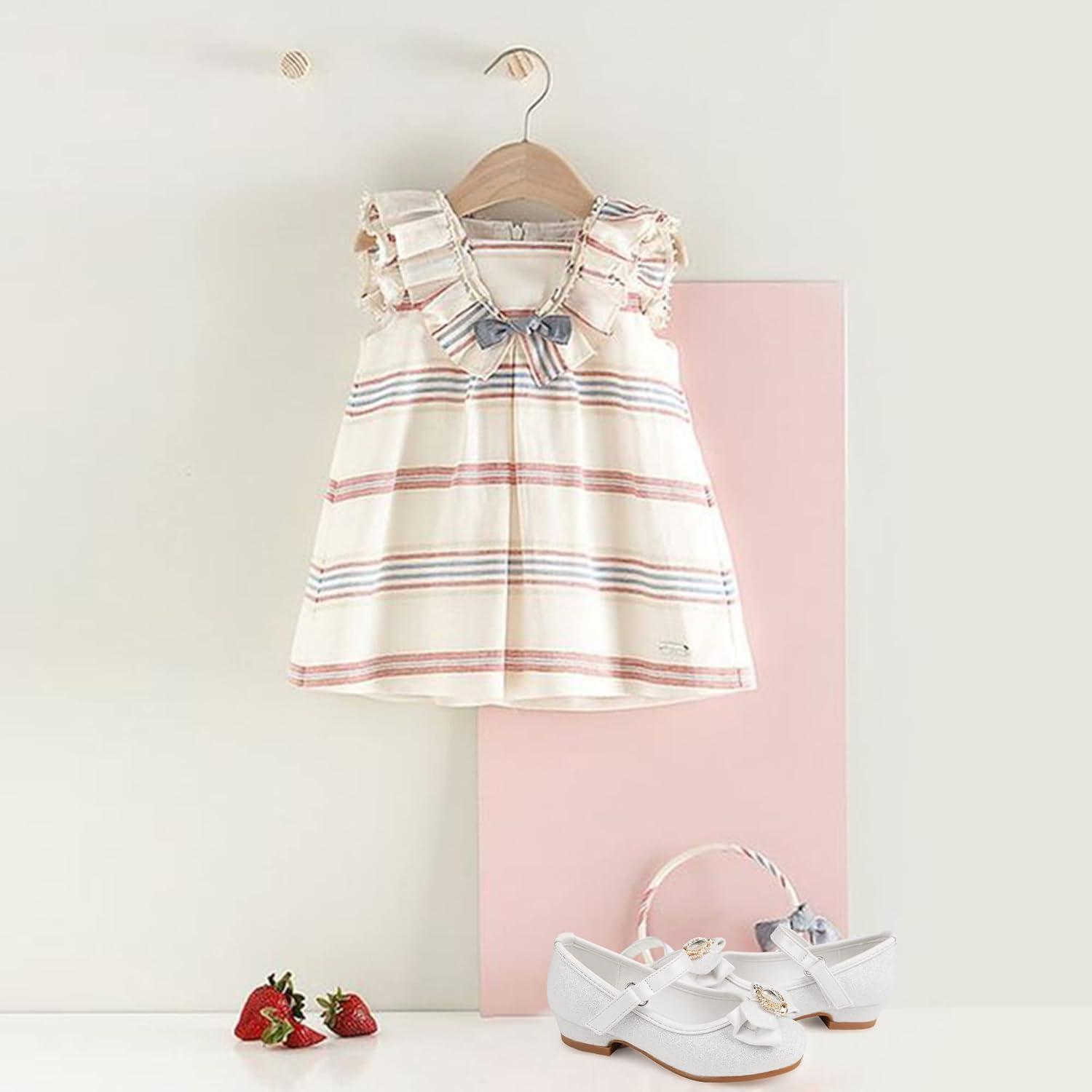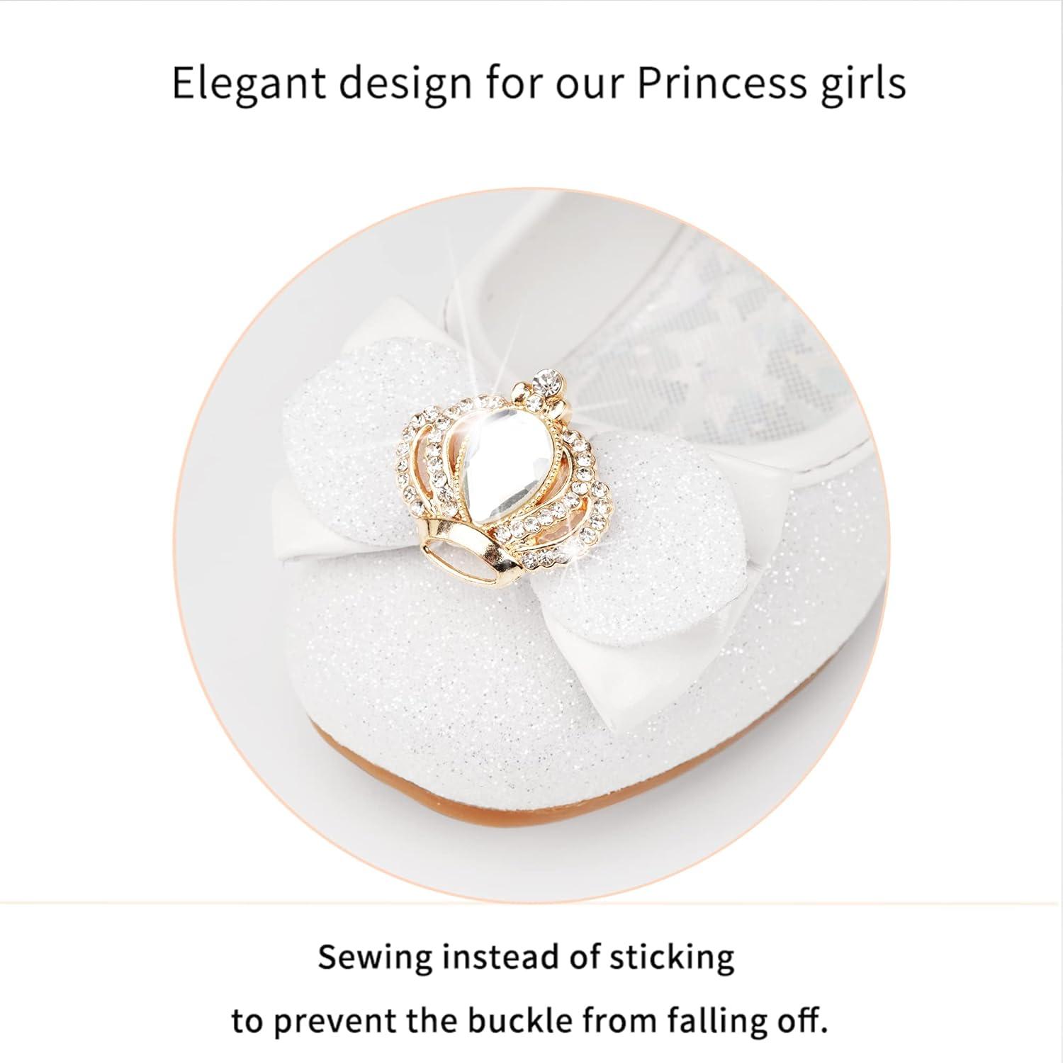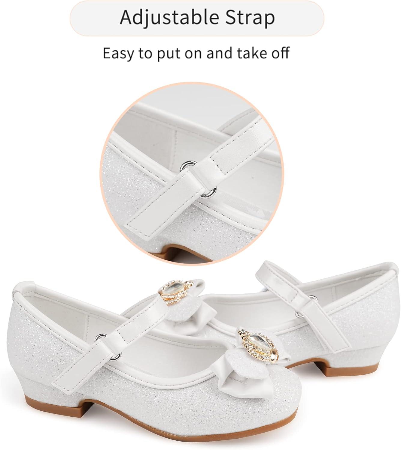 Stelle Girls Dress Shoes Glitter Princess Shoe Flower Mary Jane Low Heels Party Wedding Prom Footwear for Toddler Kids(T13-white Glitter)