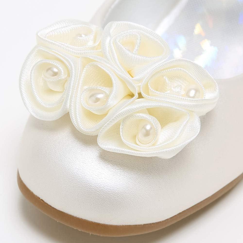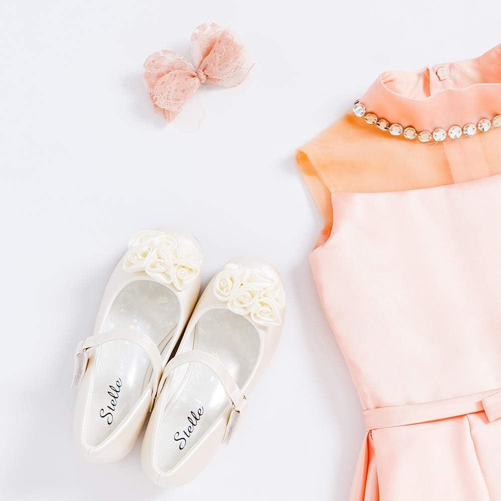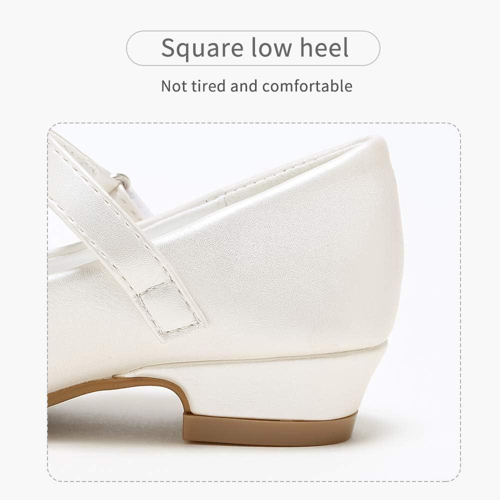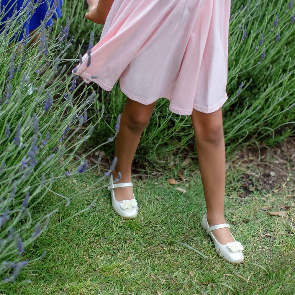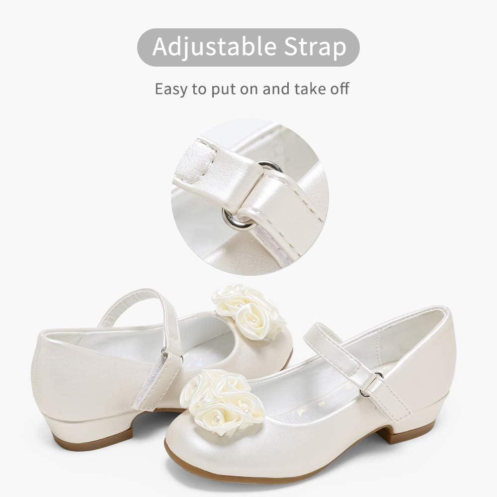 Stelle Girls Dress Shoes White Flower Girl Shoe Mary Jane Low Heels for Wedding (Toddler/Little/Big Kid)(Champagne (Flower))