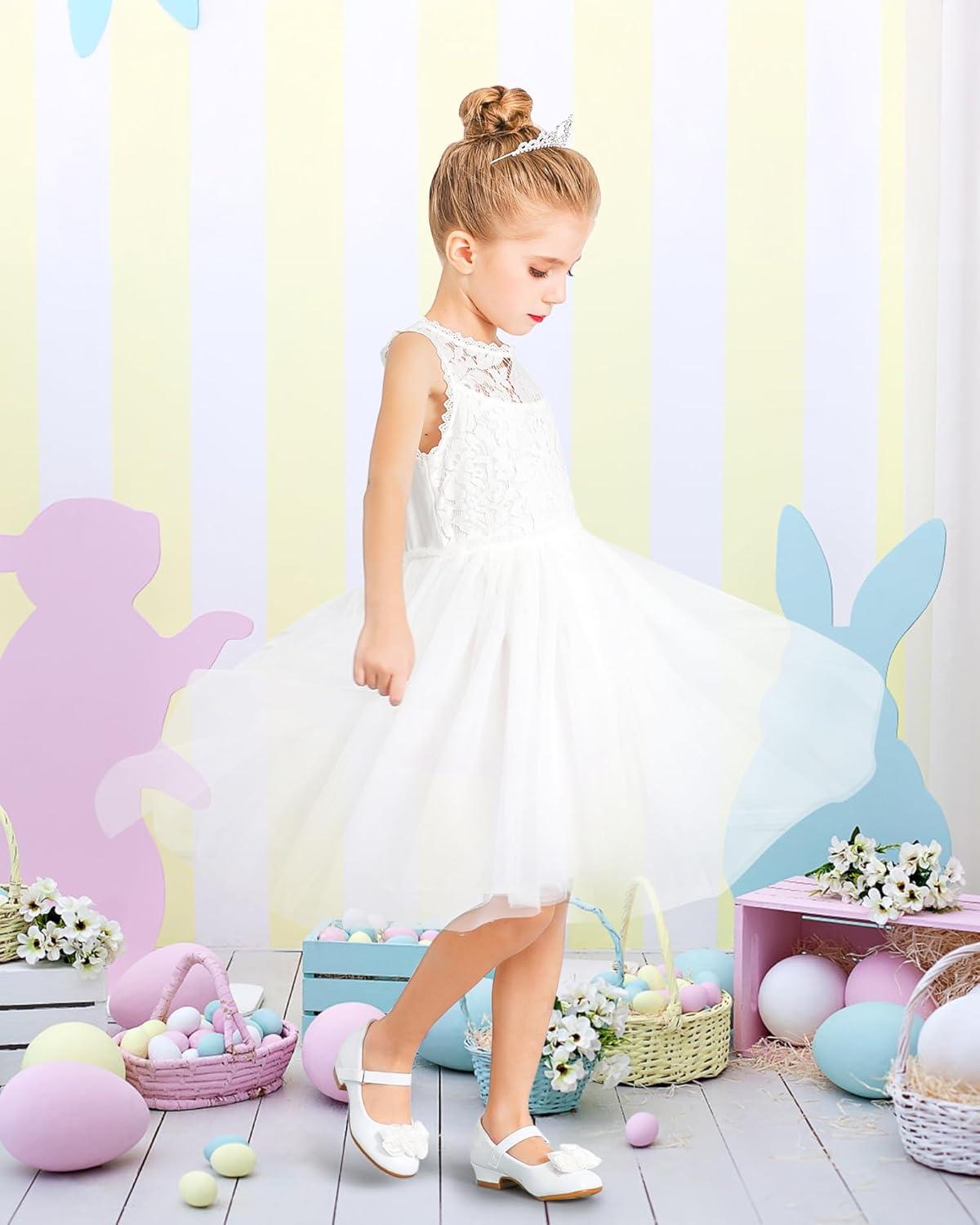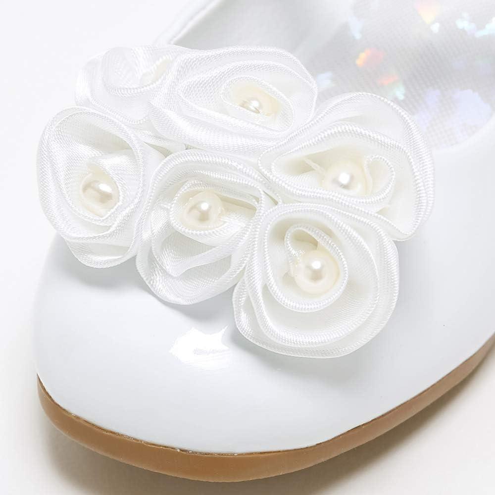 Stelle Girls Dress Shoes White Flower Girl Shoe Mary Jane Low Heels for Wedding (Toddler/Little/Big Kid)(White(flower))