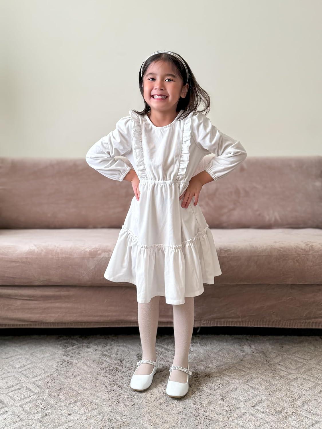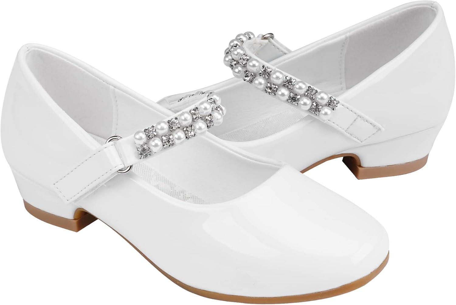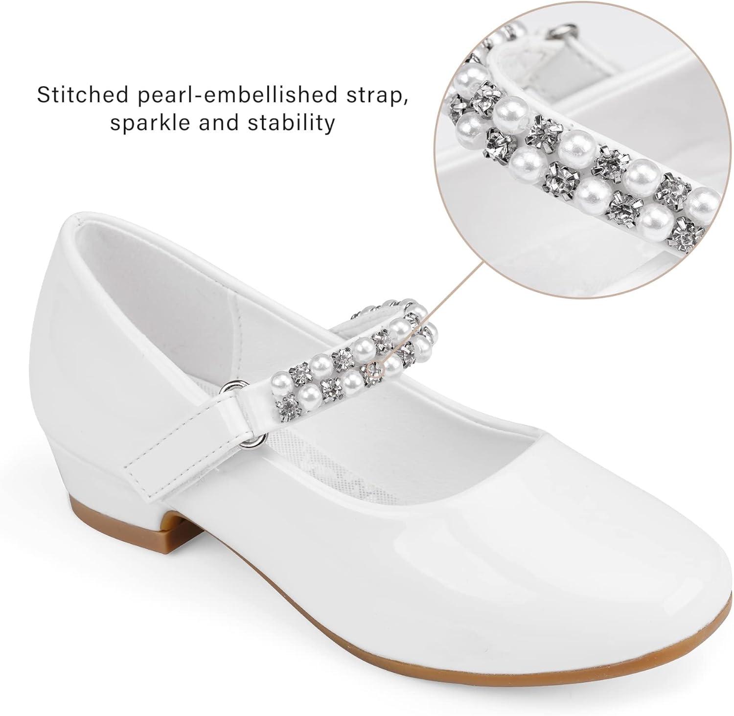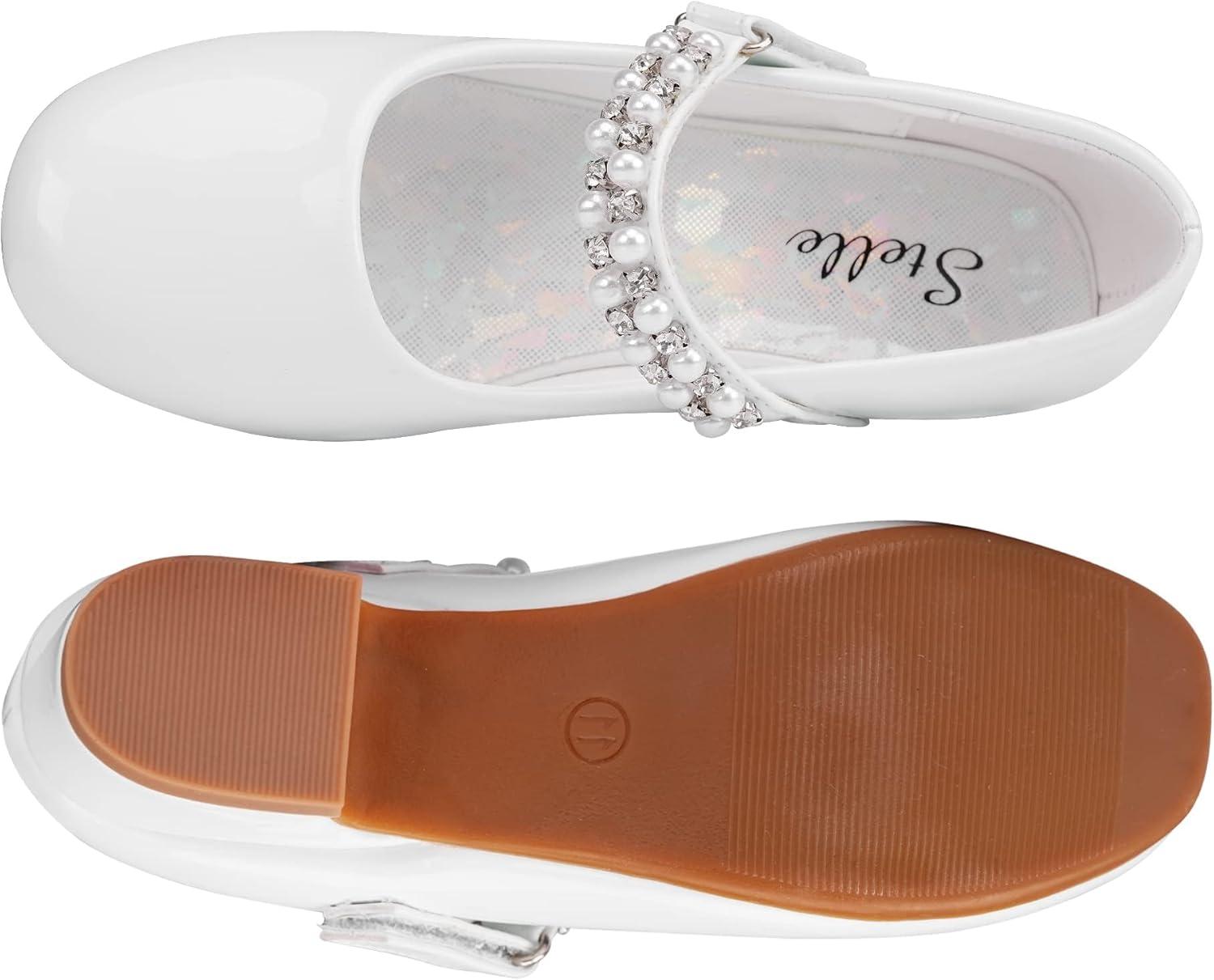 Stelle Girls Dress Shoes White Flower Girl Shoe Mary Jane Low Heels for Wedding (Toddler/Little/Big Kid)(White(shiny Strap))